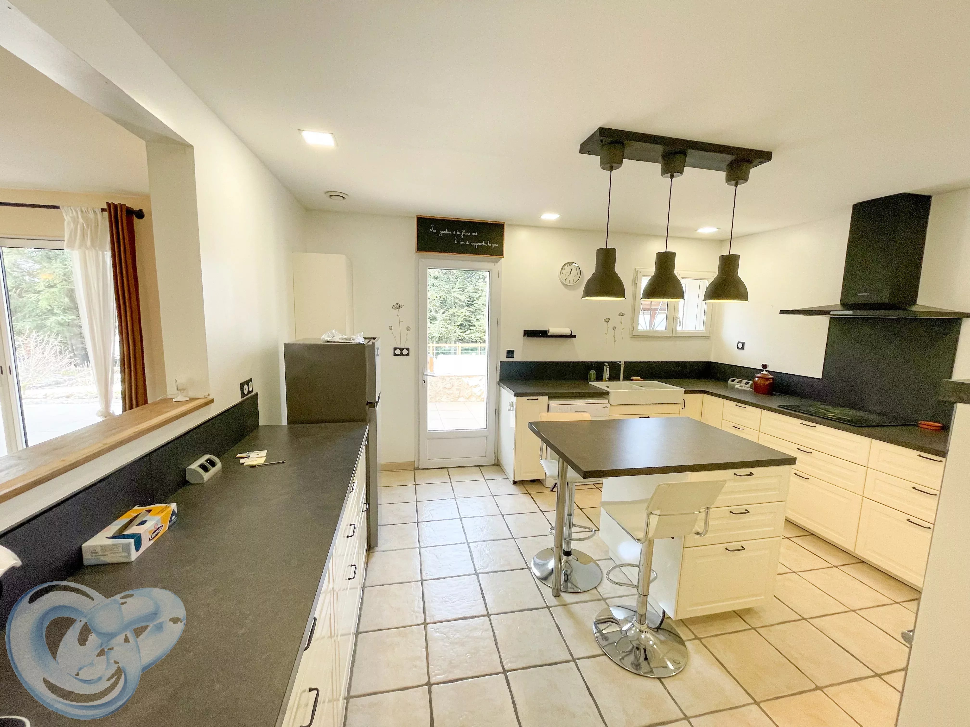 La maison s’ouvre sur une magnifique pièce de vie spacieuse et baignée de lumière comprenant salon / salle à manger. La cuisine ouverte, entièrement équipée et aménagée, s’intègre parfaitement à cet espace convivial, idéal pour recevoir famille et amis.