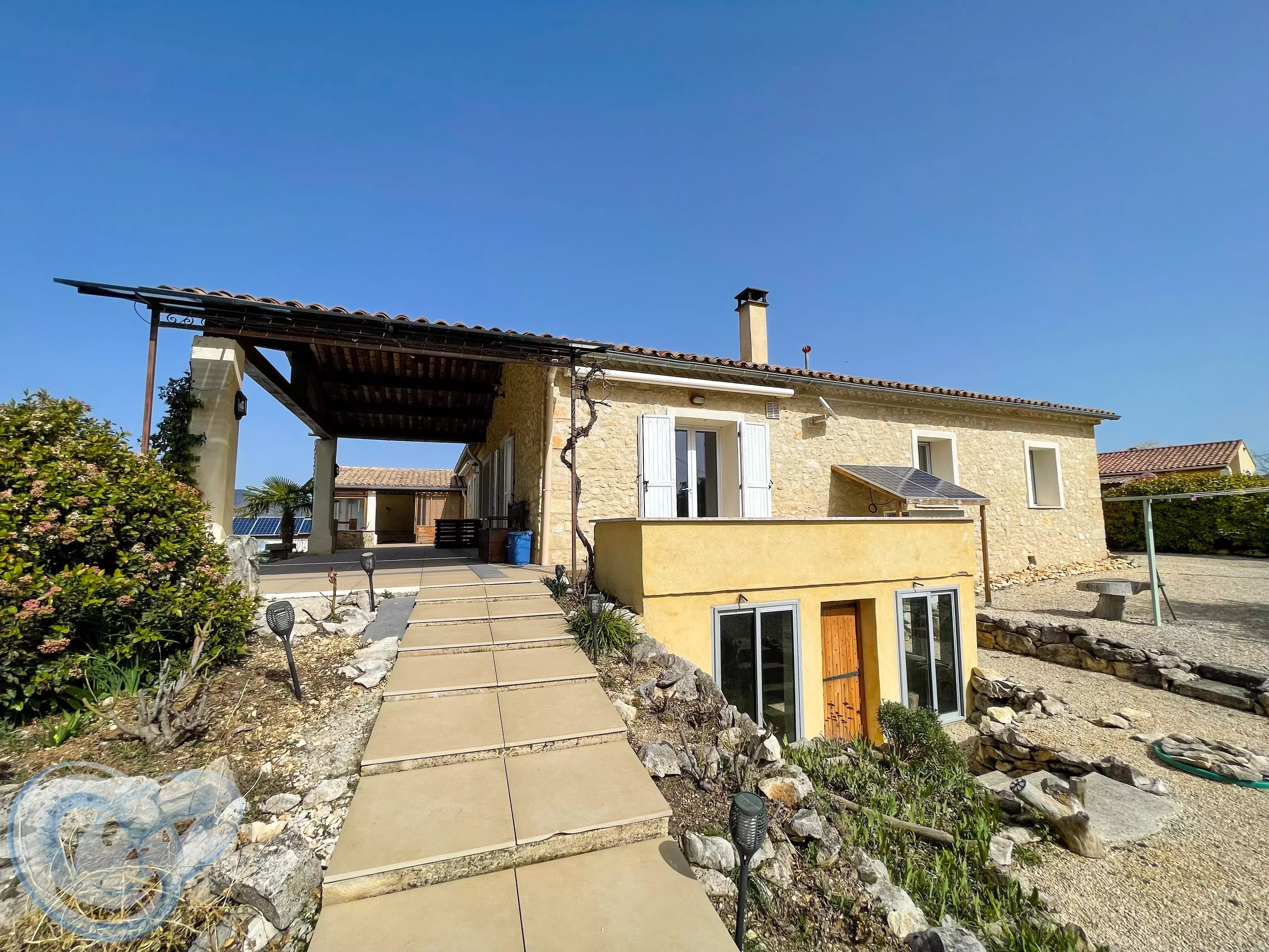Dans un environnement calme et privilégié, tout en restant à proximité immédiate du centre du village, des commerces, des écoles et de toutes commodités, découvrez cette superbe maison de plain-pied construite en 2008 offrant environ 170 m² de surface habitable et presque autant en surface utile au sous-sol. Environ 100 M² terrasse, deux couvertes et deux non couvertes dont une cuisine d'été fermée, piscine de 8X4, 17 panneaux photovoltaïque, terrain de boules.