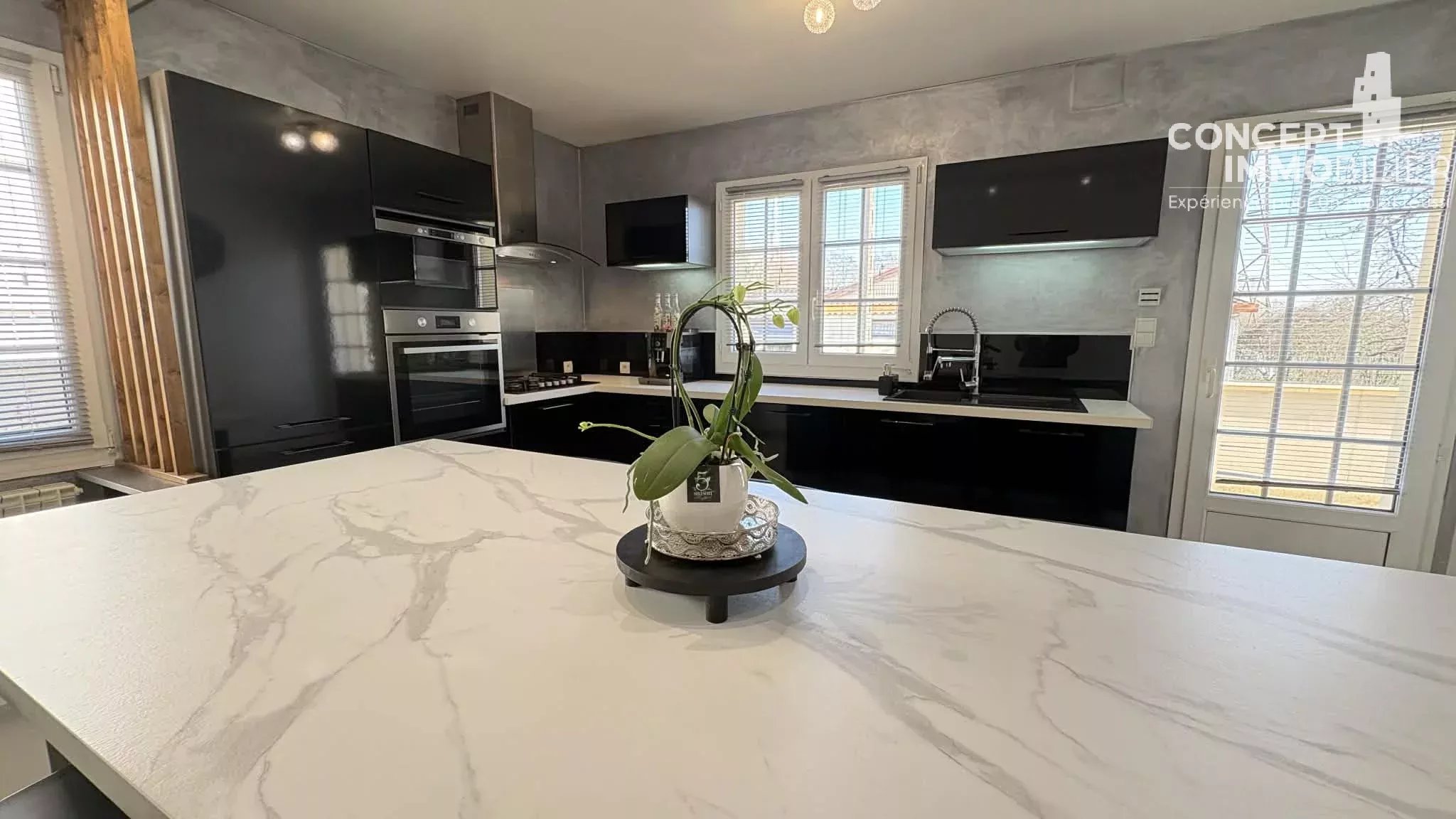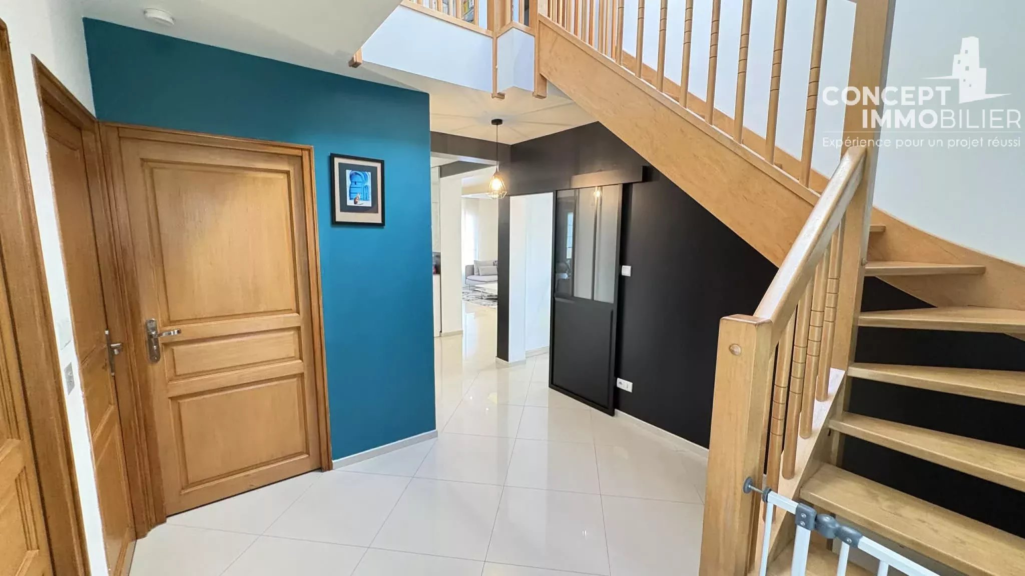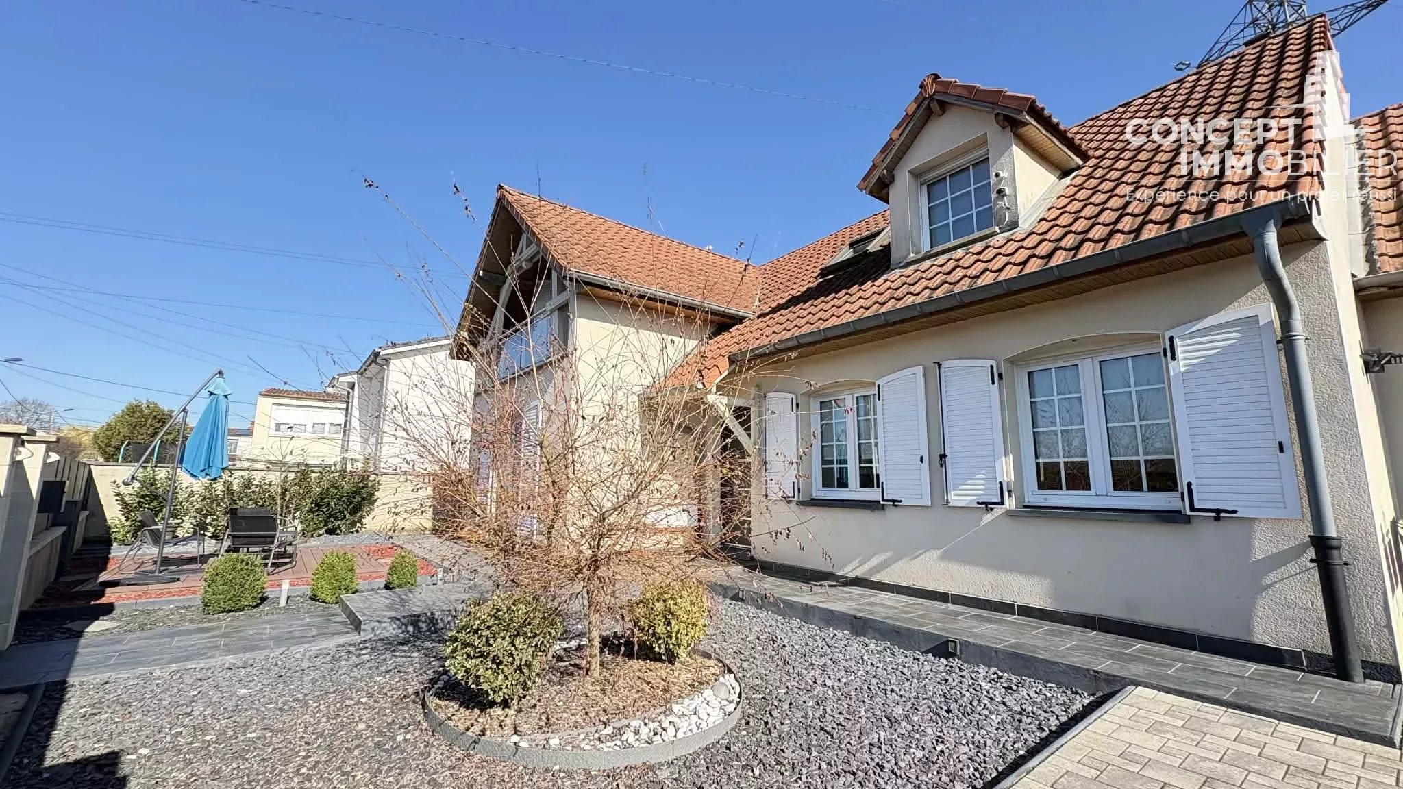 Concept immobilier Florange - Thionville vous propose à la vente : Maison individuelle rénovée de 156 m² à Uckange ! espace, lumière et confort moderne Bienvenue dans cette belle maison individuelle de 156 m², rénovée en 2011, pensée pour une vie de famille fluide, confortable et moderne. Aucun travaux à prévoir : vous n’avez plus qu’à poser vos valises La pièce de vie salon-séjour, généreuse et ultra lumineuse, offre une atmosphère chaleureuse, idéale pour les moments en famille ou les soirées détente. La cuisine fonctionnelle s’intègre harmonieusement à l’ensemble, prête à accueillir vos talents culinaires. Côté nuit, la maison propose 4 chambres confortables ainsi qu’un bureau, parfait pour le télétravail, les devoirs ou un espace polyvalent. La salle de bain, équipée d’une douche et d’une baignoire, répond pleinement aux besoins du quotidien. En complément : un garage, une pompe à chaleur pour un confort thermique optimal et des économies d’énergie, ainsi qu’une maison baignée de lumière tout au long de la journée Située à Uckange, la maison se trouve à proximité immédiate de l’autoroute (environ 100 m), un point à prendre en compte, compensé par les nombreux atouts de cette maison spacieuse, rénovée et clé en main. Une opportunité idéale pour une famille à la recherche d’espace, de confort et de fonctionnalité! Cette maison peut être vivable de plein pied ! DPE: B A visiter !