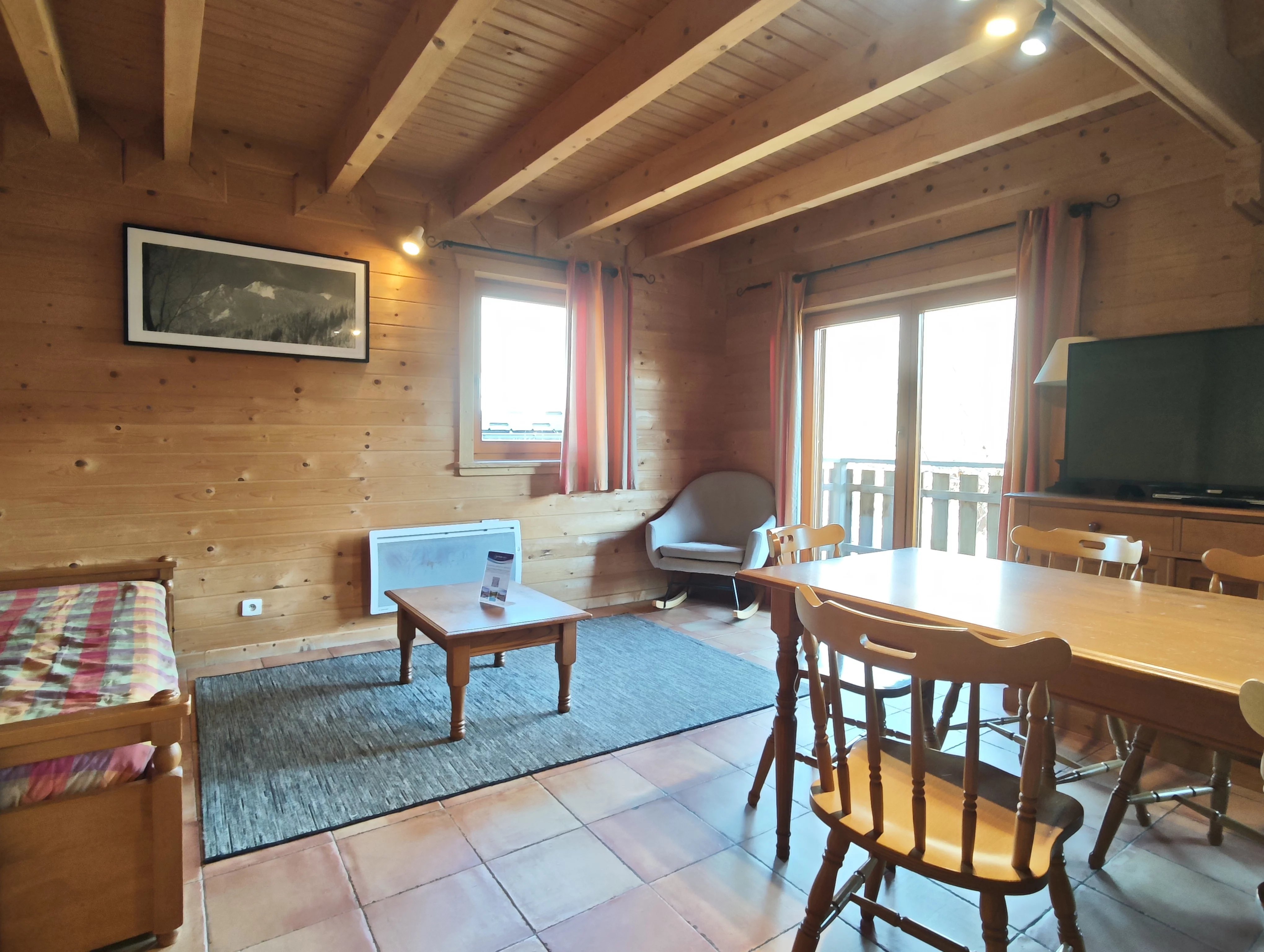 Charmant Chalet en madrier de 75m2 sur deux niveaux ainsi qu’un garage spacieux. Il dispose au premier niveau d'une large entrée avec rangement, un séjour de 24m2 avec cuisine équipée, un balcon et sa vue dégagée sur les montagnes, salle de douche avec WC ainsi qu’une chambre double avec rangement. A l’étage, on retrouve 2 chambres avec balcon ainsi qu'une salle de bain avec WC séparés. Ce joli chalet se situe au calme, entre le bruit de la Bézière qui coule et les jardins arborés, à quelques minutes du centre de Morillon dans une résidence de tourisme. Il fait partie d’une copropriété avec piscine et conciergerie et sera libre de tout contrat fin septembre 2026.