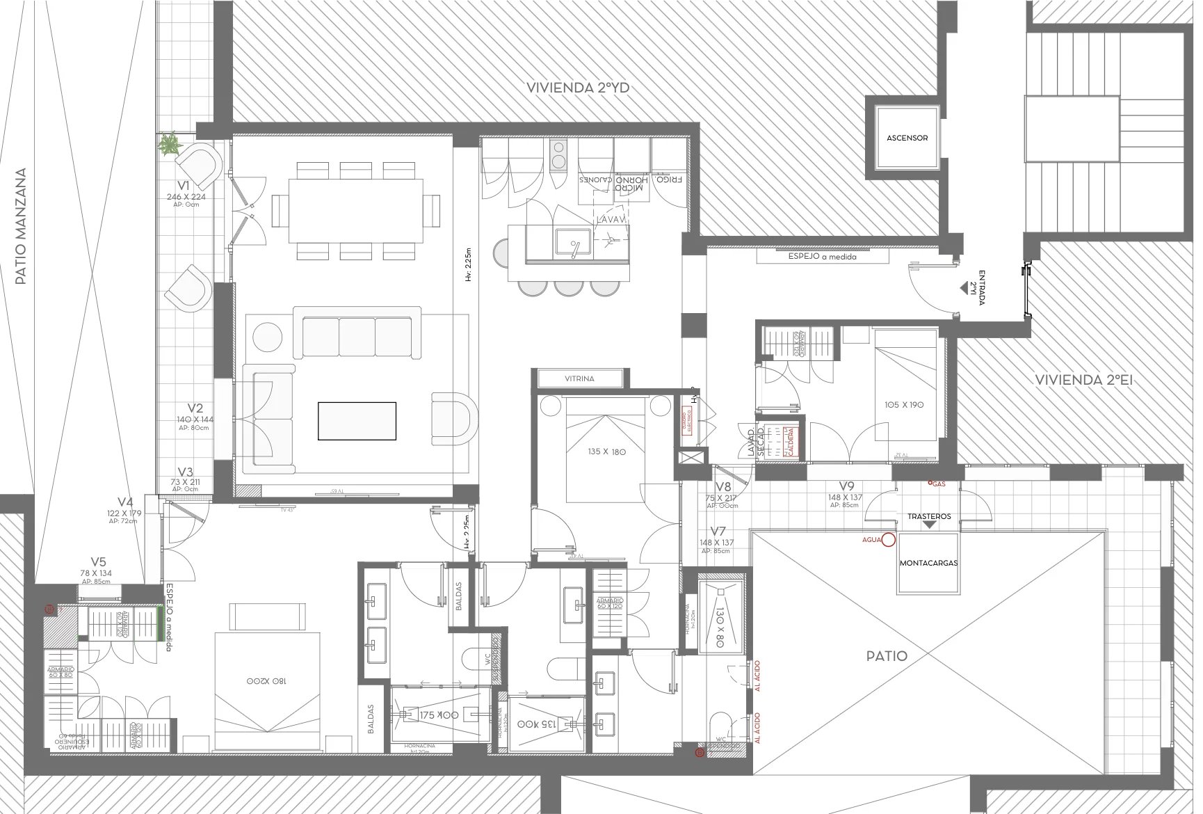 Veraltia presents this generous 160 m² (cadastral) interior apartment on the second floor of a 1960 building with lift and concierge service, located in the heart of Madrid’s Salamanca district, in the Lista area. Fully refurbished, it successfully combines contemporary design, privacy and a highly strategic location.