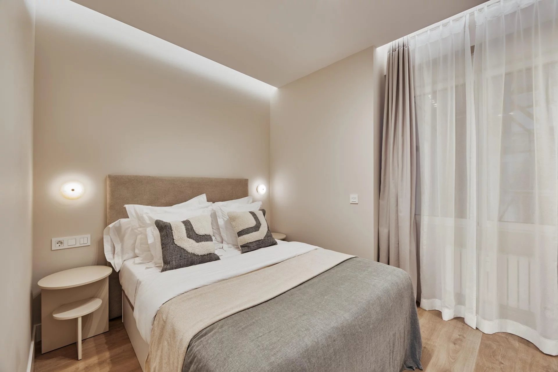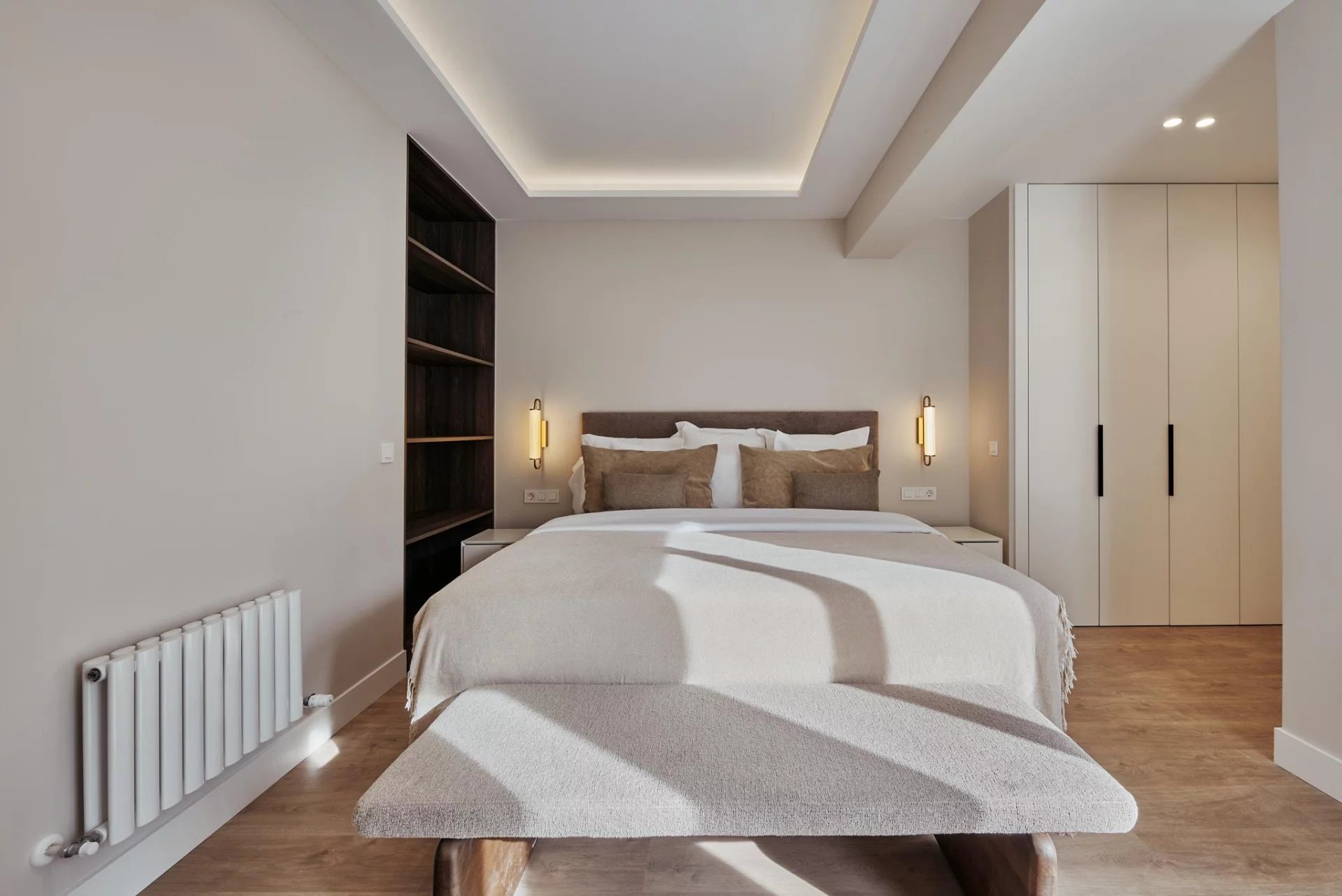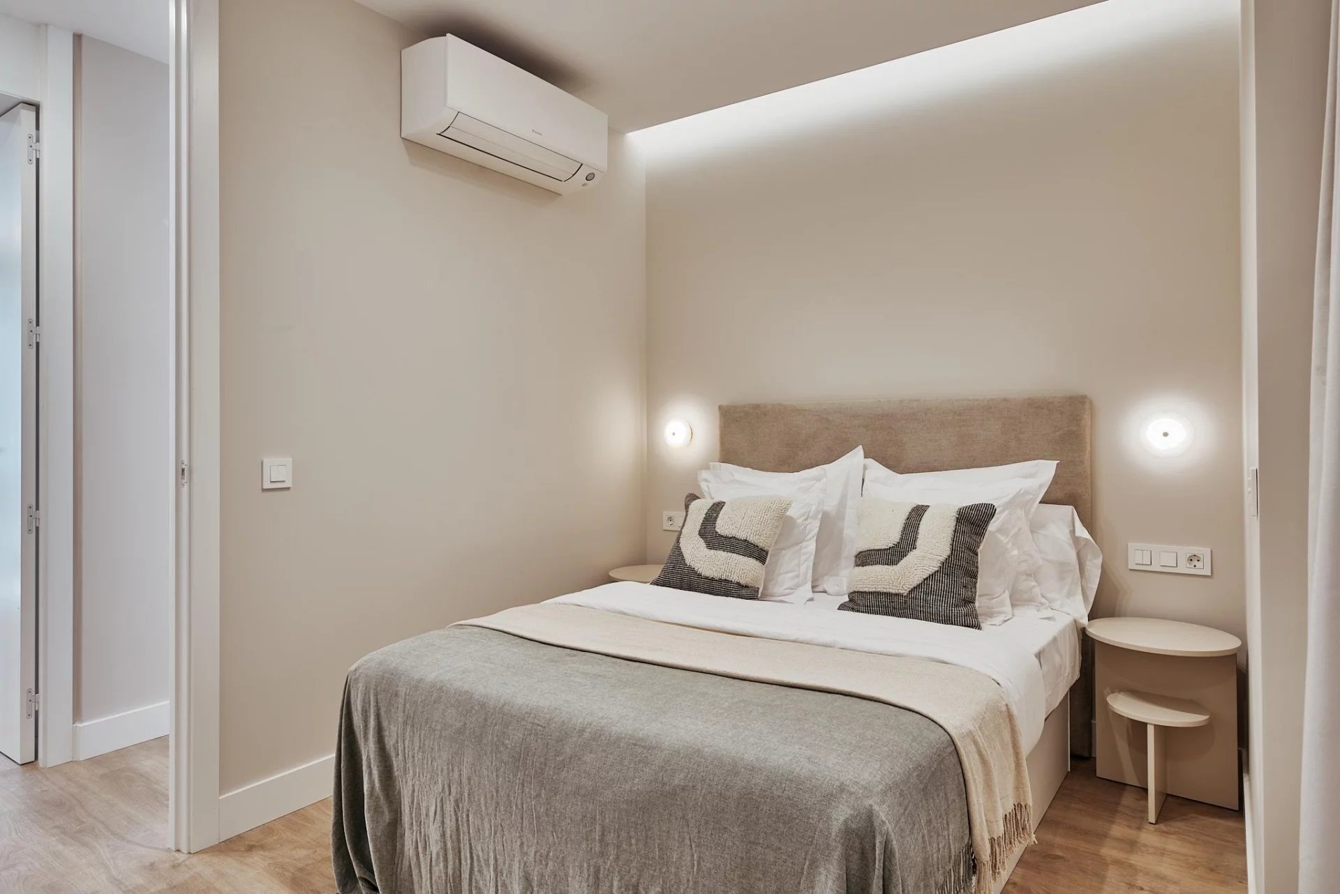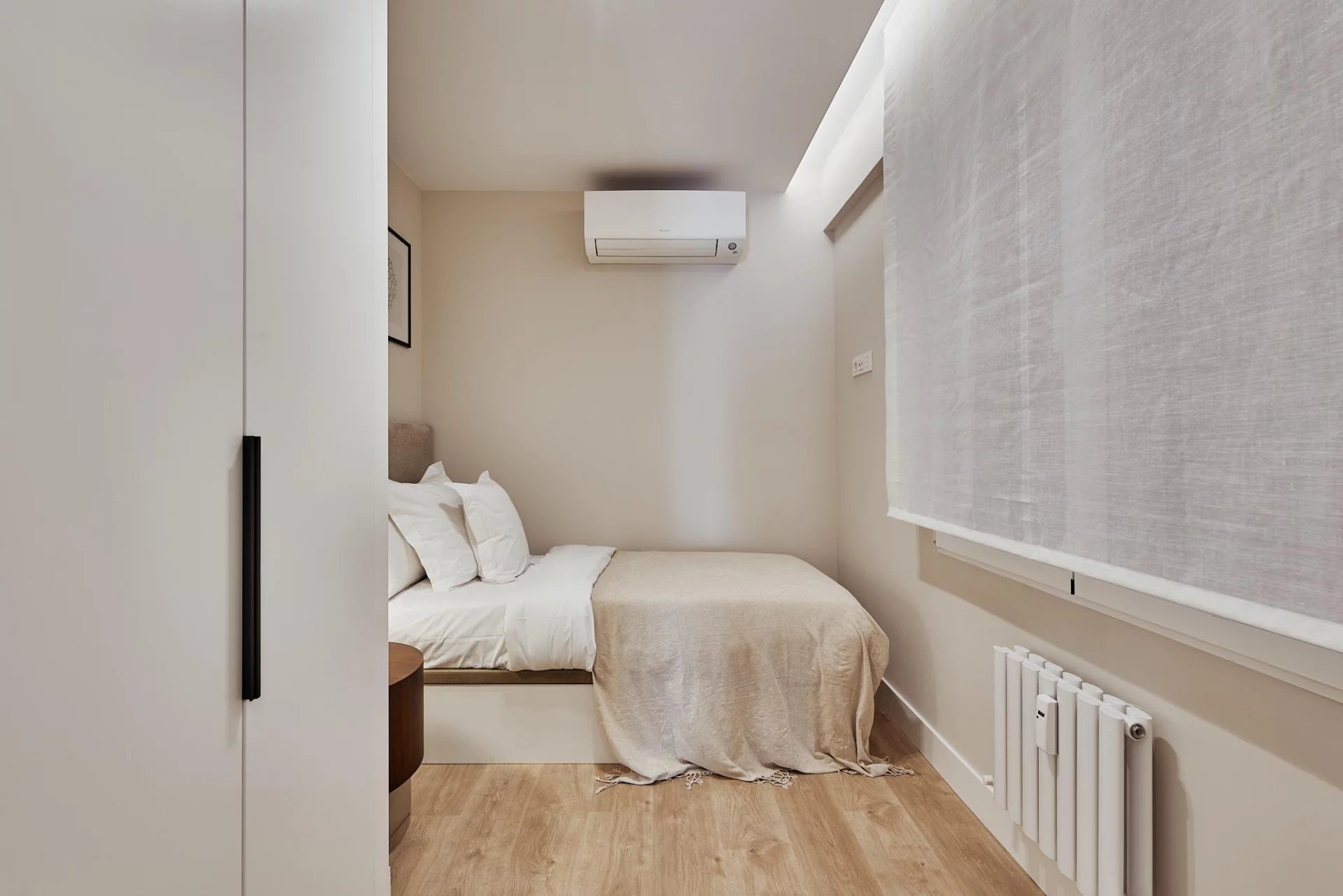 Facing a quiet inner courtyard, the home enjoys an unusually peaceful atmosphere for such a central address. It is delivered furnished and equipped with individual gas heating and split air‑conditioning, ready to move into. An ideal choice for those seeking space, calm and comfort in a consolidated prime area of the Salamanca district.