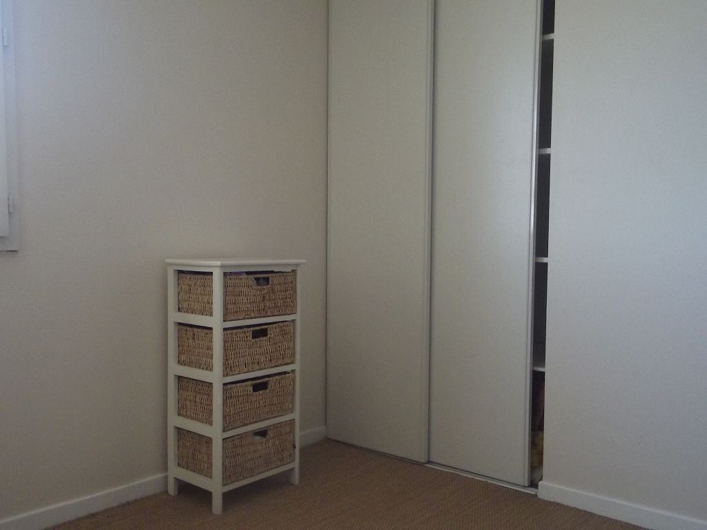 Une chambre avec placard penderie, une salle de bains avec meuble vasque, un Wc séparé,