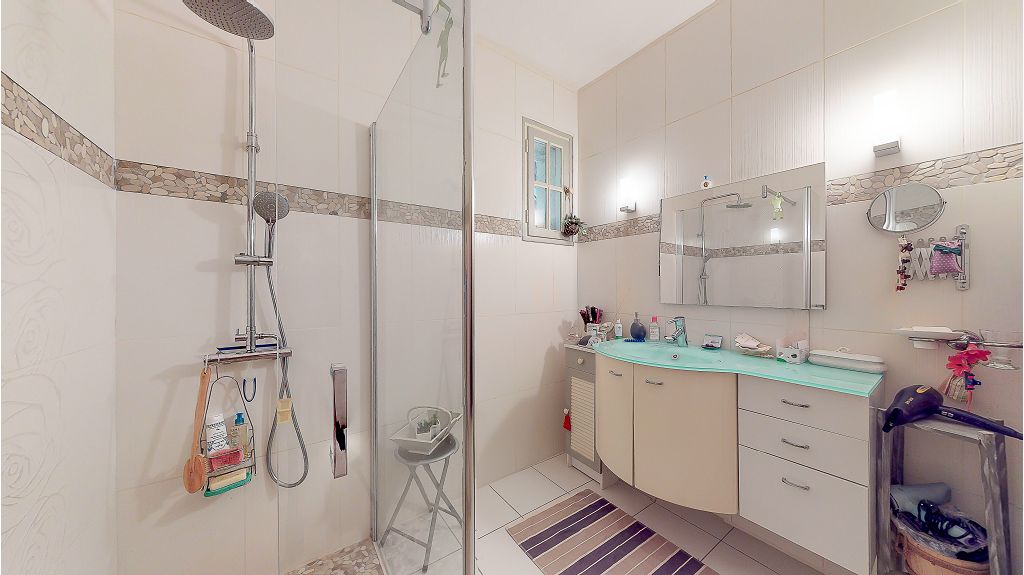 Un garage carrelé de 26 m² avec buanderie, véranda de 16 m²