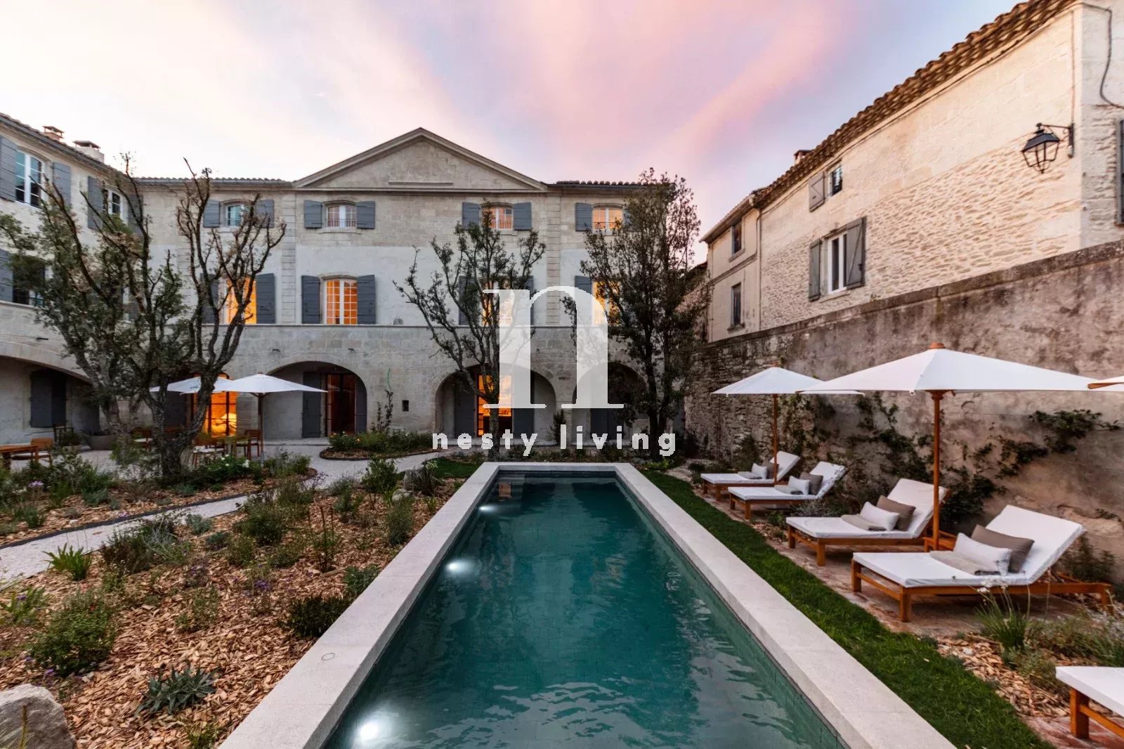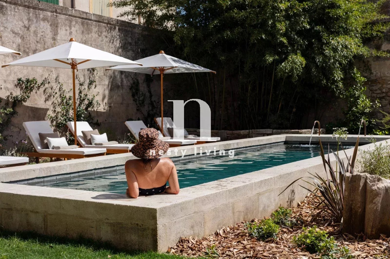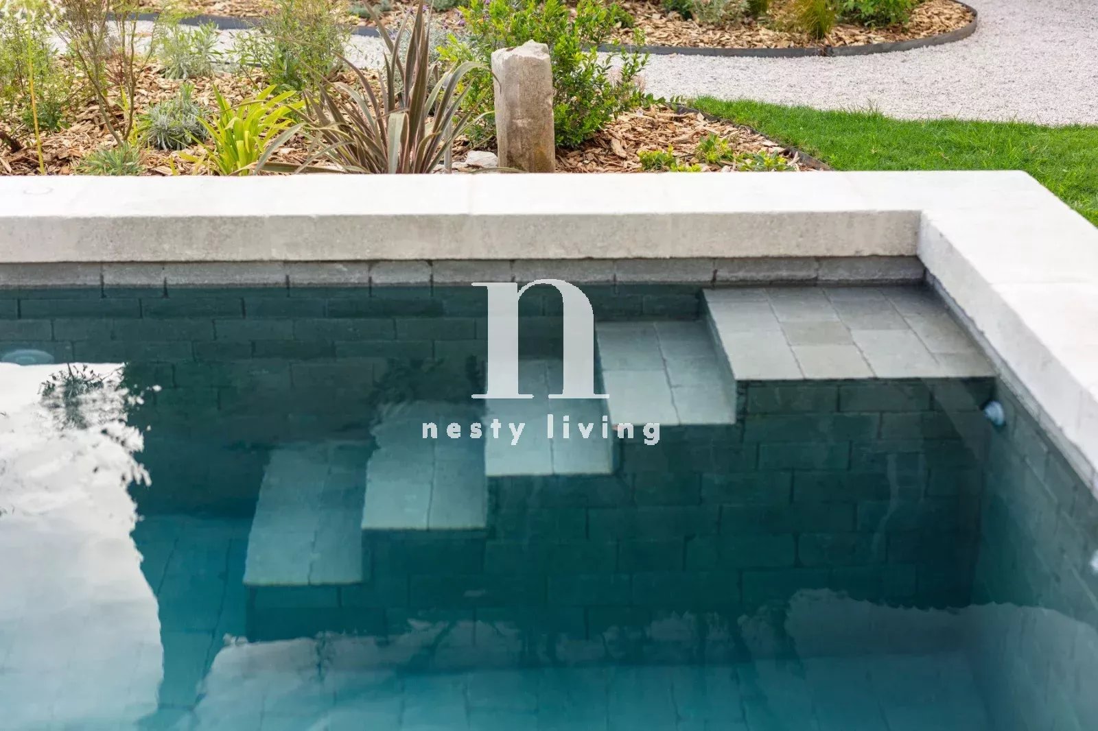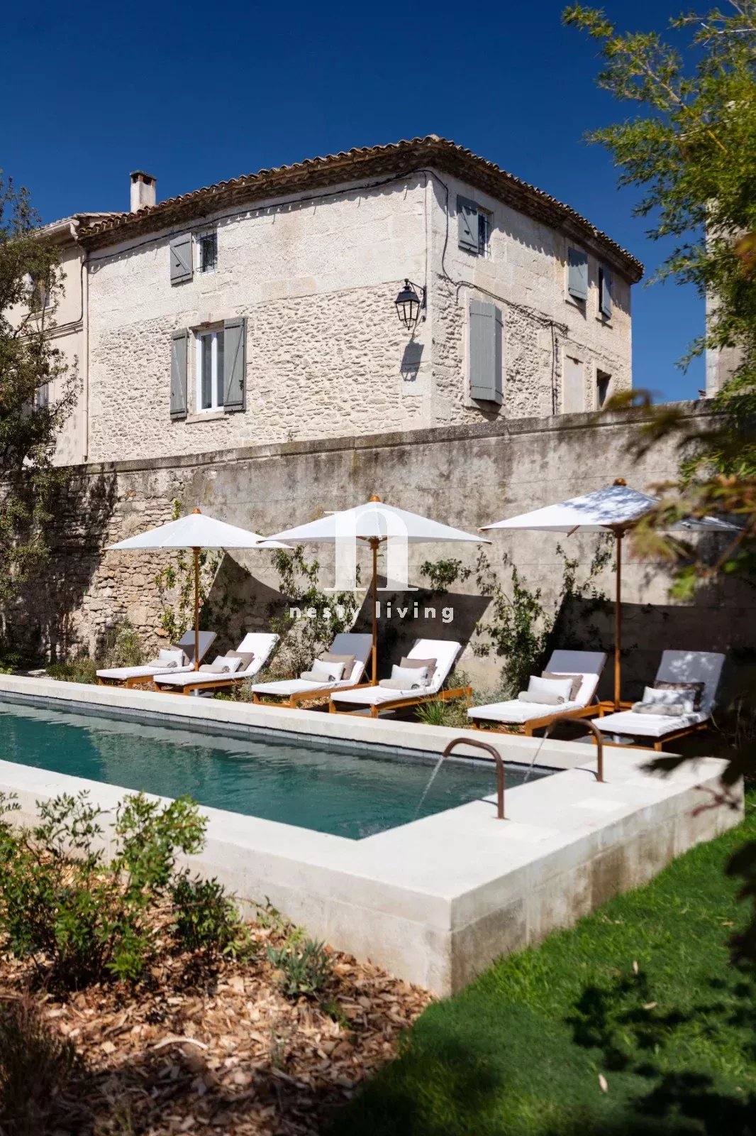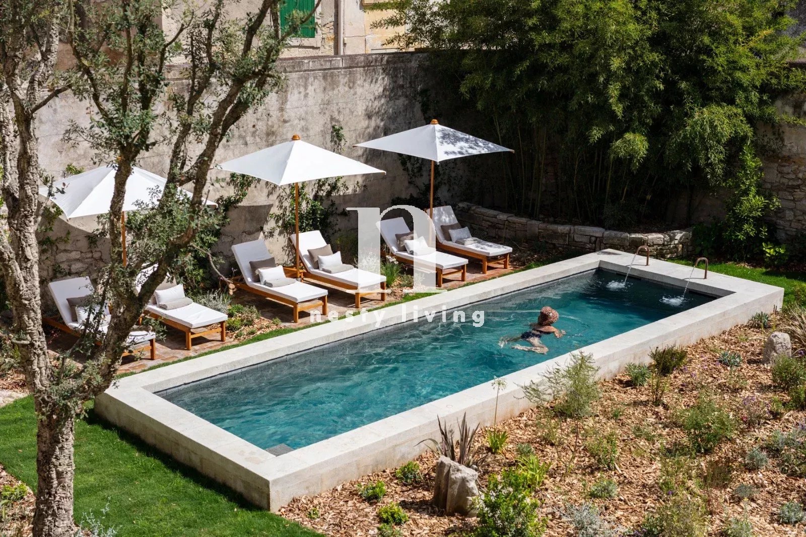 L’ensemble s’organise autour d’un magnifique jardin paysager aux essences méditerranéennes, agrémenté d’un bassin de nage de 12 mètres invitant à la détente dans un cadre enchanteur.