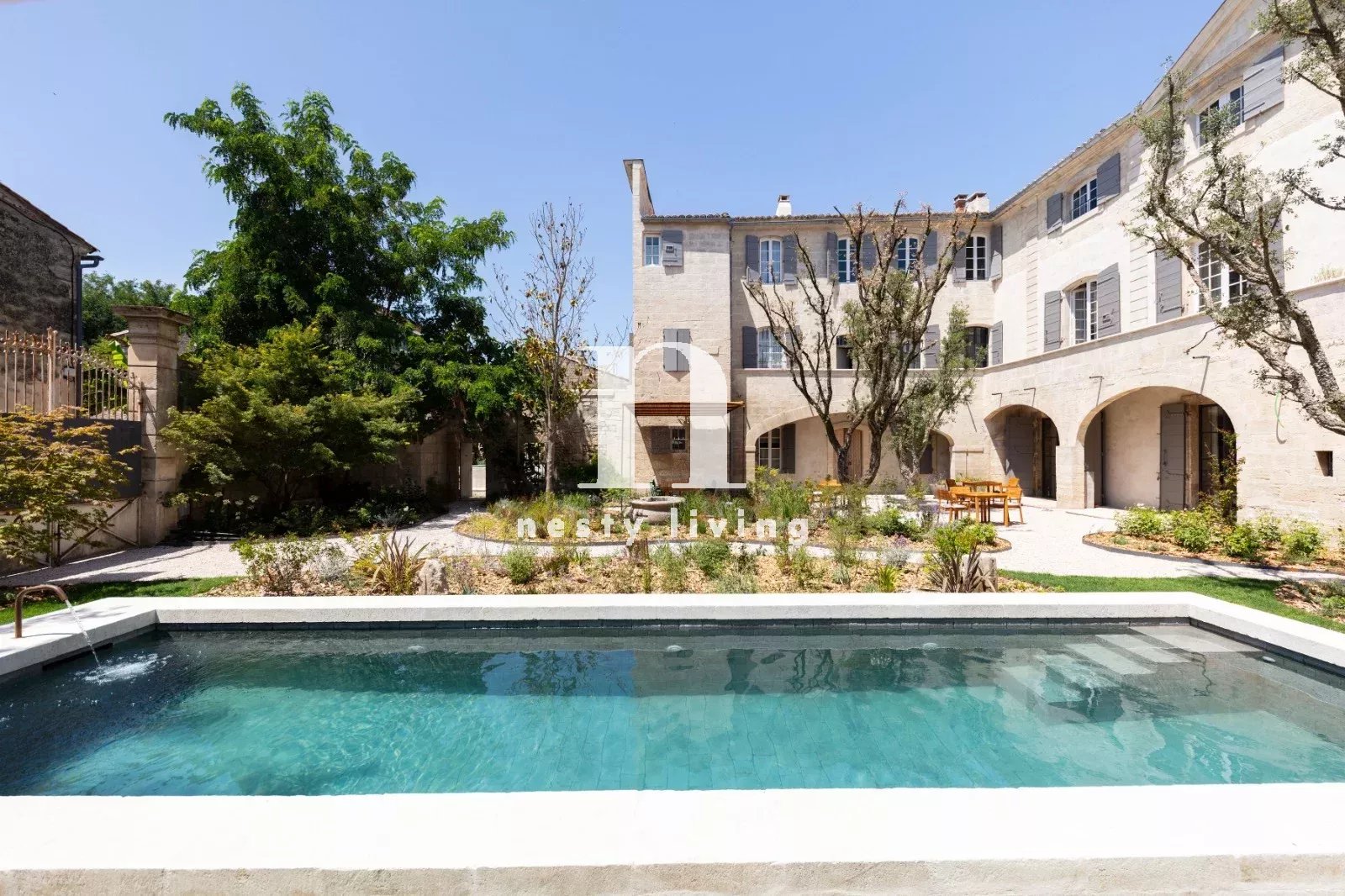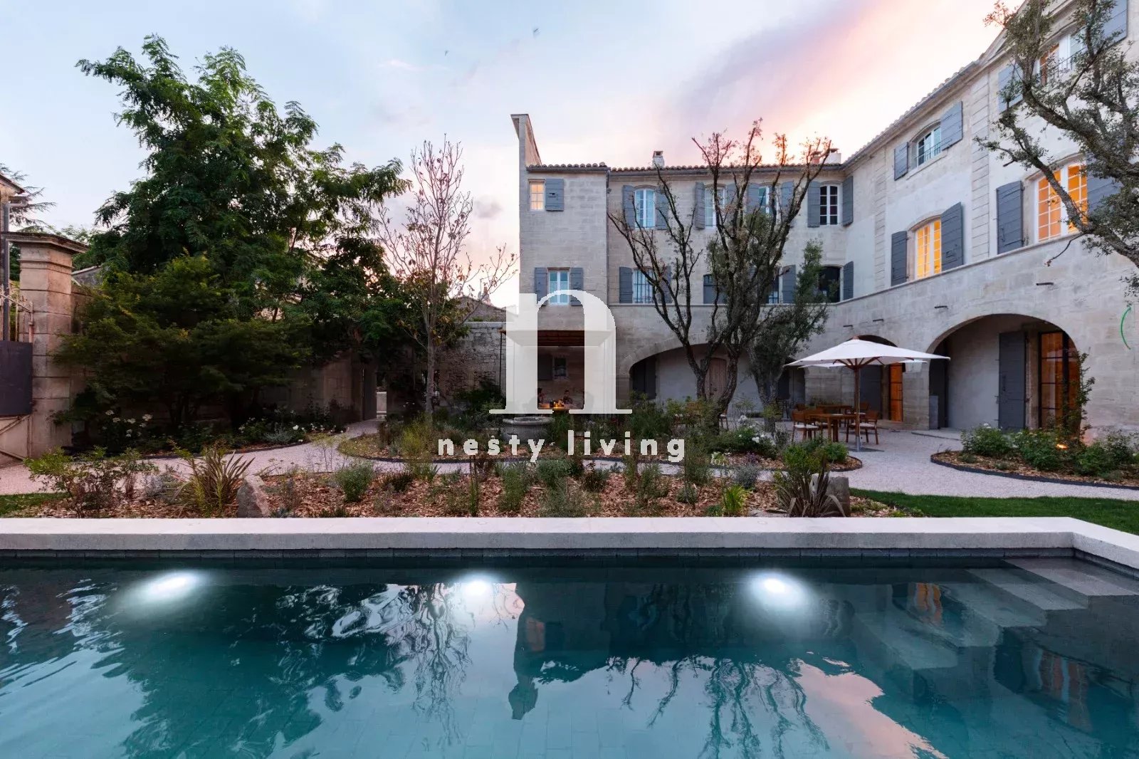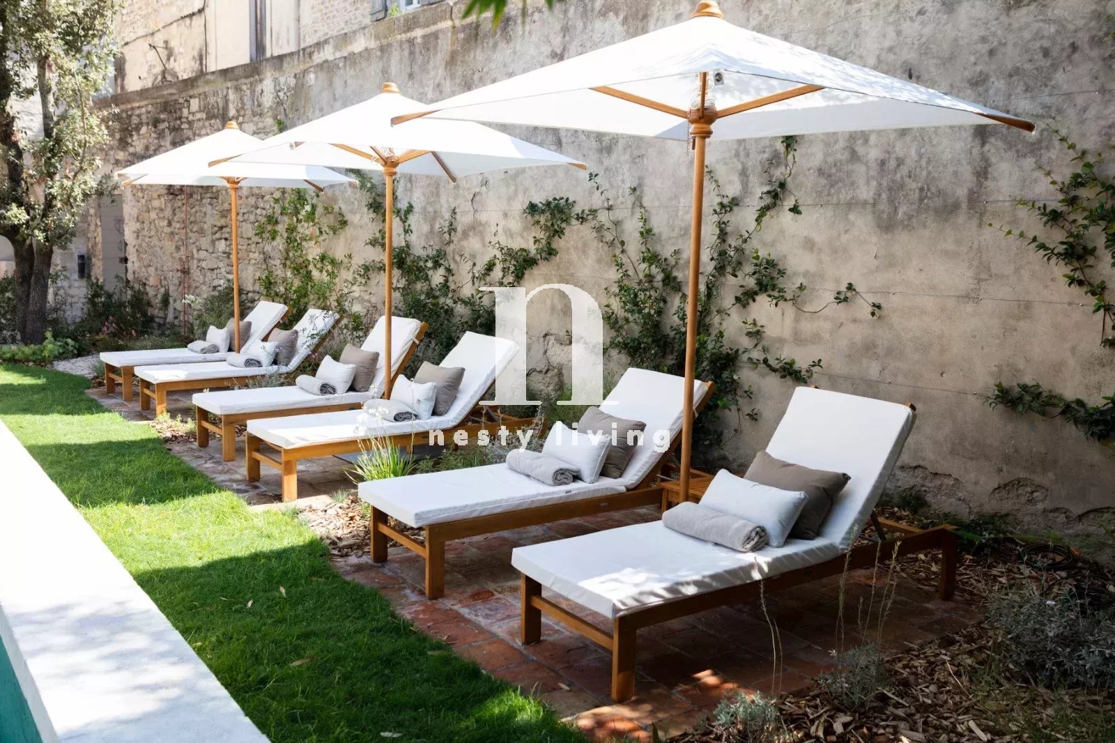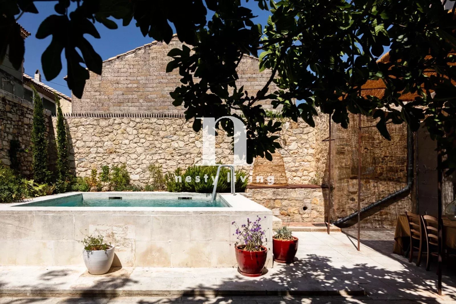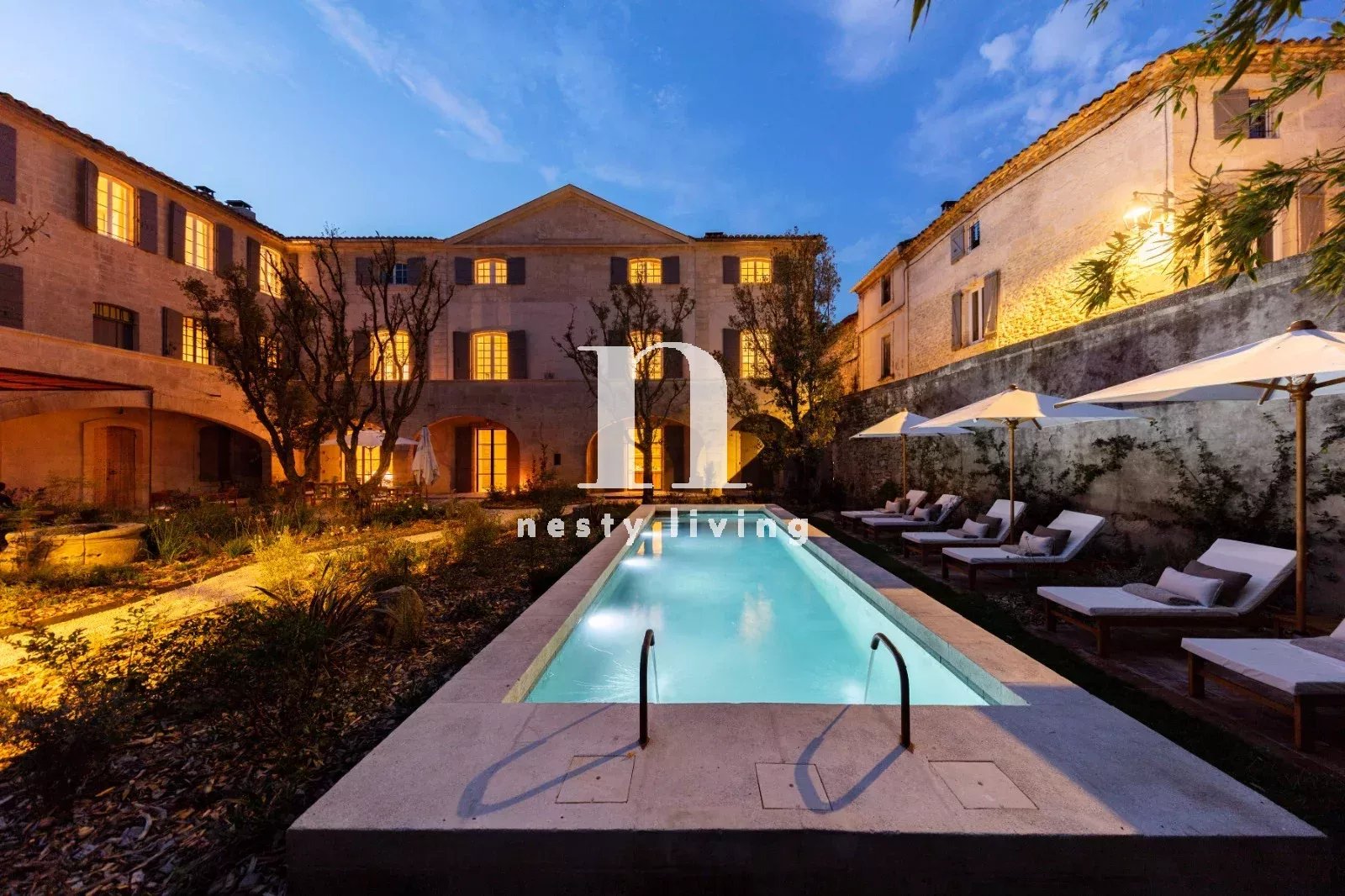 L’ensemble s’organise autour d’un magnifique jardin paysager aux essences méditerranéennes, agrémenté d’un bassin de nage de 12 mètres invitant à la détente dans un cadre enchanteur.