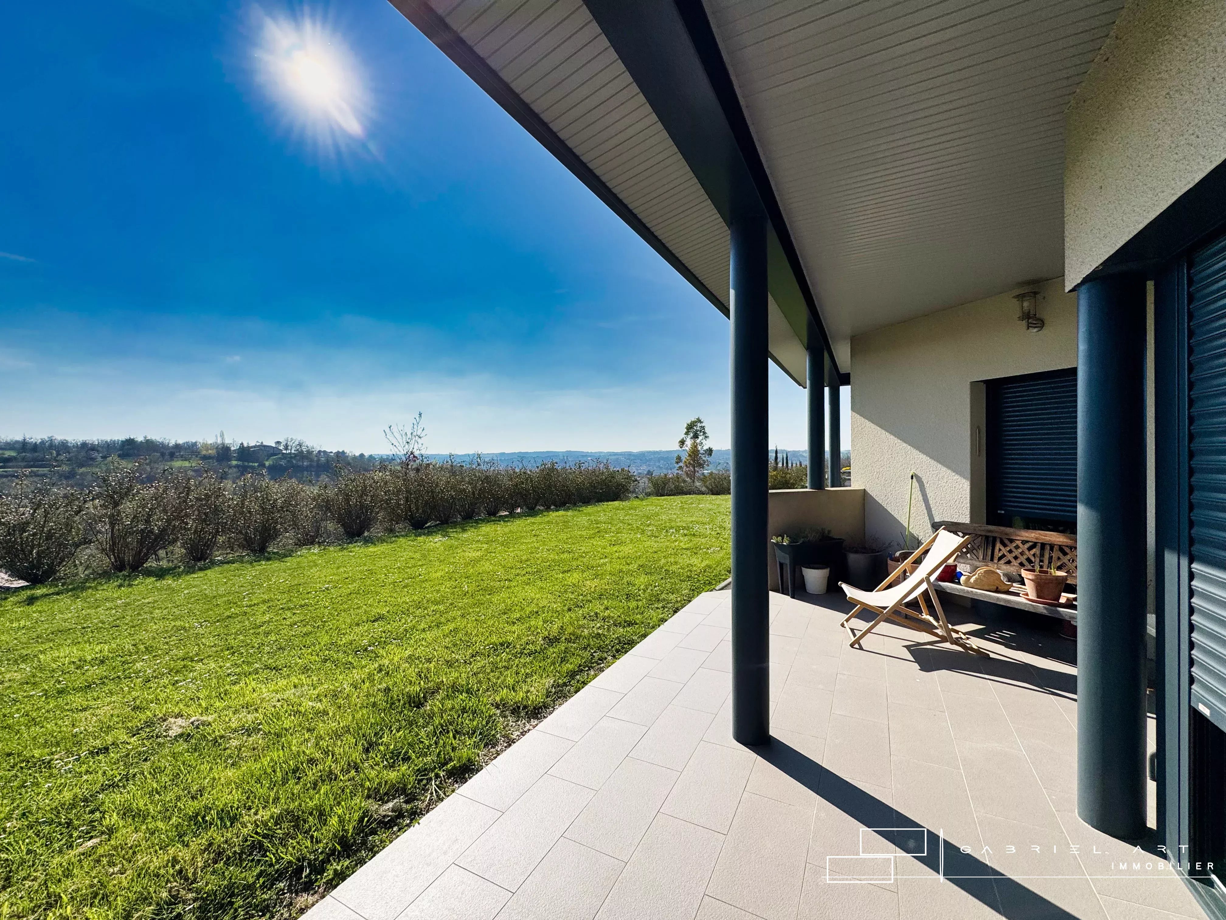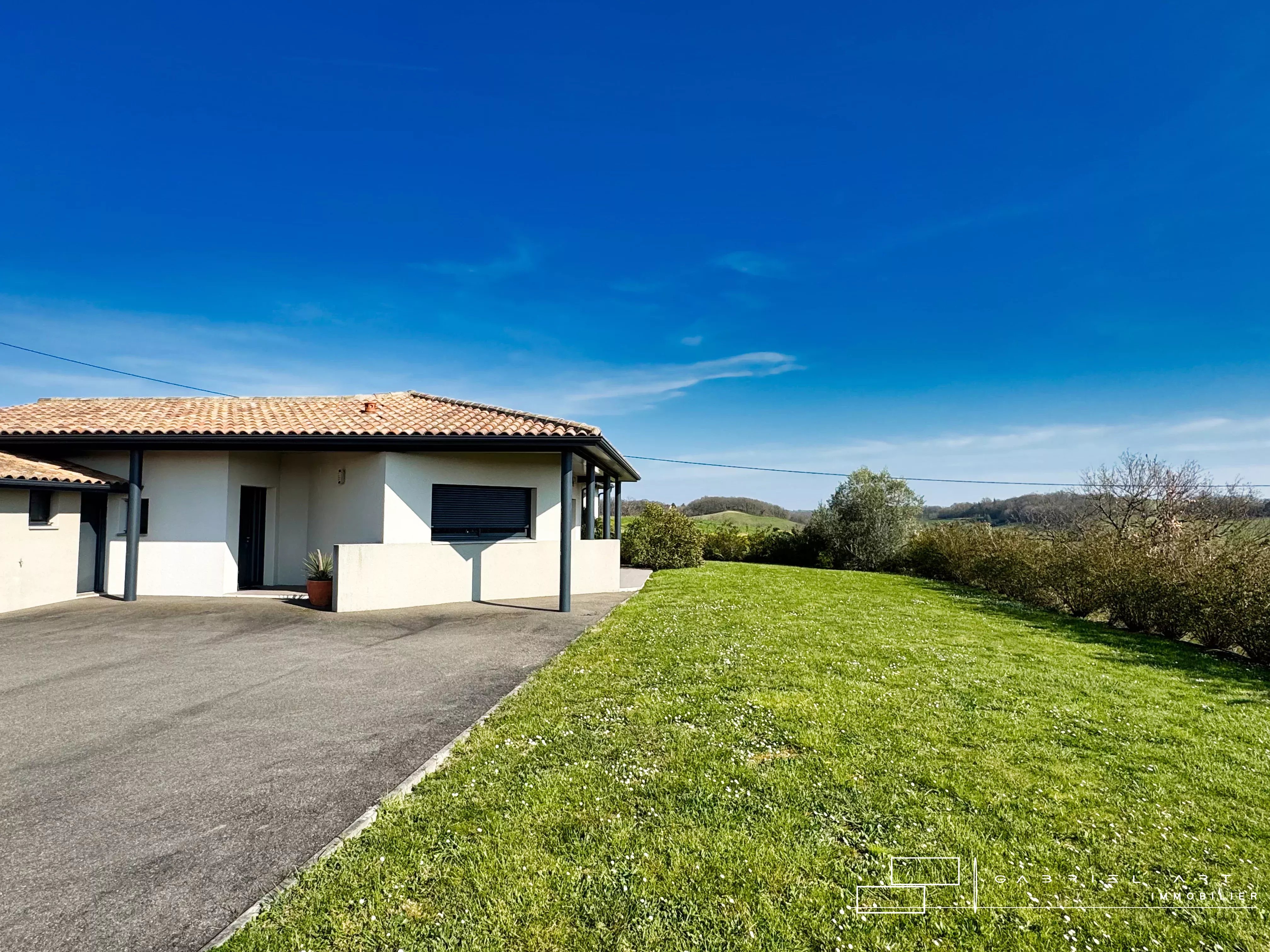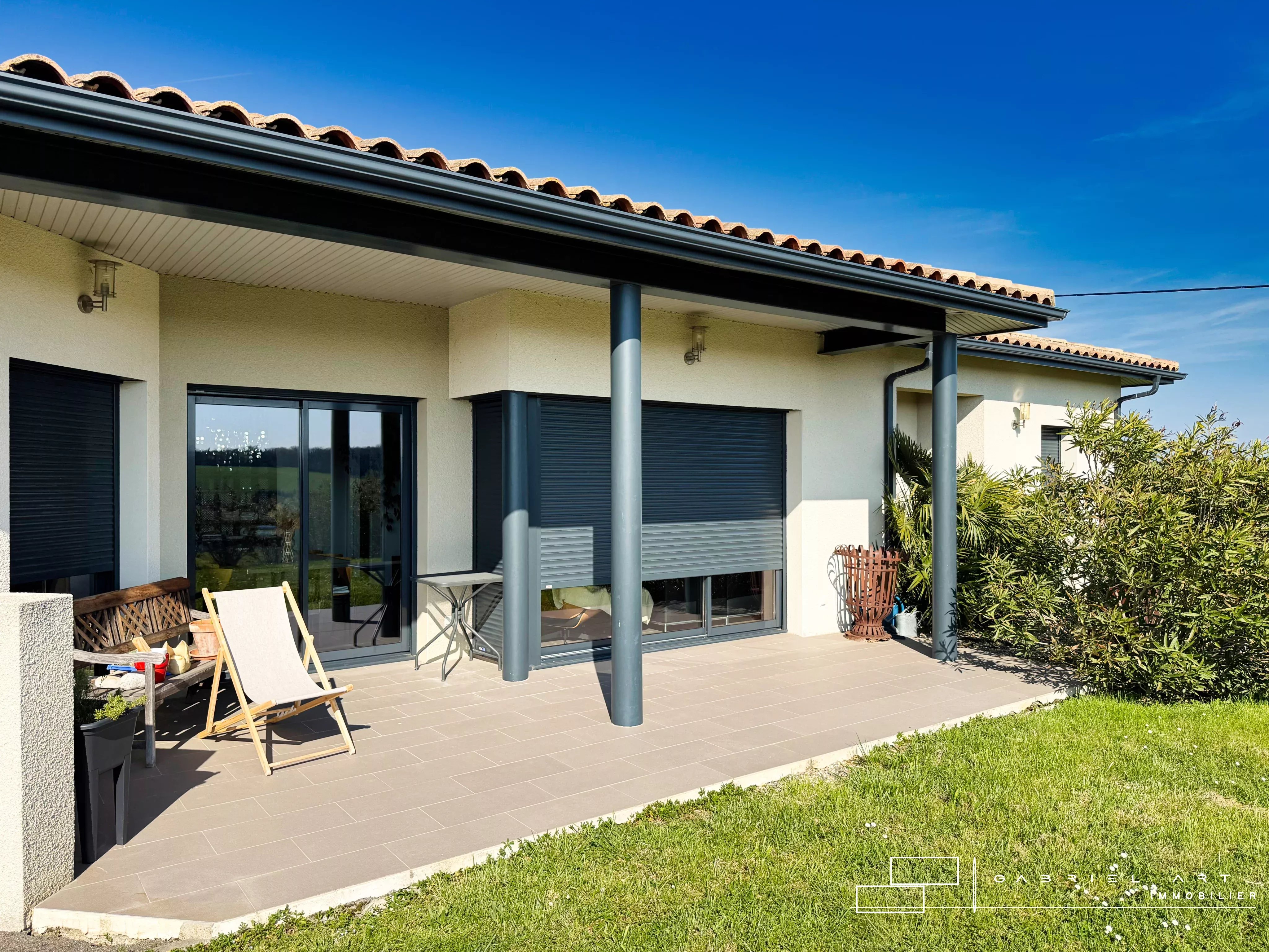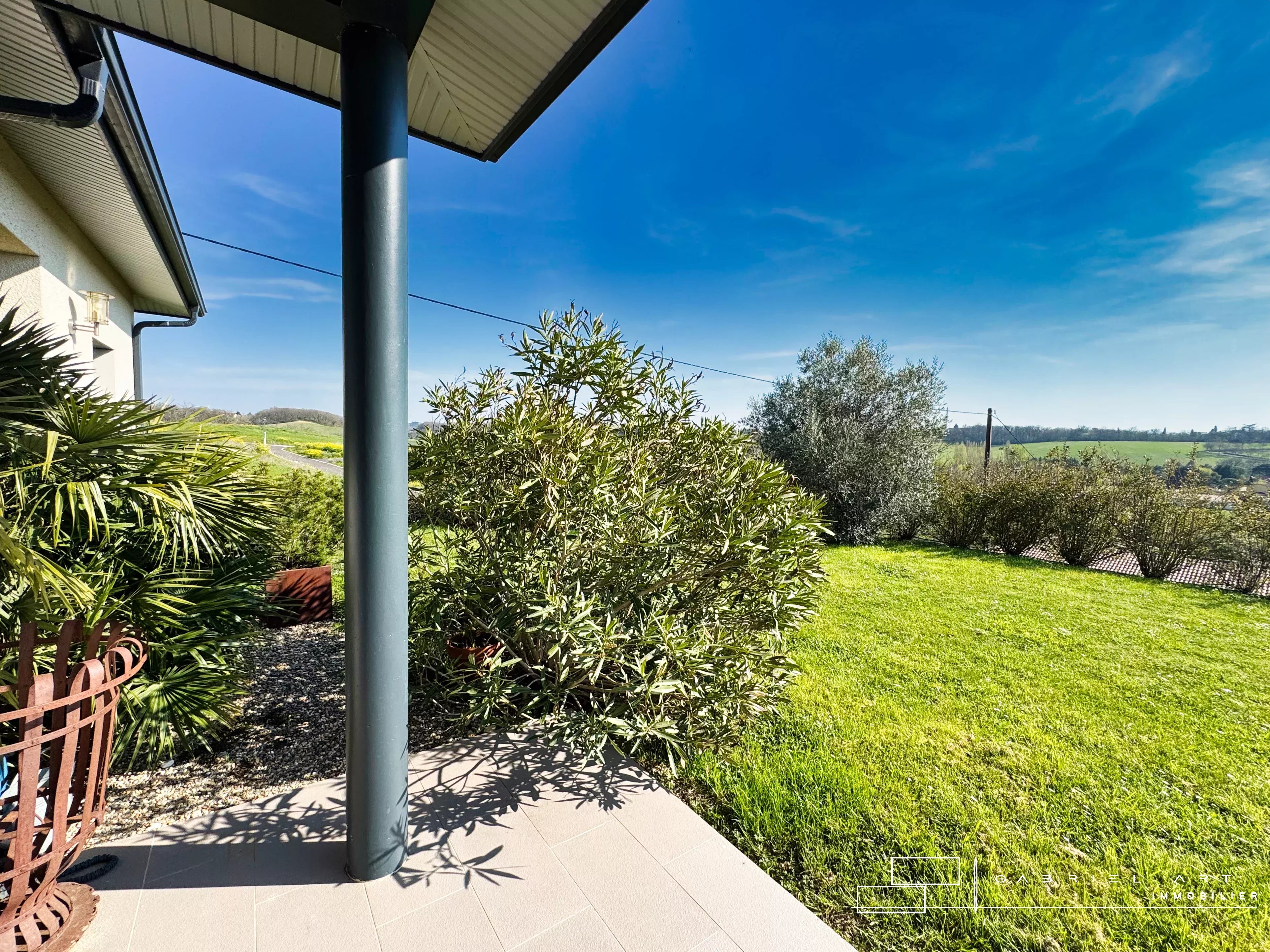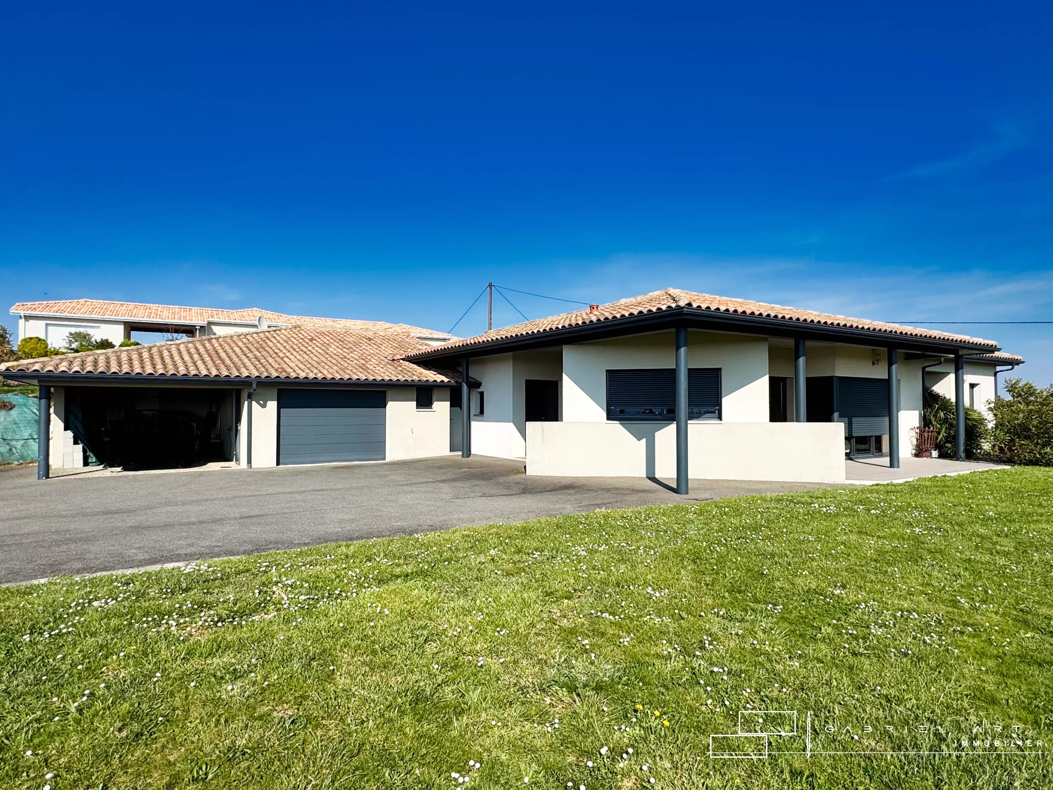 À l’extérieur, vous profiterez d’un grand garage ainsi que d’un préau, parfait pour abriter véhicules ou profiter d’un espace couvert supplémentaire. L’ensemble s’inscrit dans un environnement calme avec une belle vue dégagée, apportant une vraie sensation d’espace et de sérénité.