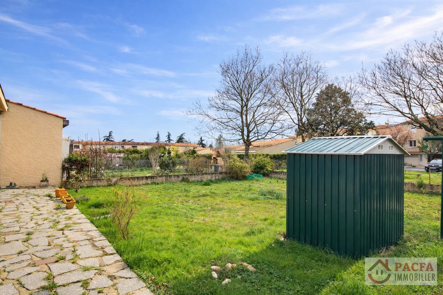 À l’extérieur, la maison bénéficie d’un jardin piscinable avec terrasse, apportant un véritable confort de vie.