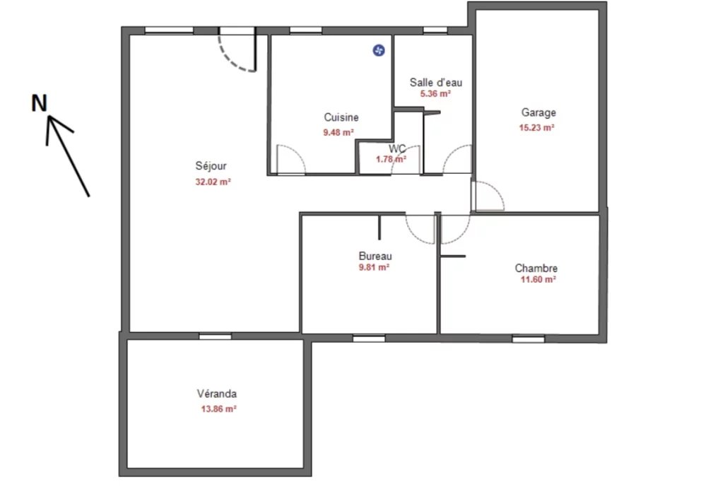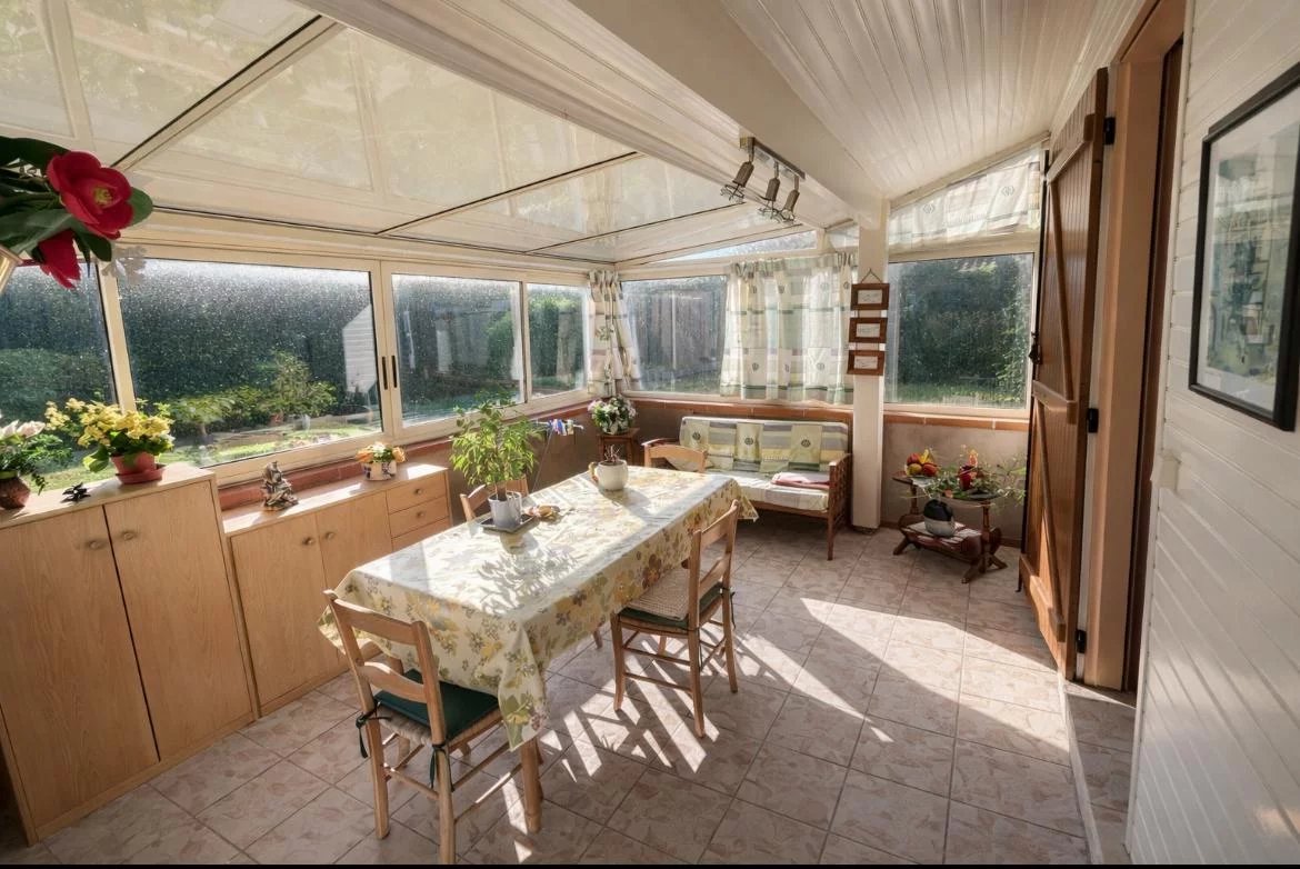 Une grande véranda prolonge la maison sur le jardin, idéale pour profiter de chaque saison. Le bien est complété par un garage.