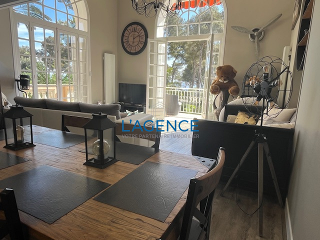 Dans un environnement privilégié, au sein d'un Parc Arboré, au calme, sur les hauteurs qui surplombent l'Almanarre, découvrez cet appartement T3 DE 86 M2 Habitables, en superbe état, au sein du résidence sécurisée et gardiennée à l'année.Alliant charme et confort, l'appartement vous séduira par ses volumes et notamment l'espace de vie lumineux qui ouvre sur 2 extérieurs dont une terrasse sud, avec une vue dégagée verdure et sur la mer.Traversant et parfaitement agencé, cuisine semi ouverte sur le séjour pour profiter pleinement de la vue. Egalement sur ce niveau un wc, un coin buanderie et placard. A l'étage un palier en mezzanine dessert deux chambres confortables, une salle d'eau, et un second wc séparé. Entièrement rénové avec des matériaux de qualité et de belles finitions, cet appartement ne nécessite aucun travaux, vous n'avez plus qu'à poser vos valises et profiter du cadre de vie.Une grande cave et une place de parking privée, viennent compléter ce bien.