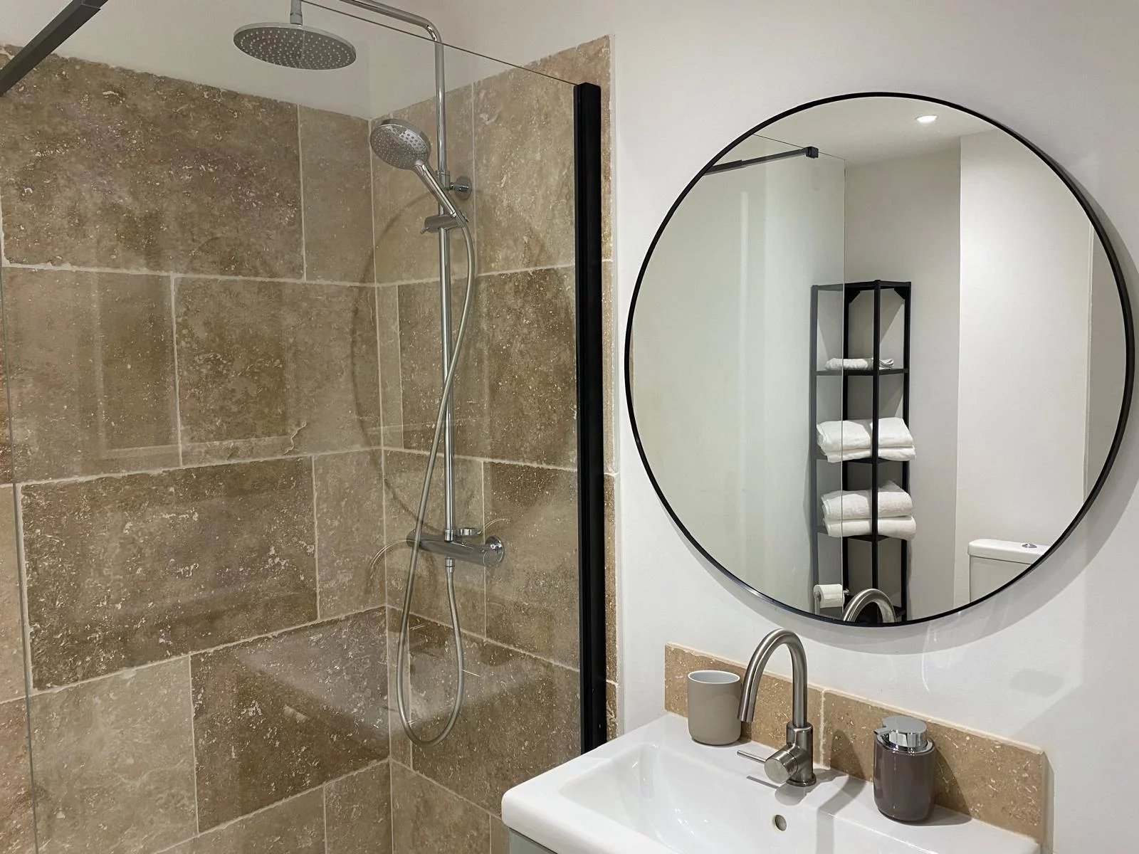 Une salle d’eau moderne avec douche à l’italienne et WC