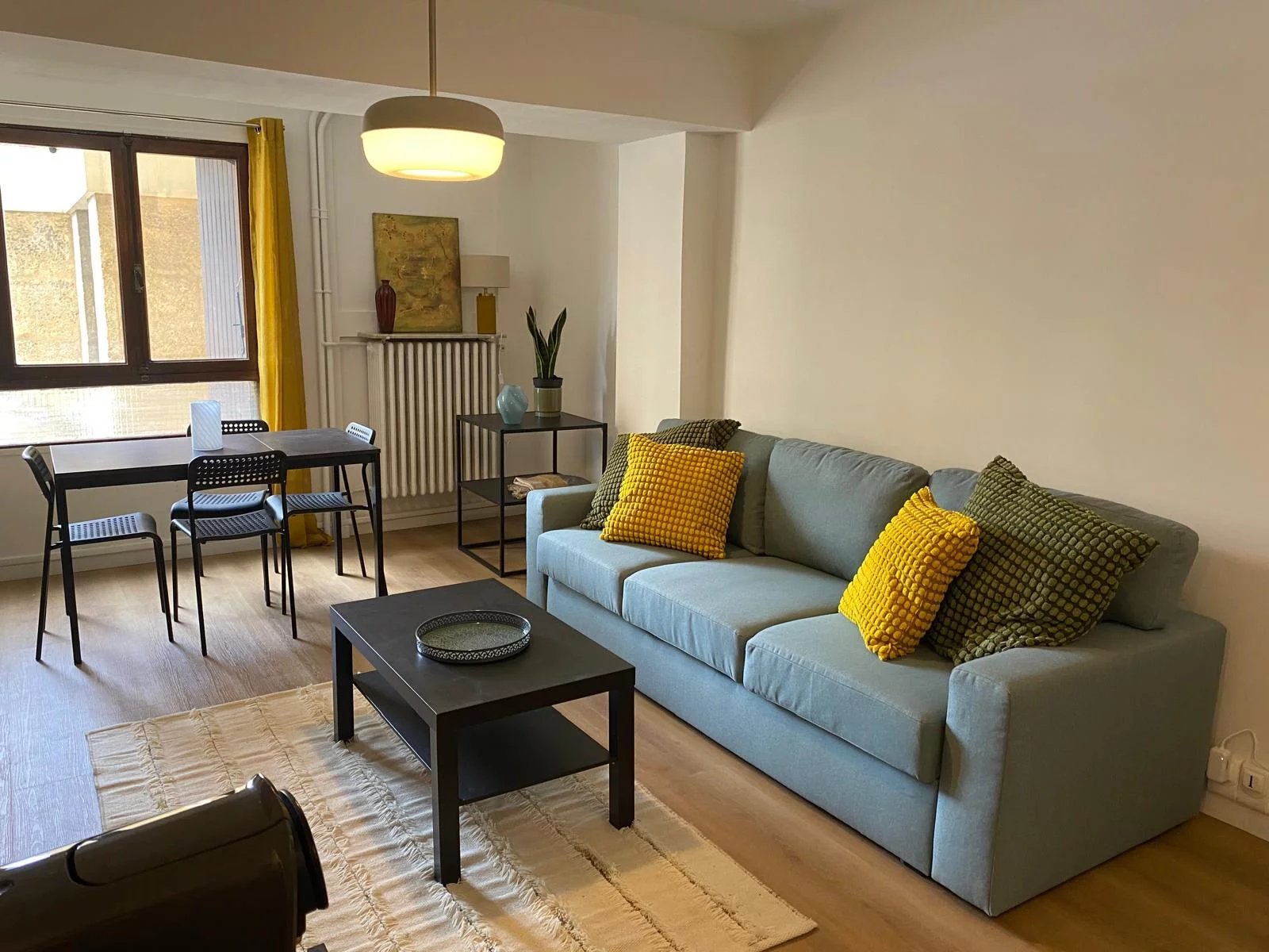 Une belle pièce de vie lumineuse avec cuisine américaine entièrement équipée