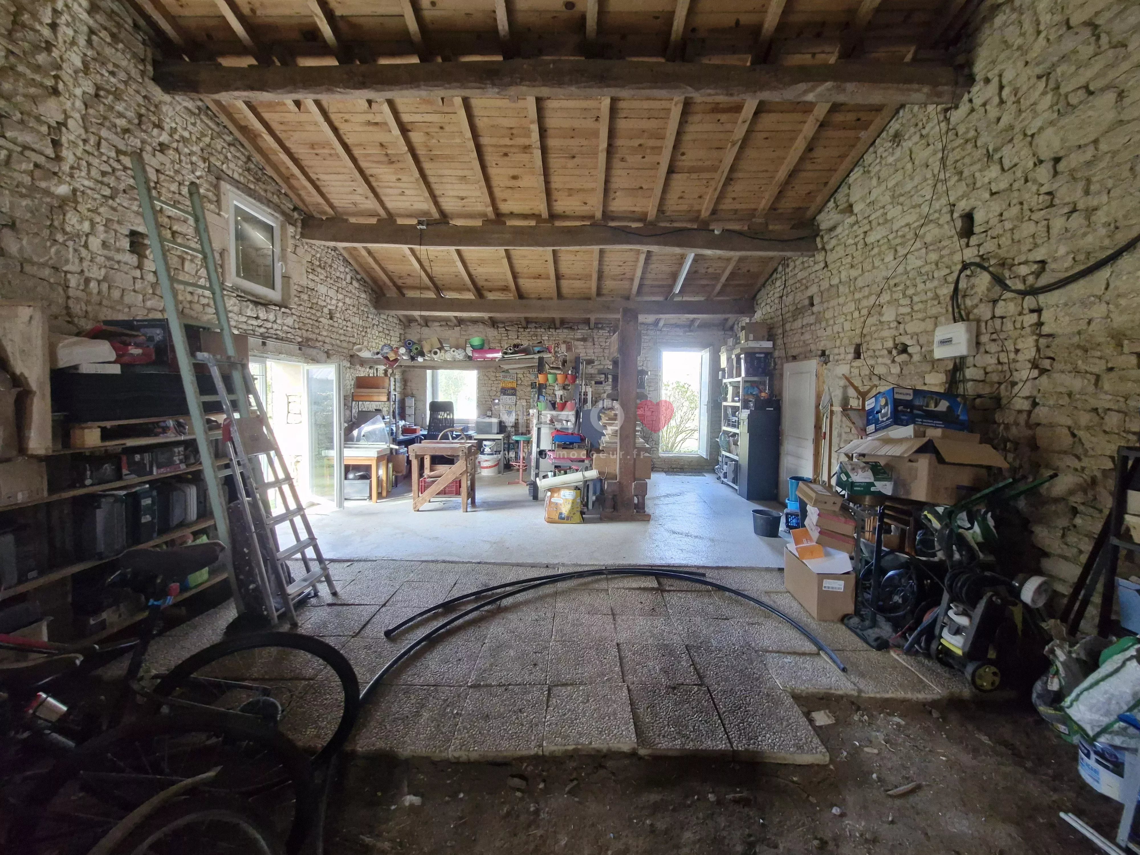 1 - L'énorme potentiel de la grange : beau volume et grande hauteur permettant les idées les plus folles : de l'agrandissement de l'existant à la création d'un logement supplémentaire (possibilité de doubler la surface en créant un étage).