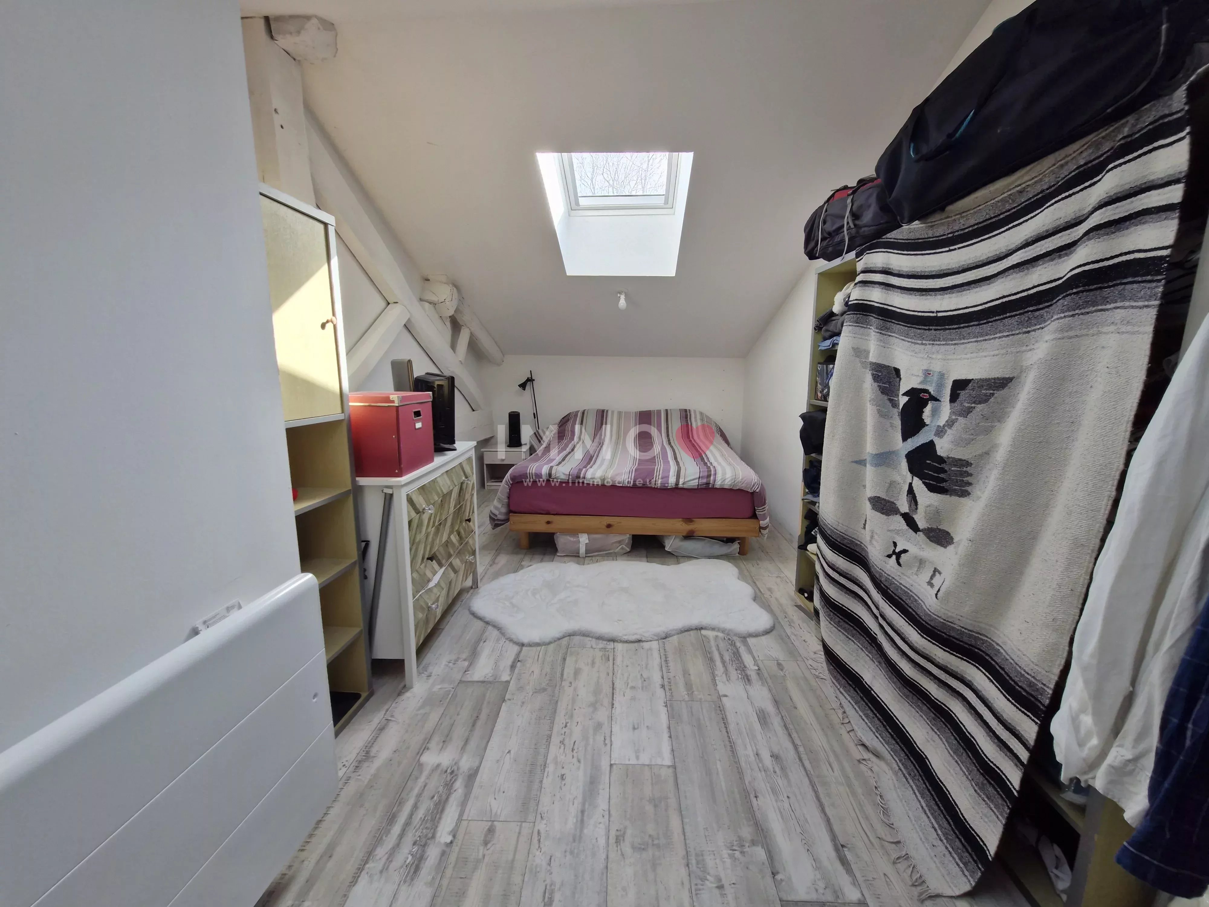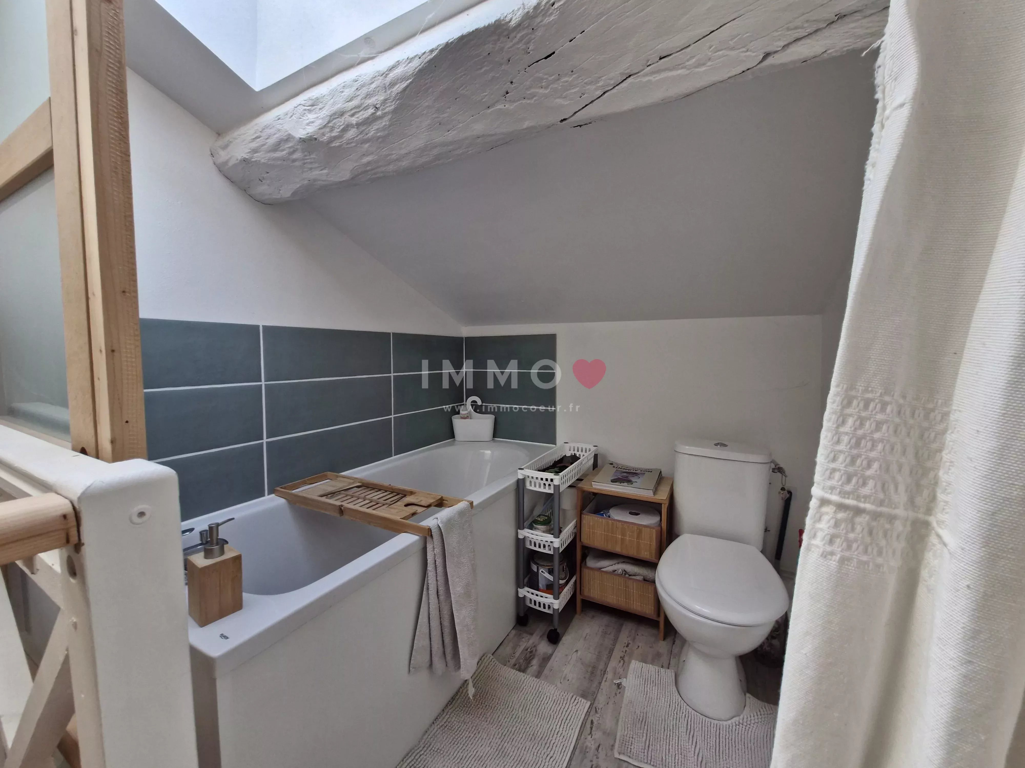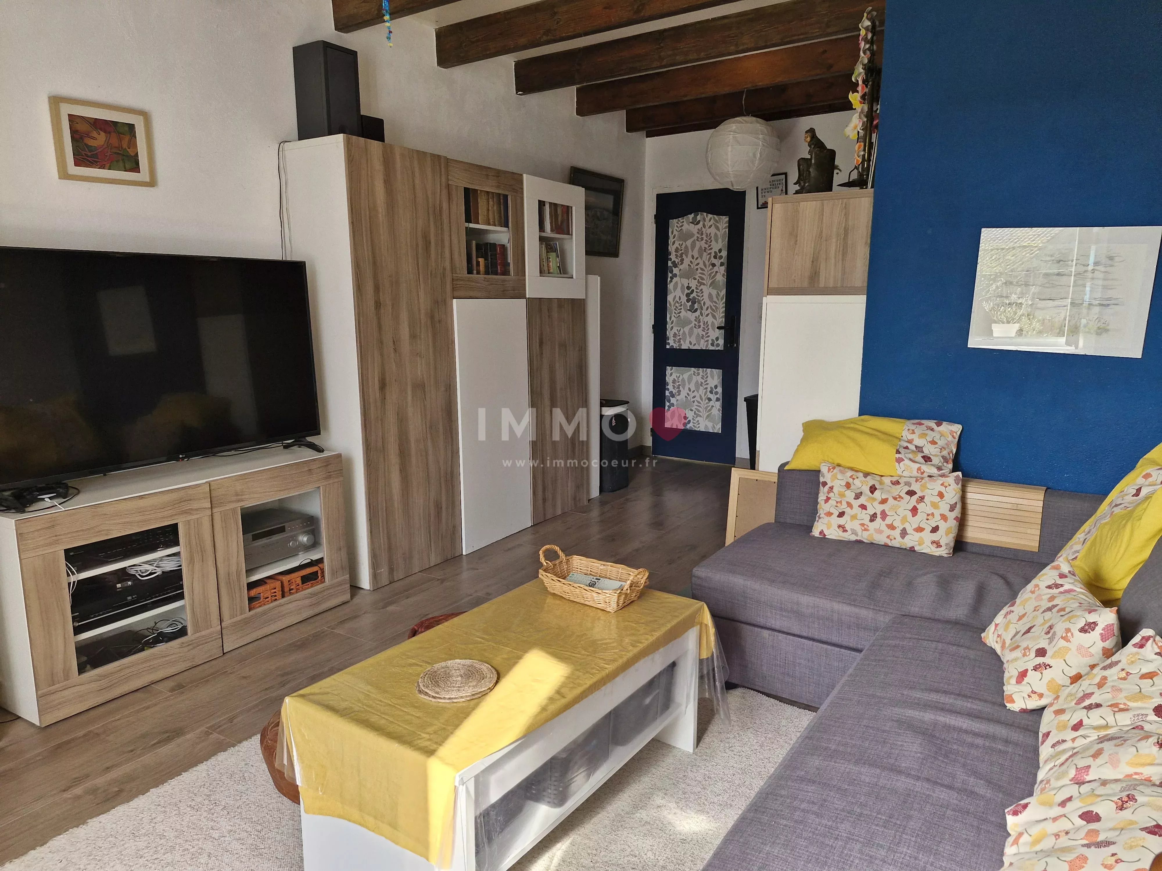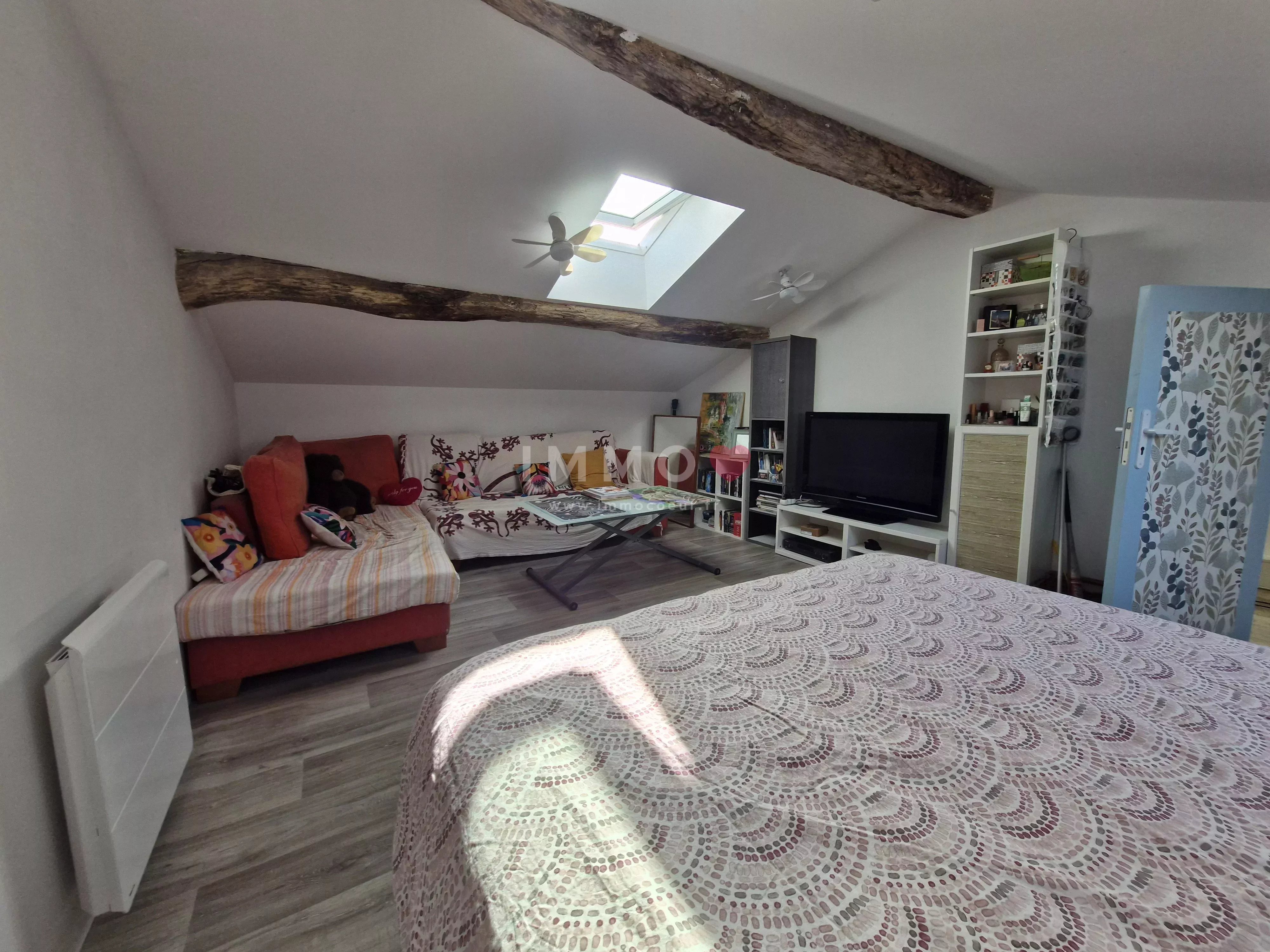 Cette bâtisse d'une surface de 131m² comprend au rez-de-chaussée : une entrée, un salon, une chambre, une salle d'eau avec toilette, une cuisine, un grand séjour de 38m² s'ouvrant sur le jardin arrière, et une immense grange de 104m² aux poutres apparentes. A l'étage : 2 chambres et une salle de bains avec toilette.