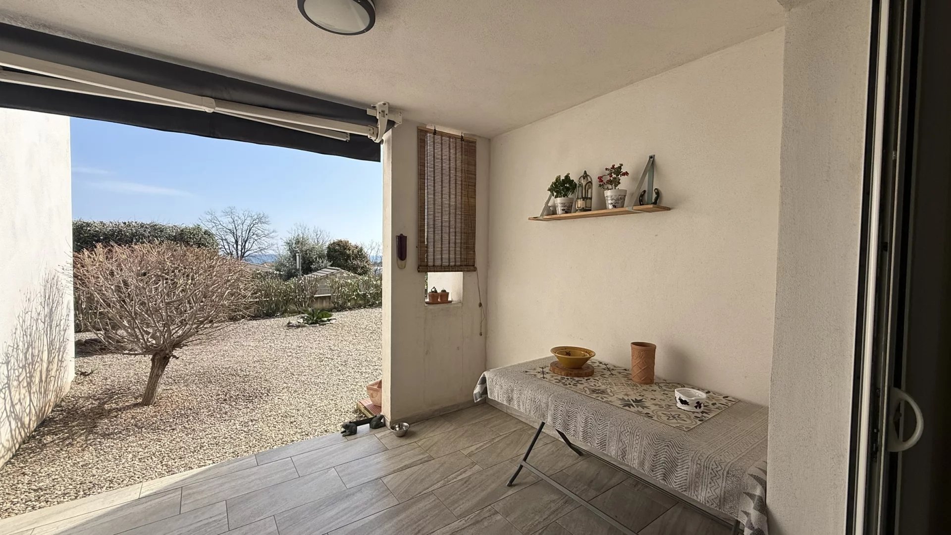 En exclusivité de vente. Très bel Appartement de type 3, situé en petite campagne. Il se compose d'un hall d'entrée, un salon sur terrasse de 9 m² vue mer, une belle cuisine équipée, un couloir donnant accès à une buanderie, un wc, 2 chambres dont une dressing et accès terrasse de 9 m², une salle de douche. Belles prestations - parfait état. Commerces et plages à 2 mn seulement. Possibilité d'achat garage en +