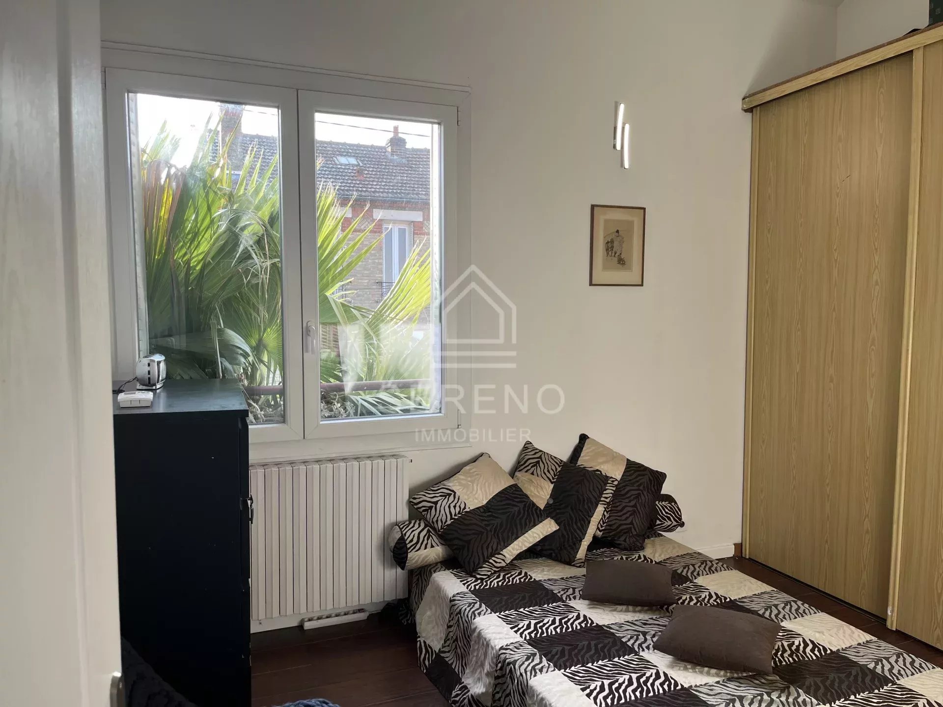 SERENO vous propose à Noisy le sec, quartier piscine Edouard Herriot , une maison avec jardin entièrement meublée et équipée, rénovée avec gout, d'une surface de 88,50 m2 habitable (129,29 m2 au sol) sur une parcelle de 219 m2 dans une rue calme proche du futur métro T5.