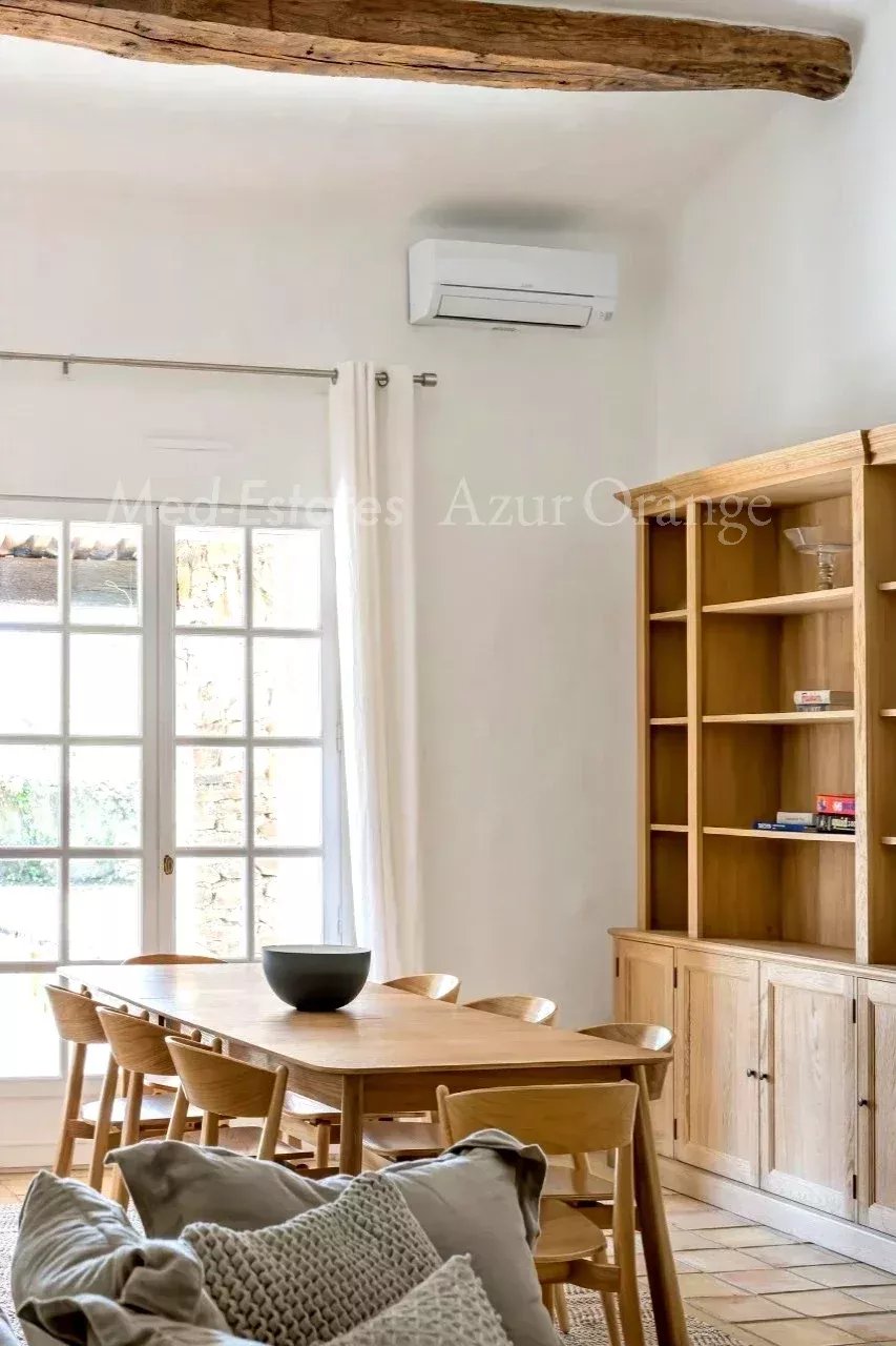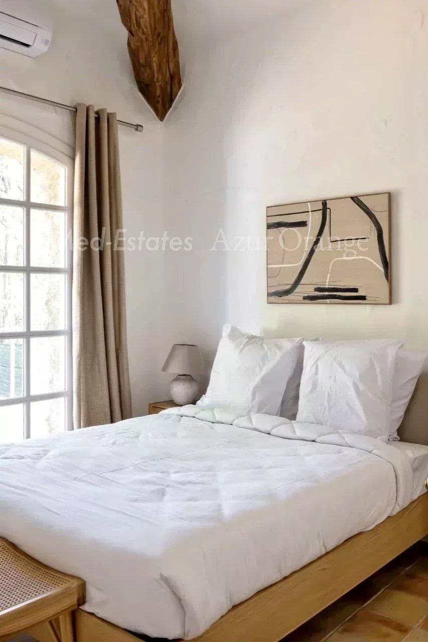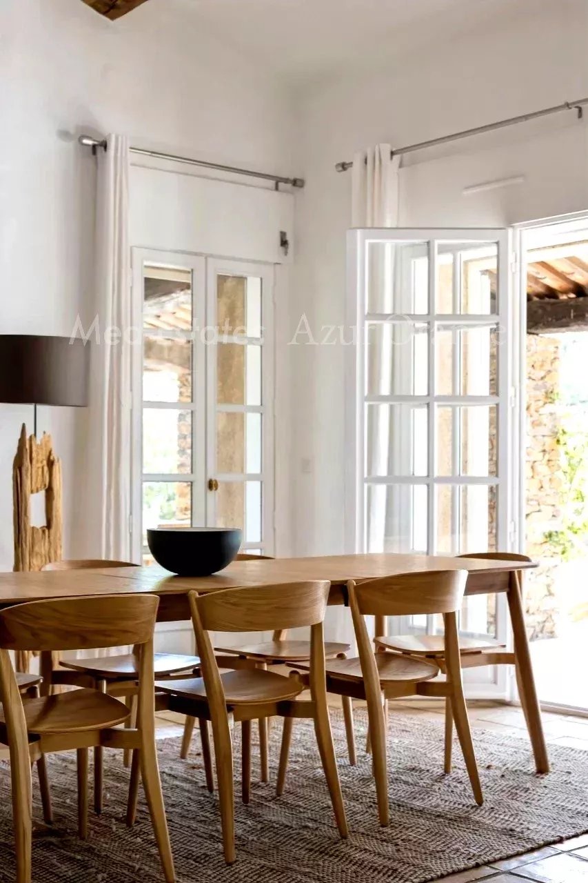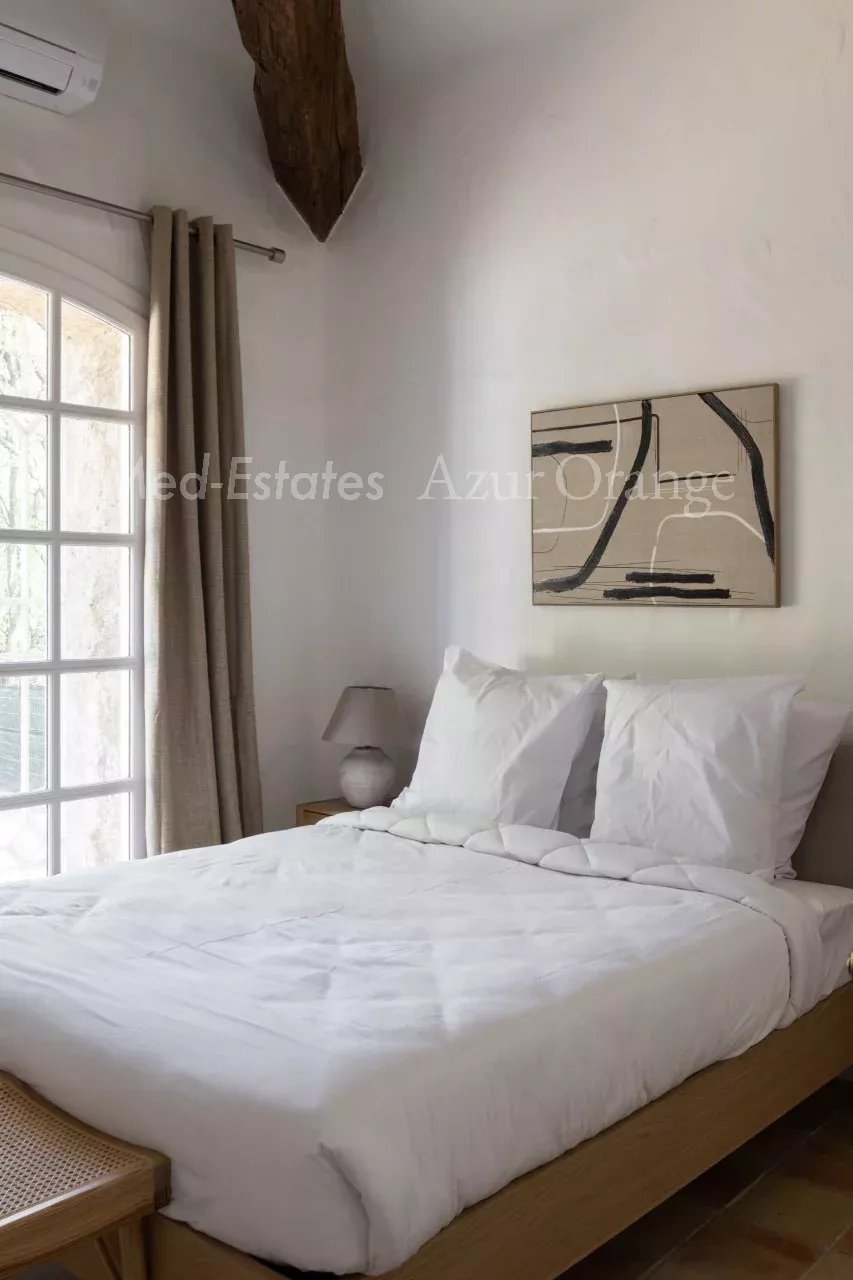 Magnifique maison provençale dans un domaine privé - proche du village Dans un domaine sécurisé, situé à la lisière du village de Grimaud et avec un accès facile aux plages sans embouteillages. Magnifique villa provençale, construite en « pierres sèches » typiques, d'une surface habitable de +/- 250 m² et 5 chambres, sur un terrain agréable et plat de 2,027 m² avec piscine chauffée et dépendance. La villa a été entièrement rénovée (2026) et offre des espaces agréables et lumineux, des finitions de haute qualité et un aménagement méditerranéen raffiné. La villa Entrée ; salon lumineux, cuisine ouverte (appareils MIELE, avec plan de travail en marbre) ; salle à manger, cheminée. Toutes les pièces donnent accès au jardin avec plusieurs terrasses, idéal pour profiter de la vie méditerranéenne. Cinq chambres avec salles de bains. Espace extérieur Belle piscine chauffée ; jardin orienté sud, planté de magnifiques arbres et plantes méditerranéens matures. Un garage ; parking. Portail électrique. Le domaine privé dispose de plusieurs courts de tennis (bien entretenus). Cette villa bénéficie d'un emplacement calme, dans un domaine sécurisé, à proximité du charmant village de Grimaud et à seulement quelques minutes en voiture des plages, du port de plaisance de Grimaud et du golf international de Beauvallon ; Saint-Tropez et les plages de Ramatuelle (Pampelonne) sont à seulement 15-20 minutes. Selon les règles de construction en vigueur (sous réserve de l'obtention d'un permis), vous pourriez réaliser une suite dans l'annexe - avec vue sur la mer & La Baie de Saint-Tropez. Toutes les pièces sont climatisées. La villa est vendue meublée. Très bonne rentabilité locative. En parfait état - une véritable perle rare !