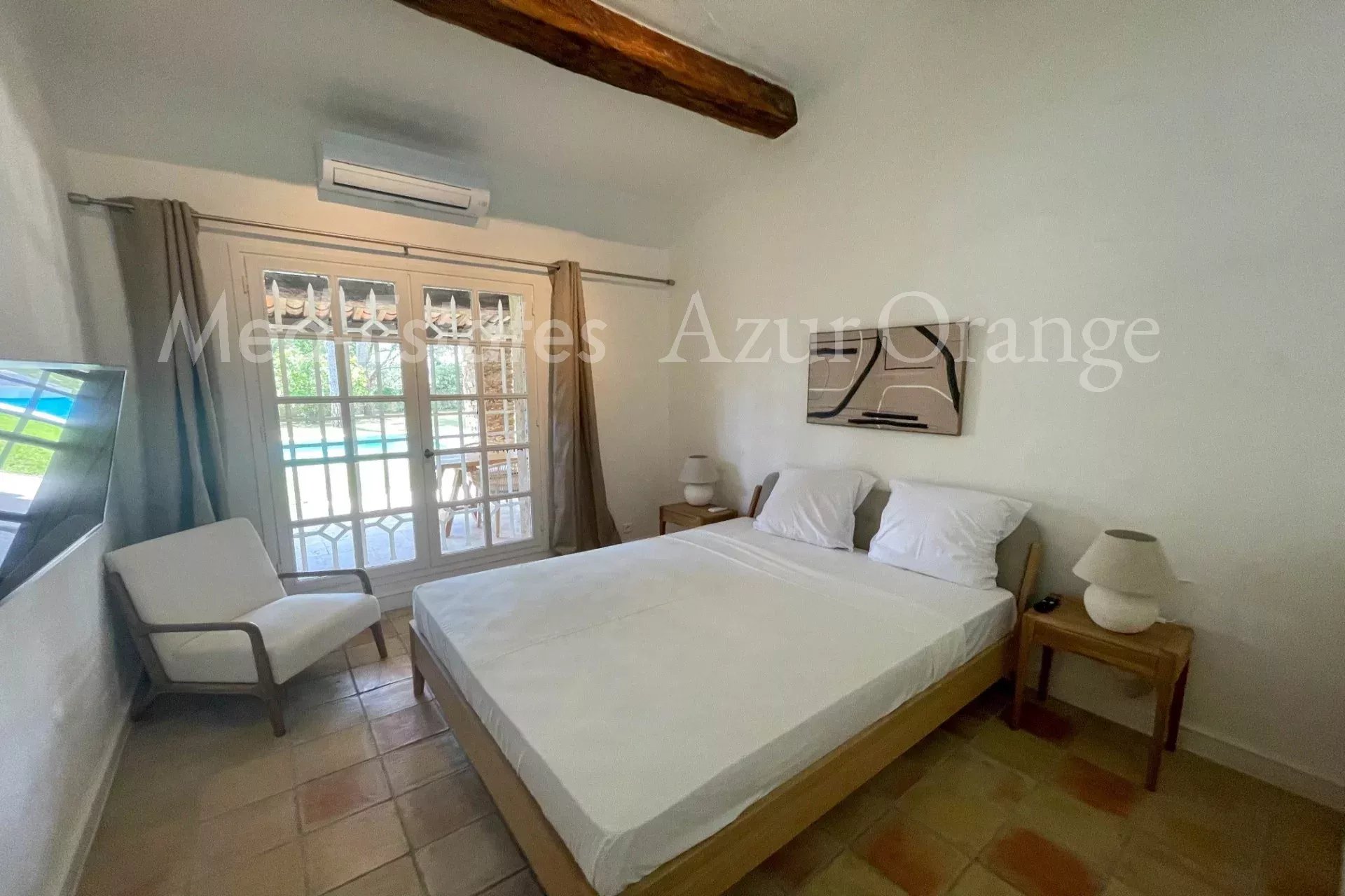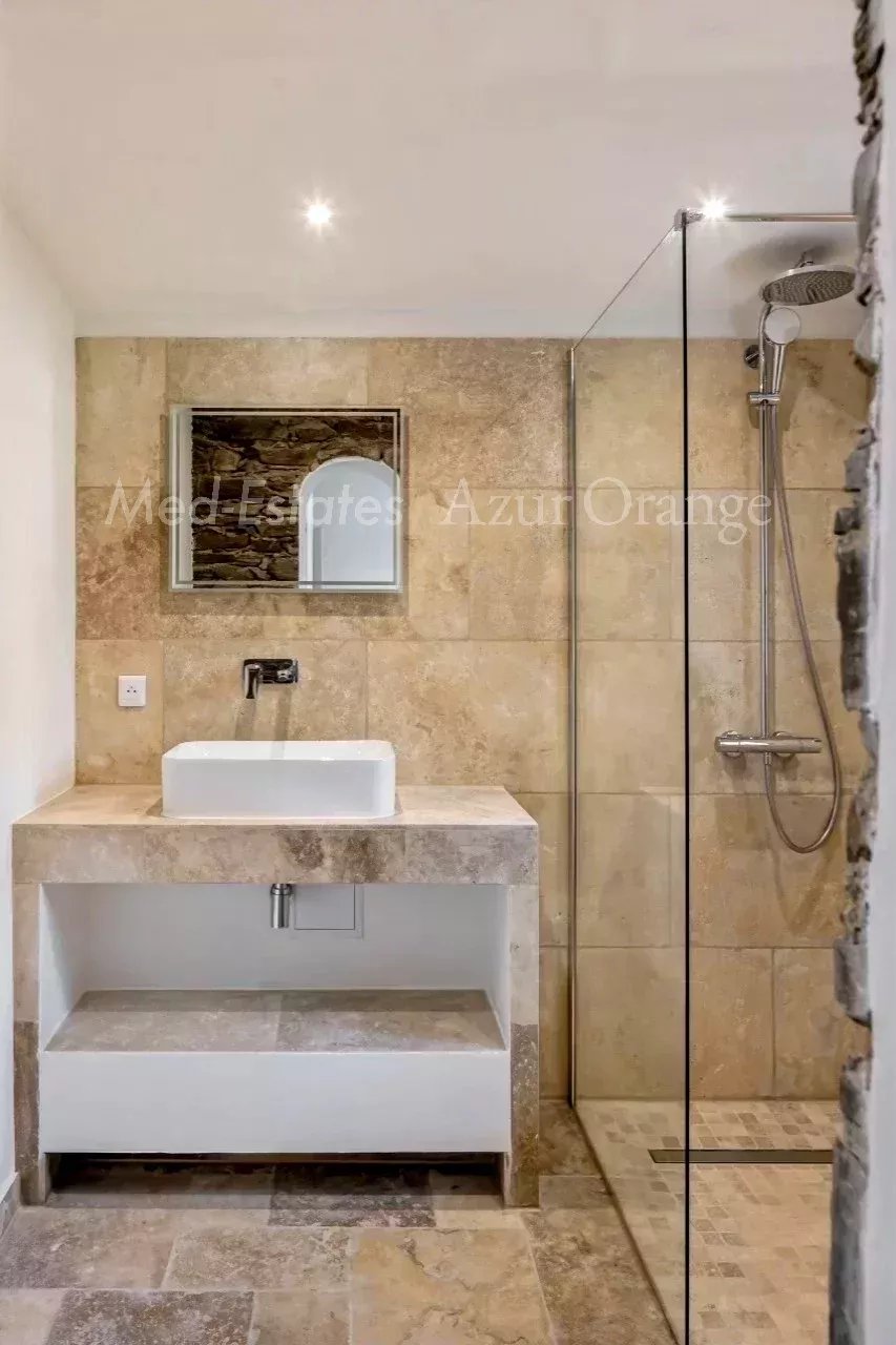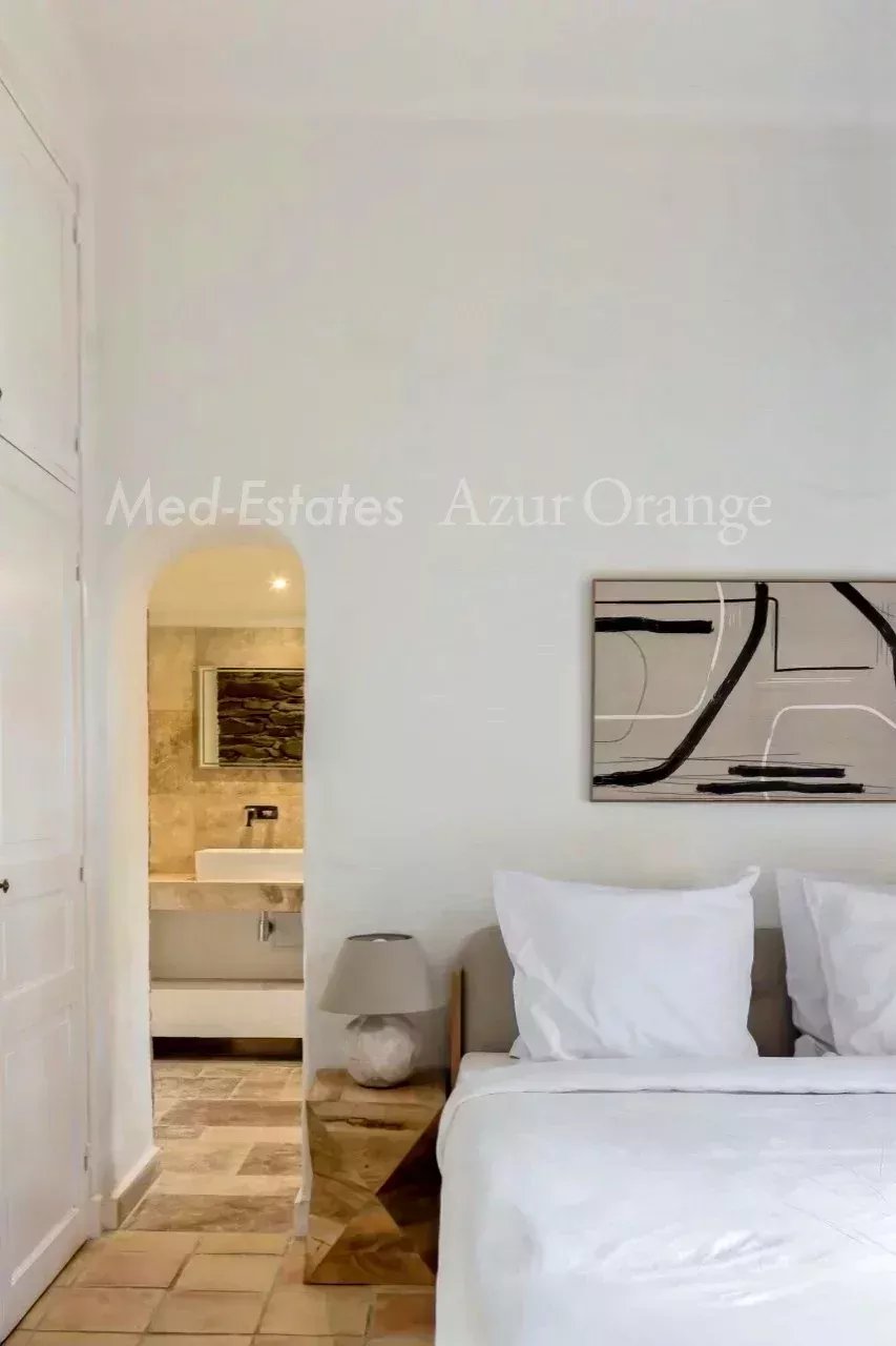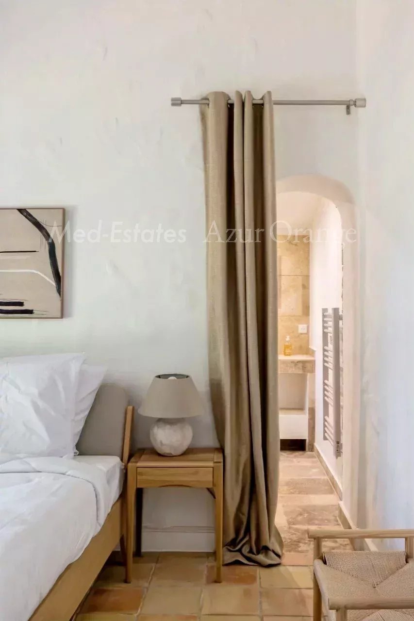 Magnifique maison provençale dans un domaine privé - proche du village Dans un domaine sécurisé, situé à la lisière du village de Grimaud et avec un accès facile aux plages sans embouteillages. Magnifique villa provençale, construite en « pierres sèches » typiques, d'une surface habitable de +/- 250 m² et 5 chambres, sur un terrain agréable et plat de 2,027 m² avec piscine chauffée et dépendance. La villa a été entièrement rénovée (2026) et offre des espaces agréables et lumineux, des finitions de haute qualité et un aménagement méditerranéen raffiné. La villa Entrée ; salon lumineux, cuisine ouverte (appareils MIELE, avec plan de travail en marbre) ; salle à manger, cheminée. Toutes les pièces donnent accès au jardin avec plusieurs terrasses, idéal pour profiter de la vie méditerranéenne. Cinq chambres avec salles de bains. Espace extérieur Belle piscine chauffée ; jardin orienté sud, planté de magnifiques arbres et plantes méditerranéens matures. Un garage ; parking. Portail électrique. Le domaine privé dispose de plusieurs courts de tennis (bien entretenus). Cette villa bénéficie d'un emplacement calme, dans un domaine sécurisé, à proximité du charmant village de Grimaud et à seulement quelques minutes en voiture des plages, du port de plaisance de Grimaud et du golf international de Beauvallon ; Saint-Tropez et les plages de Ramatuelle (Pampelonne) sont à seulement 15-20 minutes. Selon les règles de construction en vigueur (sous réserve de l'obtention d'un permis), vous pourriez réaliser une suite dans l'annexe - avec vue sur la mer & La Baie de Saint-Tropez. Toutes les pièces sont climatisées. La villa est vendue meublée. Très bonne rentabilité locative. En parfait état - une véritable perle rare !