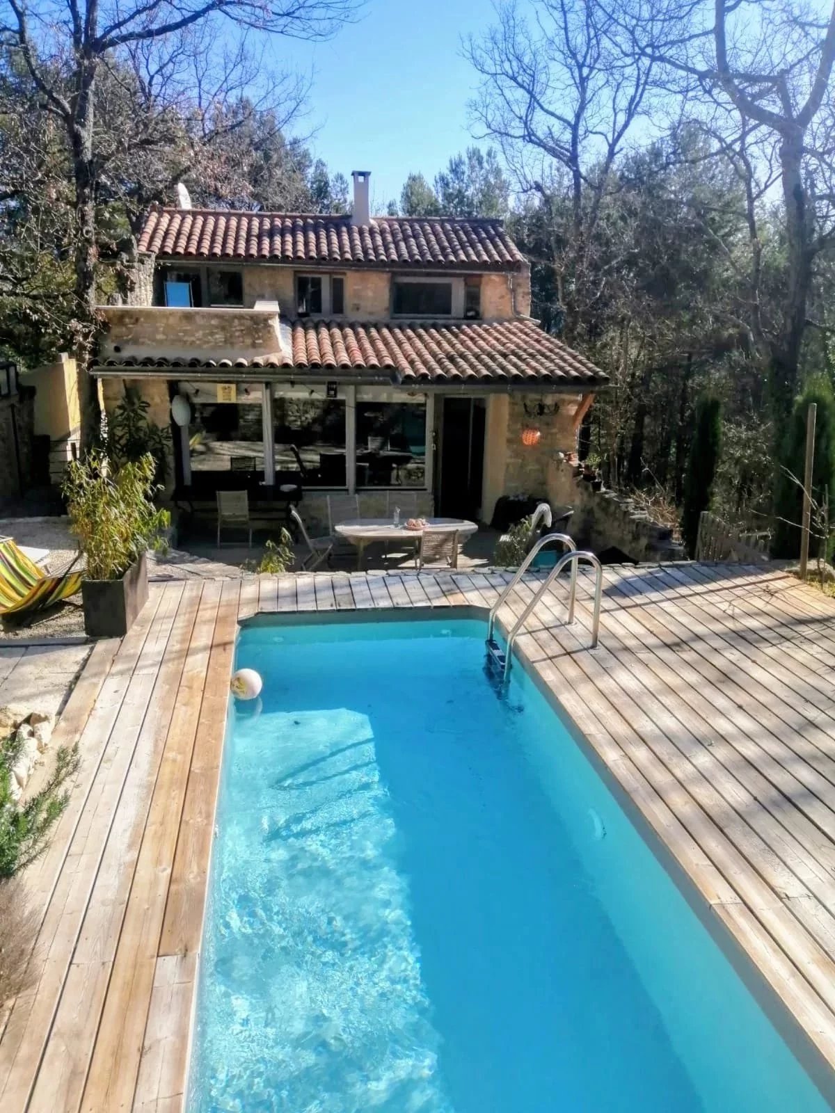 Vous serez séduit par cette maison en pierre de 83 m², à quelques minutes d’Apt, où la forêt et le calme deviennent le quotidien sans jamais donner une impression d’isolement. Posée sur un terrain boisé, elle offre une terrasse ensoleillée accessible depuis la pièce de vie, une petite piscine pour les jours chauds, et la présence discrète d’un voisin tout proche, juste assez pour être rassurant et pratique, sans rien enlever à l’intimité des lieux. À l’intérieur, le rez-de-chaussée s’organise autour d’une pièce de vie avec cuisine ouverte qui donne sur la terrasse et ouvre sur un salon cosy, complétée par un toilette indépendant et une buanderie. À l’étage, une chambre et une seconde pièce modulable selon les besoins (bureau, chambre d’appoint ou dressing) ainsi qu'une salle de douche. Un studio complète l’ensemble avec une salle de douche et peut servir comme autre chambre ou comme atelier par exemple ainsi qu'une cave, pratique pour le stockage. Dans le jardin, la végétation préservée accueille aussi une petite borie typique du Luberon, qui ajoute du caractère à ce refuge discret. Pensée pour une petite famille en résidence principale, elle fait aussi un pied-à-terre idéal dans le Luberon et se prête très bien à la location saisonnière grâce à son charme, sa piscine, son écrin de verdure. On y trouve la sensation précieuse d’être dans la nature, avec un accès facile à Apt et la tranquillité d’avoir quelqu’un non loin, simplement.