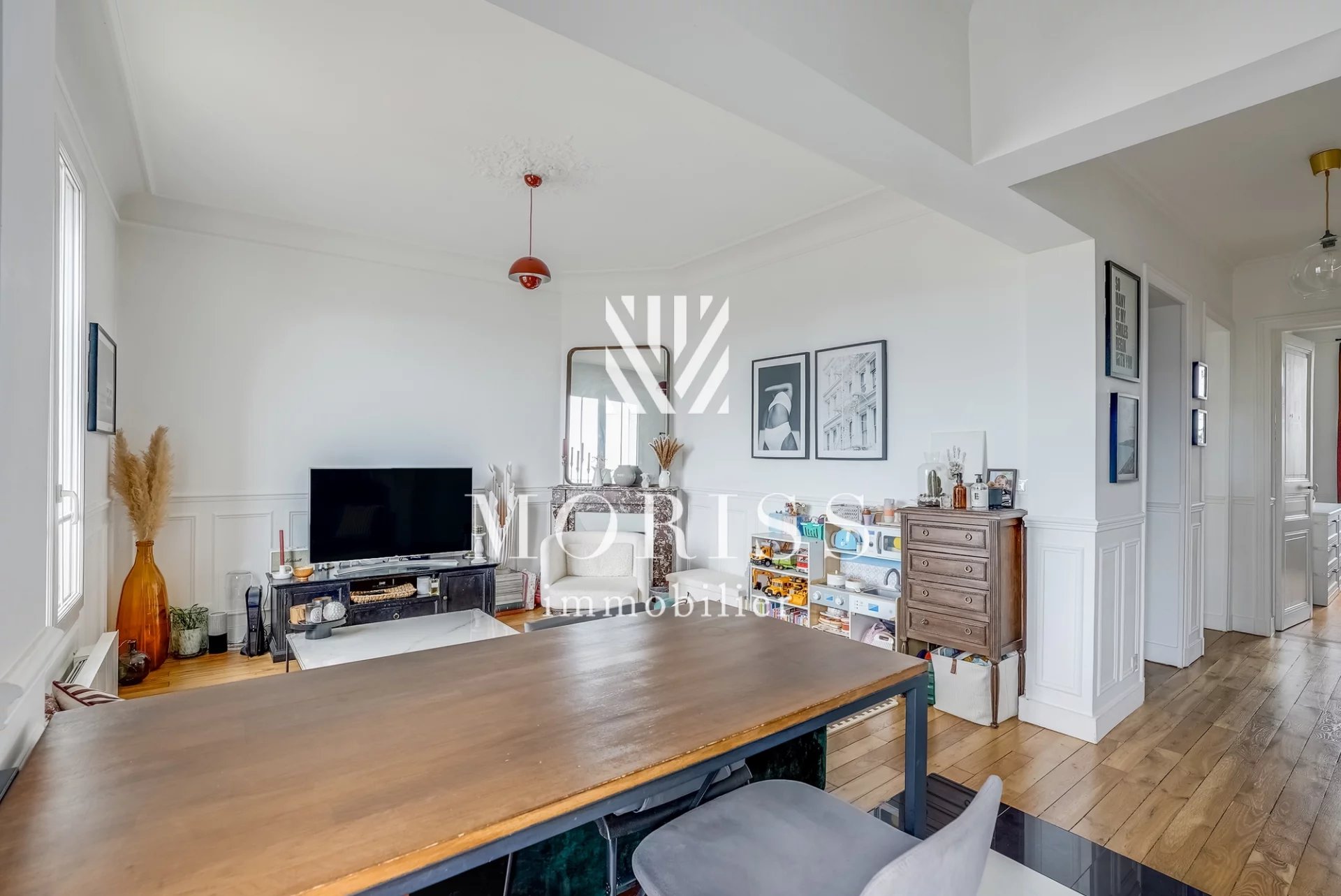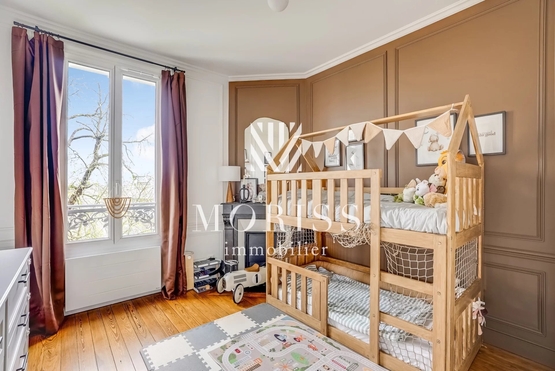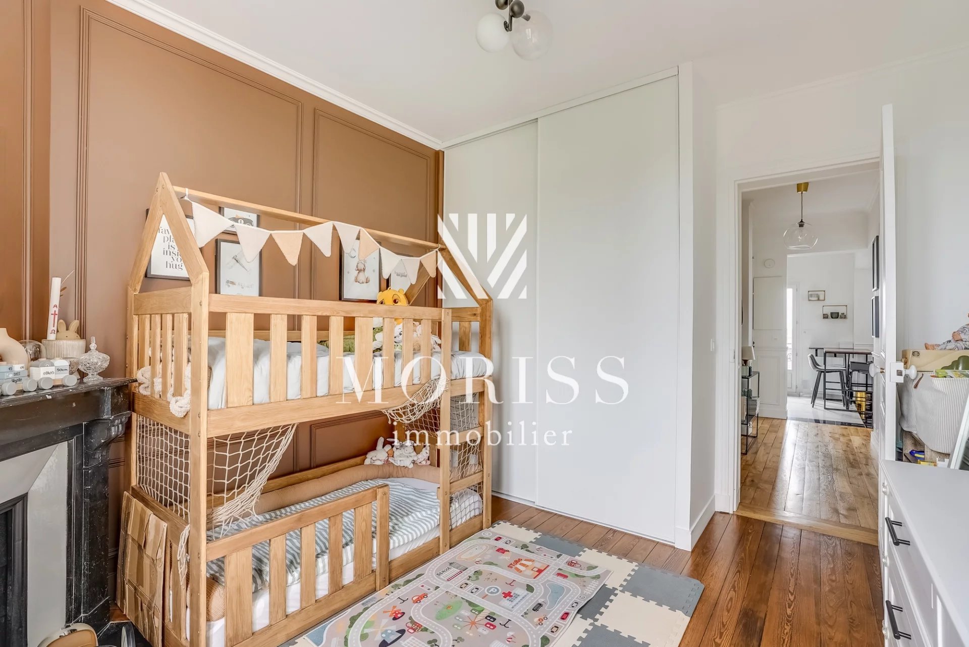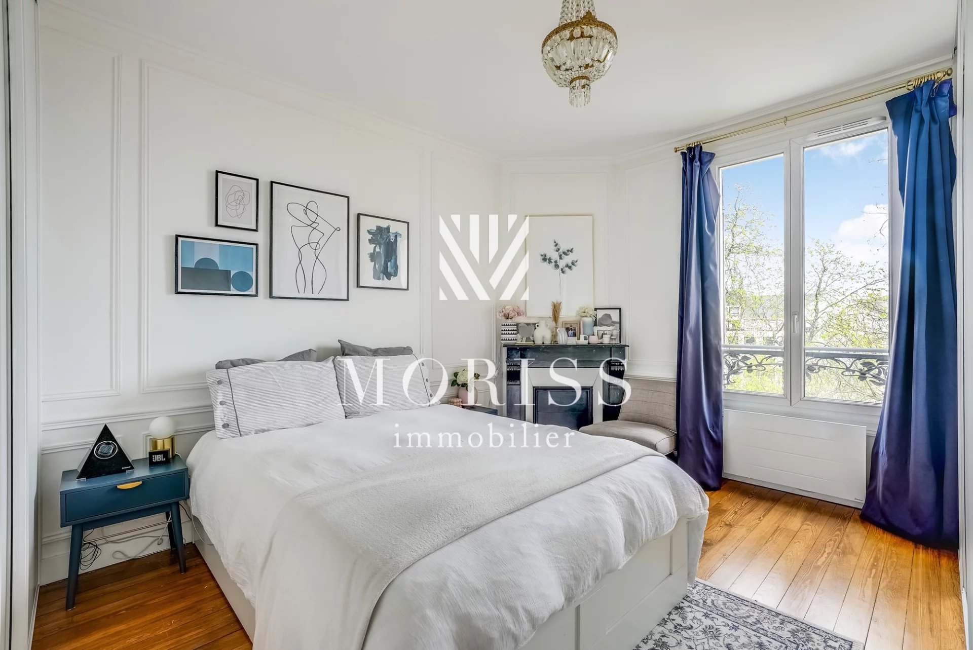 Dans une résidence d'époque, au 4e étage sans ascenseur, ce bien entièrement refait à neuf se compose d'une entrée ouvrant sur un séjour lumineux avec moulures au plafond et cheminée en marbre, d'une cuisine américaine, d'un couloir desservant deux chambres spacieuses avec un magnifique parquet d’origine, d'une salle de bains avec accès à la buanderie et de WC séparés. Vous bénéficiez également d’un joli jardin commun bucolique au sein de la résidence.