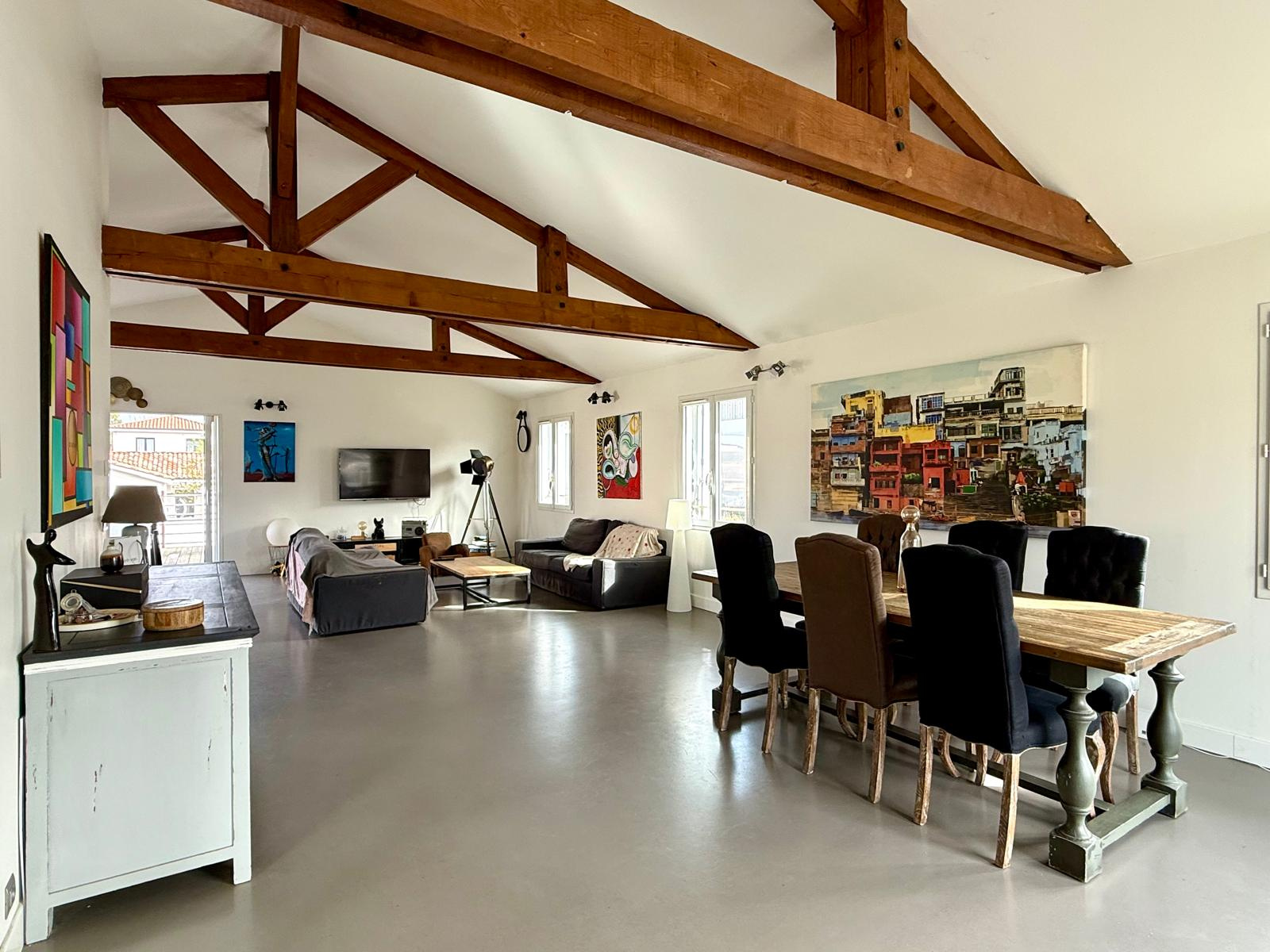 Elle offre un séjour traversant lumineux de 51 m2 avec cuisine équipée ouverte de 15m2, créant un bel espace de vie convivial. Celui-ci s'ouvre directement sur une grande terrasse, idéale pour profiter des beaux jours et des extérieurs.
