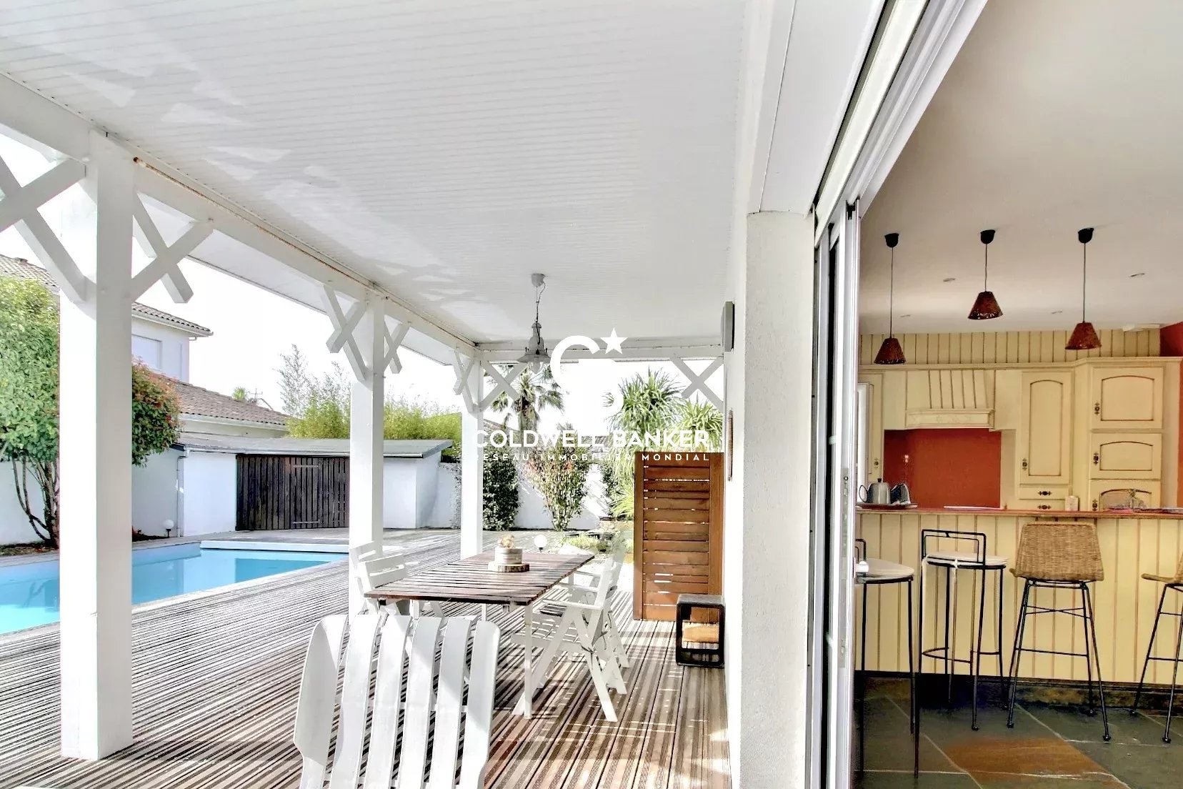 Coldwell Banker Immoba Realty vous propose, à quelques pas du centre-ville, de la gare et du littoral, une élégante villa de plain-pied nichée au sein d’un lotissement privé et sécurisé. Développant environ 147 m², cette propriété parfaitement entretenue offre une vaste pièce de vie baignée de lumière, ouverte sur la terrasse et la piscine, au cœur d’un jardin paysager soigneusement structuré. Les volumes fluides et l’ouverture permanente vers l’extérieur invitent à une vie dedans-dehors, rythmée par la douceur du littoral. L’espace nuit accueille trois chambres dont une suite parentale avec salle de bains et dressing. Un bureau pouvant faire office de chambre supplémentaire permet une capacité d’accueil jusqu’à 8 couchages. Garage aménageable, prestations soignées, environnement résidentiel recherché. Une adresse confidentielle pour un art de vivre alliant élégance, confort et proximité immédiate des commodités. Charges 1000 €/an co propriété Venez découvrir ce produit rare sur le secteur de GUJAN DPE : 112 kWhEP/m².an (C)/GES :3 kg CO2/m².an (A) Estimation du cout annuel en énergie : entre 950 € et 1330 € Pour plus de renseignements, contactez Anastasiya GRALLIEN Agent Commercial Indépendant N° RSAC 881094221 N° RCP 127100479 Retrouvez tous nos biens sur IMMOBA Les informations sur les risques auxquels ce bien est exposé sont disponibles sur demande ou sur le site Géorisques :www.georisques.gouv.fr