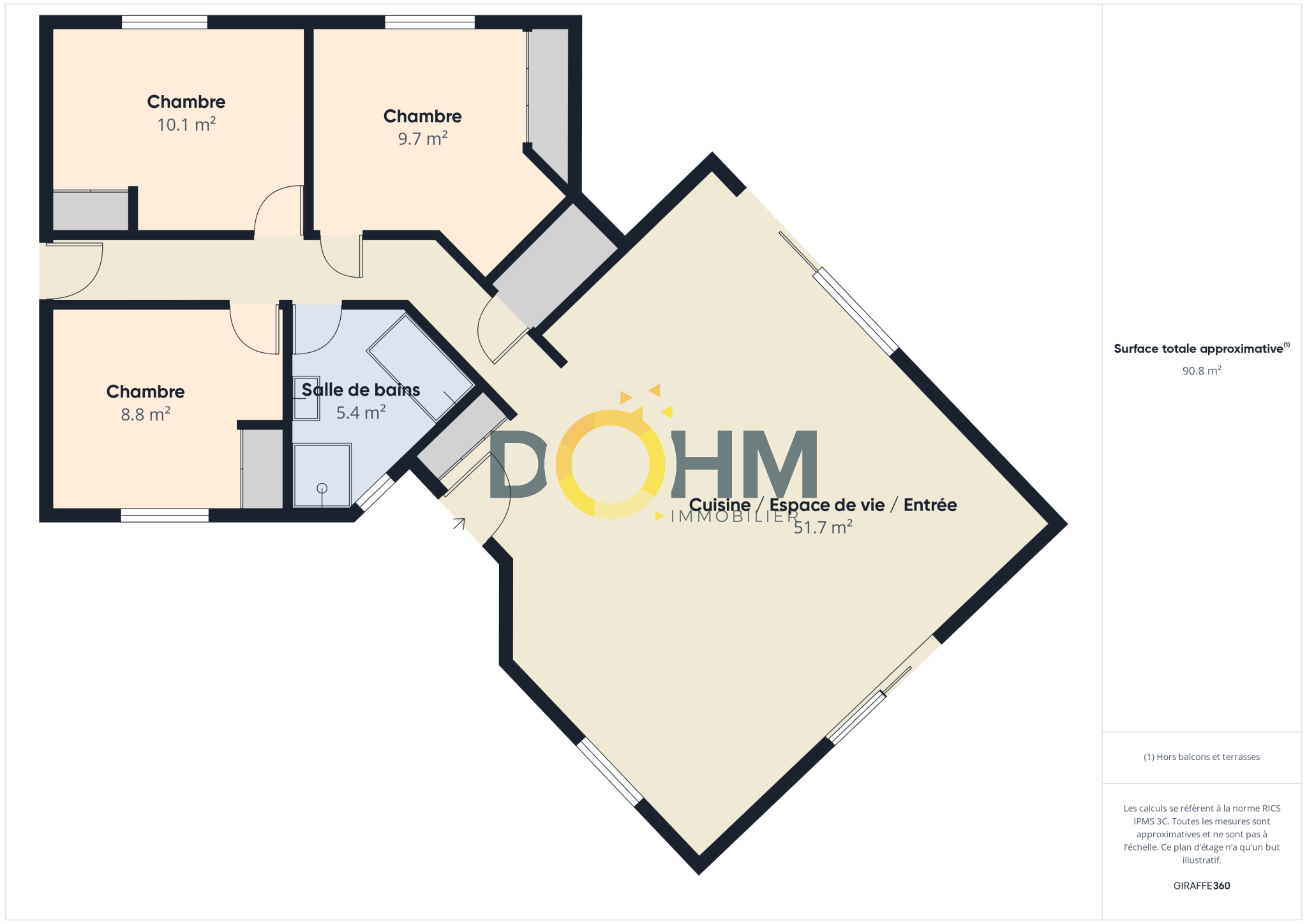 Dès l'entrée, vous découvrez une belle pièce de vie de 46,49 m2, lumineuse et conviviale, parfaite pour partager des moments en famille ou entre amis.