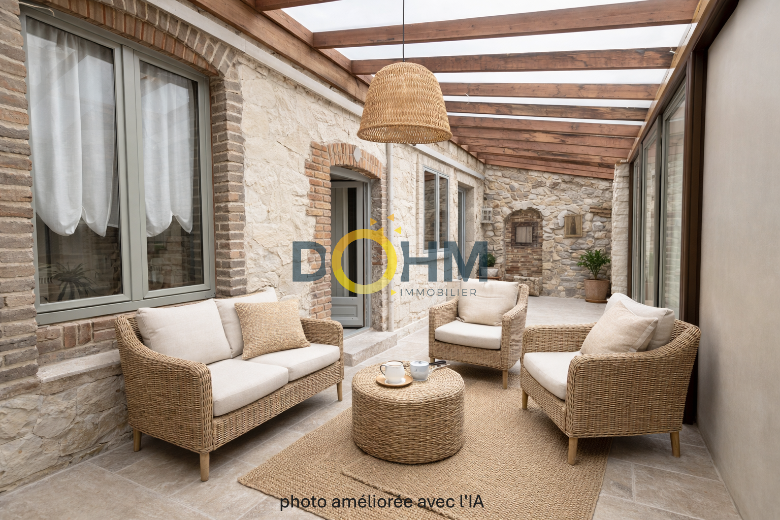 Édifiée sur caves, la maison bénéficie d'une véranda lumineuse de 25 m2 avec cuisine d'été ainsi que d'une terrasse de 35 m2 arborée bénéficiant d'une belle exposition, idéale pour profiter de l'extérieur en toute tranquillité.
