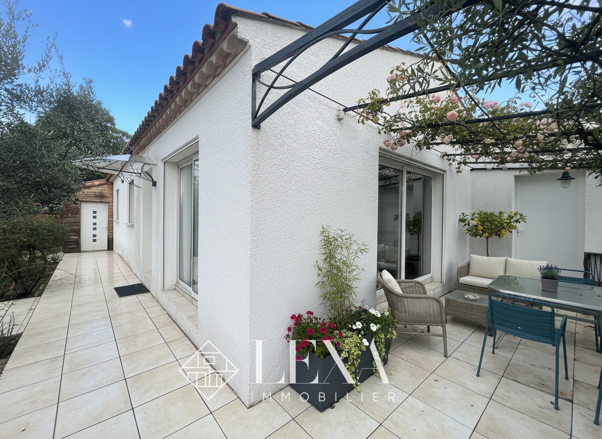 Belle maison de plain-pied, lumineuse et en excellent état, à deux pas des commerces dans un village proche de Montferrier. Elle offre une grand espace de vie ouvert sur 3 faces avec une cuisine récente avec accès direct au jardin, 3 chambres, une vaste salle de bains. A l'exterieur : piscine, grandes terrasses en bois et garage avec potentiel d'aménagement. Confort, luminosité et cadre de vie assuré - il ne restera qu'à poser vos valises !