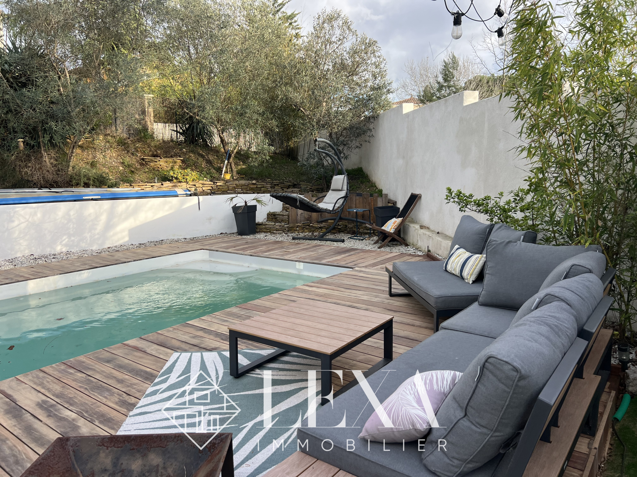 À l'extérieur, vous profiterez d'un véritable espace de détente avec une magnifique piscine et de grandes terrasses en ipé, idéales pour les beaux jours. L'exposition sud-ouest assure un ensoleillement optimal, notamment en été.