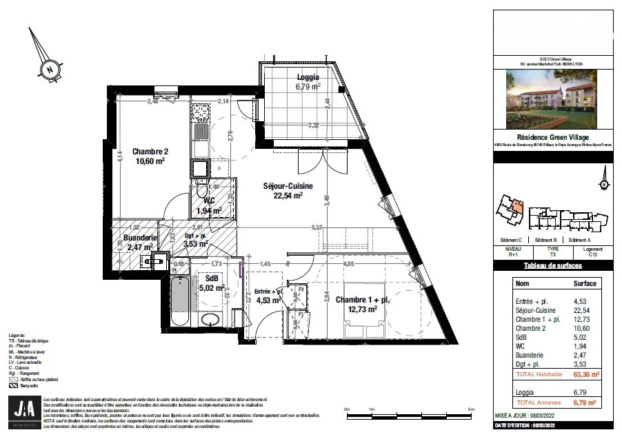 Rillieux-la-Pape : Dans une résidence de 2024, sécurisée et profitant de beaux espaces arborés, venez découvrir ce charmant T3, soumis au dispositif PINEL. Situé au 1er étage sur 2 avec ascenseur, cet appartement se compose d'une pièce de vie de 22.54m² très lumineuse, avec cuisine aménagée et équipée (meuble évier, plaque de cuisson, hotte, four, éléments hauts et bas), le tout donnant sur un balcon de 6.79m² au calme sur les jardins de la copropriété. Il dispose également de deux chambres confortables, l'une de 12,73 m² avec placard intégré, et la seconde de 10,60 m². Vous bénéficierez enfin d'une buanderie, d'une salle de bains avec baignoire et d'un WC séparé. Vous profiterez d'un stationnement privatif en sous-sol, inclus dans la location. Vous retrouverez la ligne de bus S8 à quelques minutes à pieds, à l'arrêt "Vancia Centre", ainsi que de nombreux commerces à proximité (Carrefour, Intermarché, Action, Castorama, Boucheries André, etc). Disponible début avril, à visiter sans tarder ! Merci de nous contacter pour plus d'informations et déposer votre candidature sur ce bien. Loyer hors charges : 764€ Provisions pour charges : 90€ (incluant l'eau froide, l'entretien des parties communes et de la chaudière) Dépôt de garantie : 764€ Honoraires d'agence : 823€ (633€ pour Visite, constitution du dossier, et rédaction du bail, et 190€ pour la réalisation de l'état des lieux) Les informations sur les risques auxquels ce bien est exposé sont disponibles sur le site Géorisques : georisques.gouv.fr