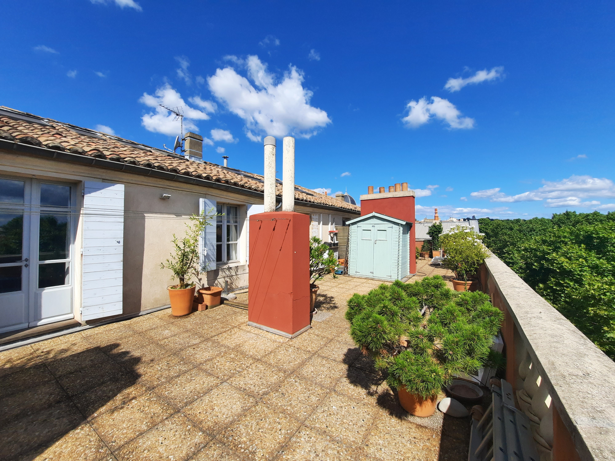 Son exceptionnelle terrasse aménagée et sans vis à vis avoisinant les 100 m2 offre la possibilité de créer plusieurs espaces et notamment de rangement pour bricoler . Bénefiçiant de points de vue uniques , noyée dans la verdure , elle offre la sensation de vivre dans une maison posée sur les toits !