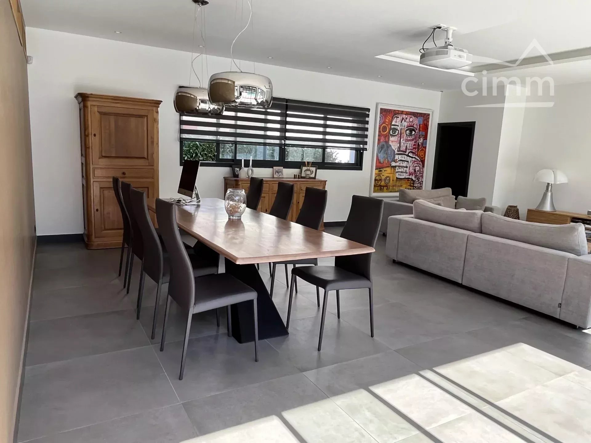 Très belle maison contemporaine située dans un secteur calme et résidentiel. Elle vous séduira par ses prestations haut de gamme et ses volumes généreux et lumineux. Le rez-de-jardin est composé d’une entrée avec un grand dressing, d’un spacieux séjour et d’une grande cuisine entièrement équipée donnant accès à la terrasse et à la piscine, d’une buanderie, d’une grande suite parentale avec salle de bain (douche à l’italienne, baignoire balnéo, wc, grand dressing), d’une chambre avec salle d’eau et rangements et d’un wc séparé. L’étage est composé de trois chambres avec rangements dont une avec salle d’eau, d’une salle de bain (douche à l’italienne et baignoire), d’un espace bureau/salon et d’un wc séparé. Toutes les pièces de l’étage sont orientées côté piscine. Grand garage de 80 m² (3 voitures) plus stationnement en extérieur. Piscine avec volet électrique et chauffée par pompe à chaleur. Fermetures aluminium motorisées. Terrain entièrement clos. Les points forts de cette villa sont sa situation, la modernité et les prestations haut-de-gamme dédiées au confort et à la sécurité. Contacter Florence REJASSE (EI) Agent Commercial au [Coordonnées masquées] Inscrite au RSAC de CLERMONT-FERRAND 525102745