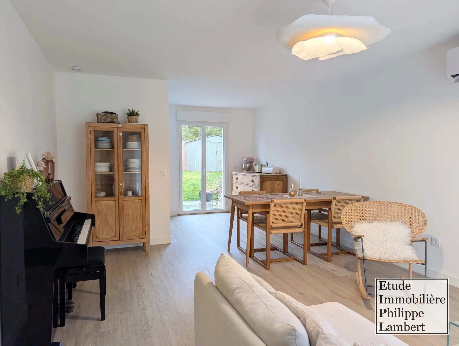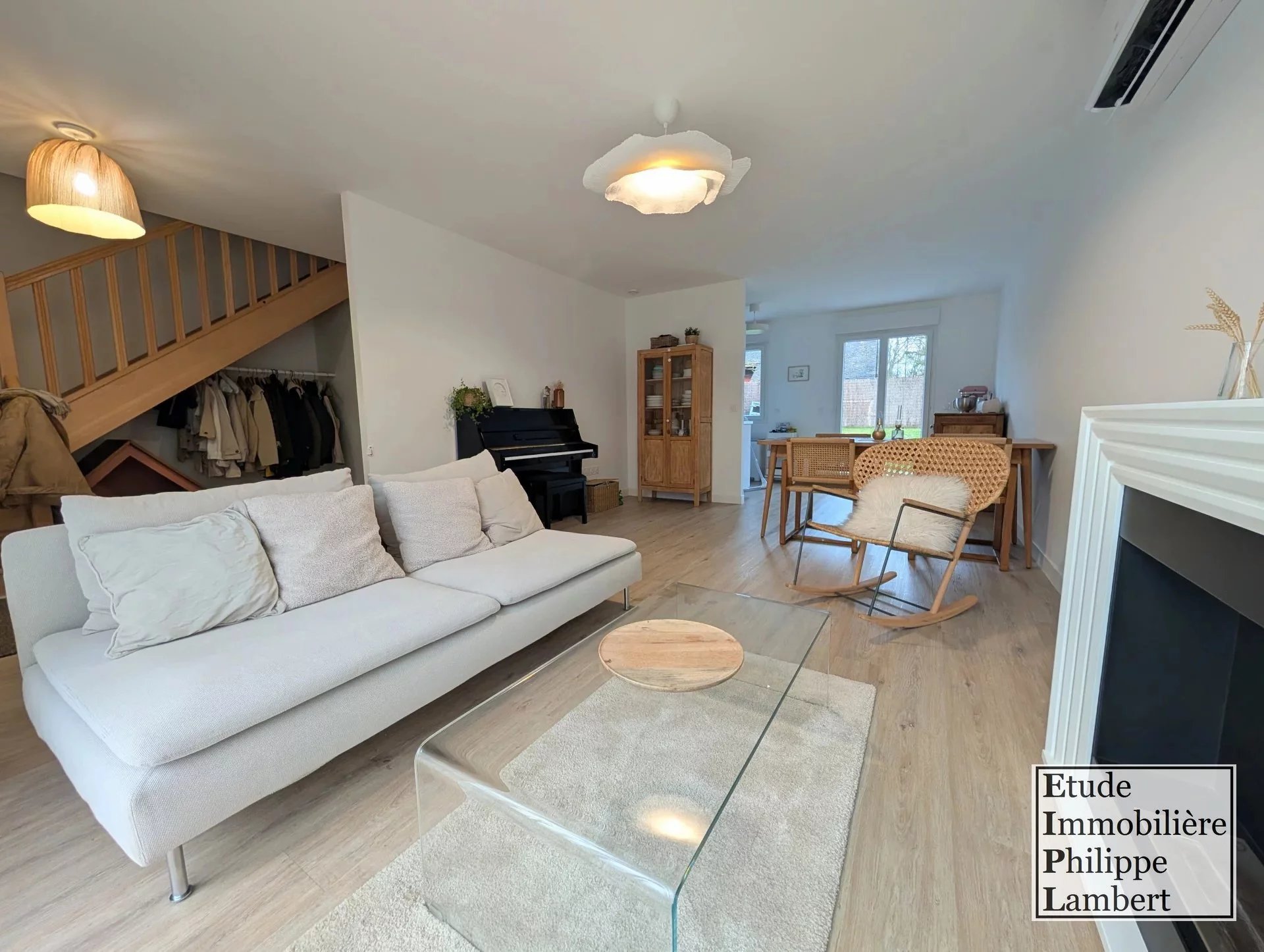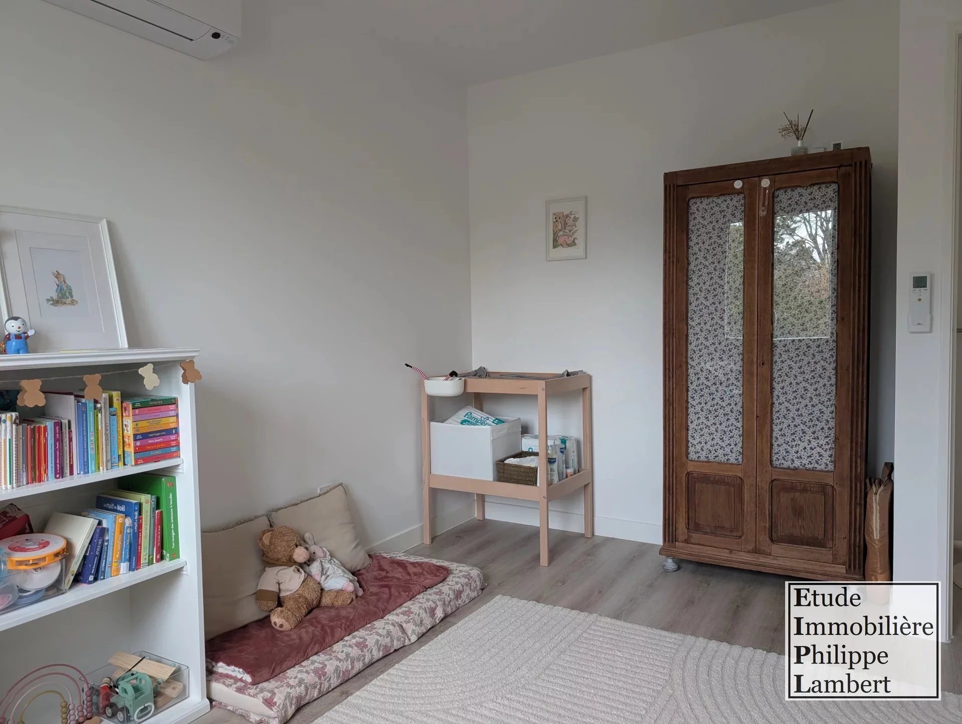 Idéalement située (écoles, commerces et forêt à pied en une dizaine de minutes), maison construite en 2025 en excellent état. Le rez-de-chaussée accueille une entrée desservant une salle de douche avec toilettes, une buanderie-cellier et une grande pièce de vie bénéficiant d'une double exposition. La cuisine est aménagée et équipée (four, plaque de cuisson, hotte aspirante, lave-vaisselle). L'étage abrite trois chambres, une spacieuse salle de bains avec toilettes et fenêtre. Le jardin est clos et comporte espaces engazonnés, une terrasse et aire de stationnement. Excellentes performances énergétiques (DPE classe A) grâce à son isolation, le chauffage par pompe à chaleur et le ballon thermodynamique. Portail et volets roulants électriques. Logement raccordé à la fibre.