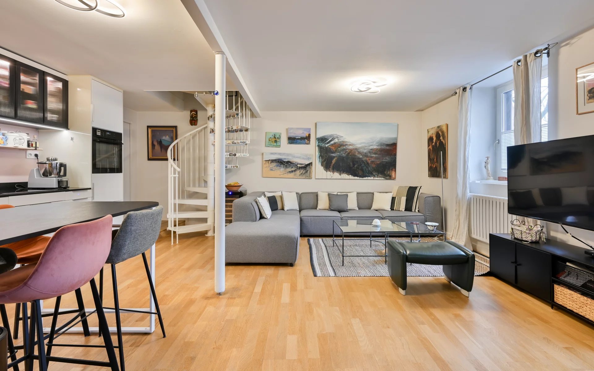 Centralym vous propose en exclusivité ce charmant duplex situé dans le très recherché quartier d’Ainay, au cœur du 2ᵉ arrondissement de Lyon. D’une surface de 70,52 m² Carrez, il prend place dans un bel immeuble ancien datant de 1850. Entièrement rénové en 2018 avec des matériaux de qualité, il offre un cadre de vie chaleureux, dans un esprit « maison de ville ». Au rez-de-chaussée, vous découvrez une agréable pièce de vie avec pierres apparentes, comprenant un espace salon convivial, une cuisine ouverte entièrement équipée, une buanderie ainsi que des toilettes séparées. À l’étage, l’espace nuit se compose de deux chambres, d’un dressing sur mesure et d’une salle de bain avec toilettes et fenêtre. Le bien a conservé tout le cachet de l’ancien avec ses pierres apparentes et ses plafonds à la française, tout en bénéficiant d’une rénovation contemporaine soignée et d’un aménagement parfaitement optimisé. Il profite également d’une agréable vue sur un parc. Une grande cave voûtée d’environ 25 m² complète ce bien. Localisation idéale à Ainay, à proximité immédiate des commerces, restaurants, transports en commun, métro, gare de Perrache et de toutes les commodités du centre de Lyon. Chers confrères, si vous avez des acquéreurs, n’hésitez pas à me contacter. Pour plus d’informations ou organiser une visite privée, contactez Jean de Jouffrey au 07 88 76 30 78.
