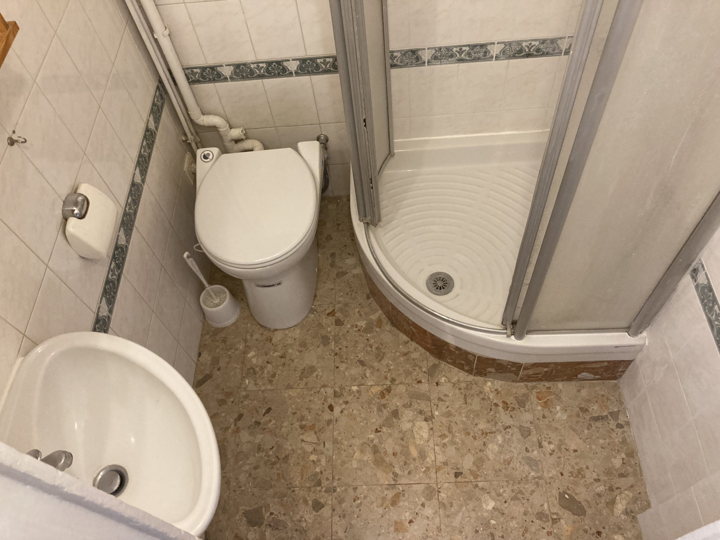 Il se compose d'une entrée, d'une pièce de vie, d'une cuisine séparée et d'une salle de douche avec WC. Marbre au sol et parquet dans la pièce de vie. Vous avez également un cagibi sur le palier. Porte blindée et interphone.