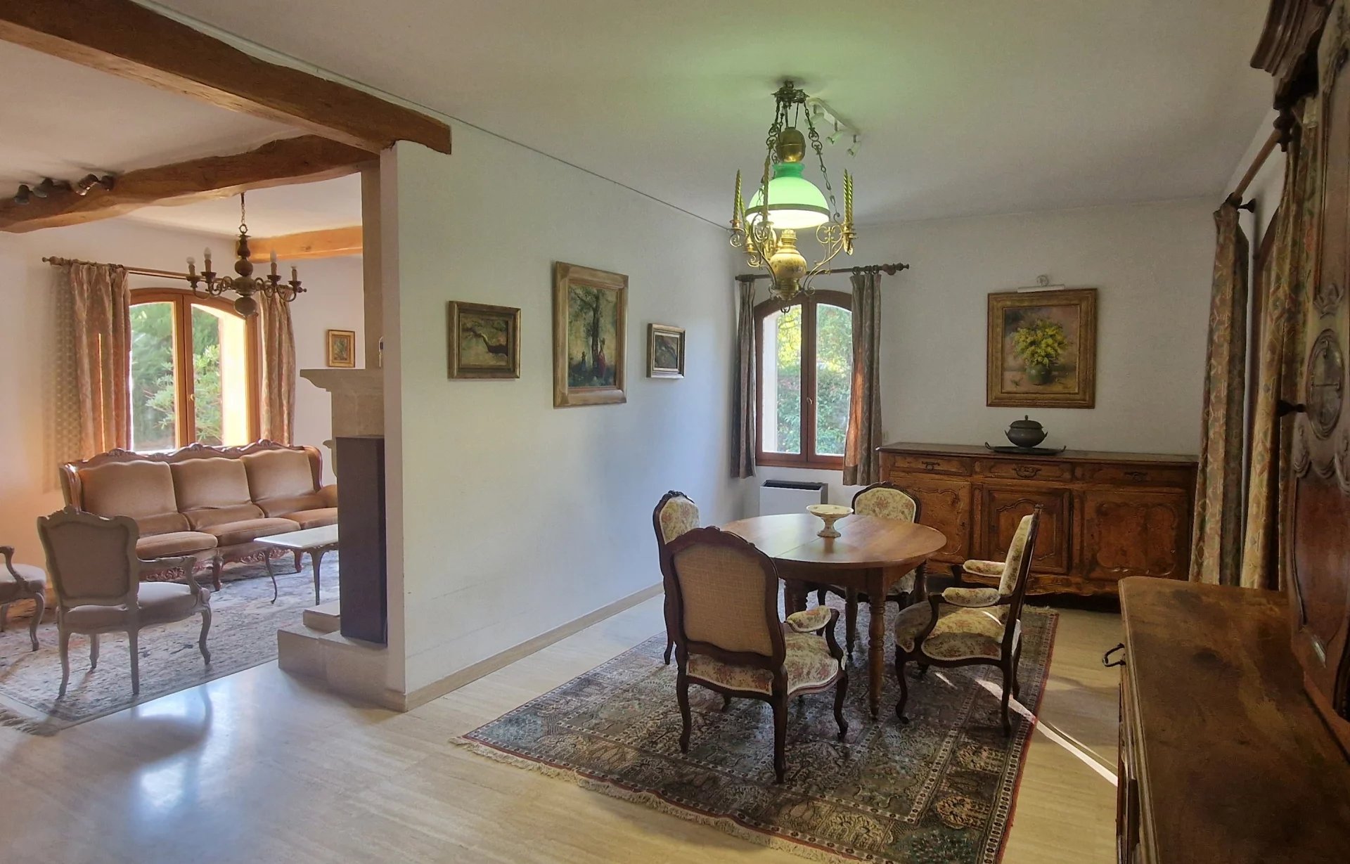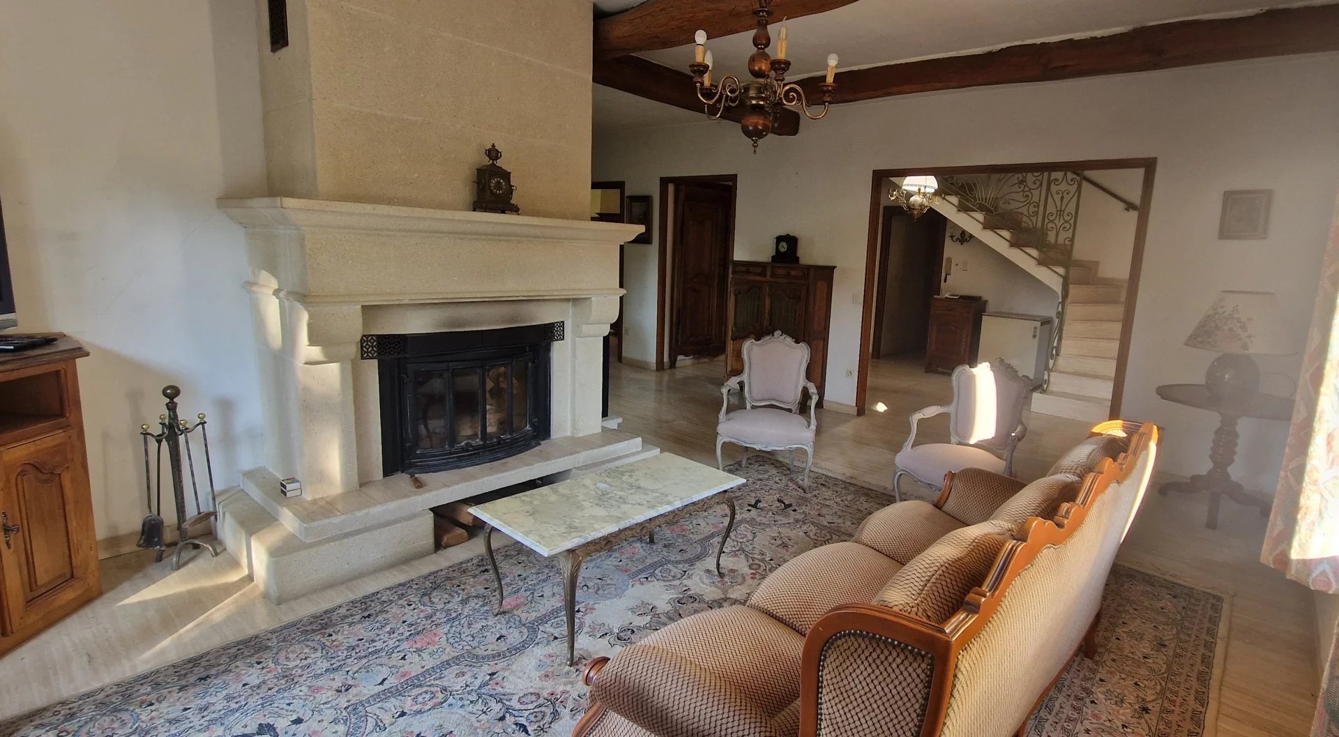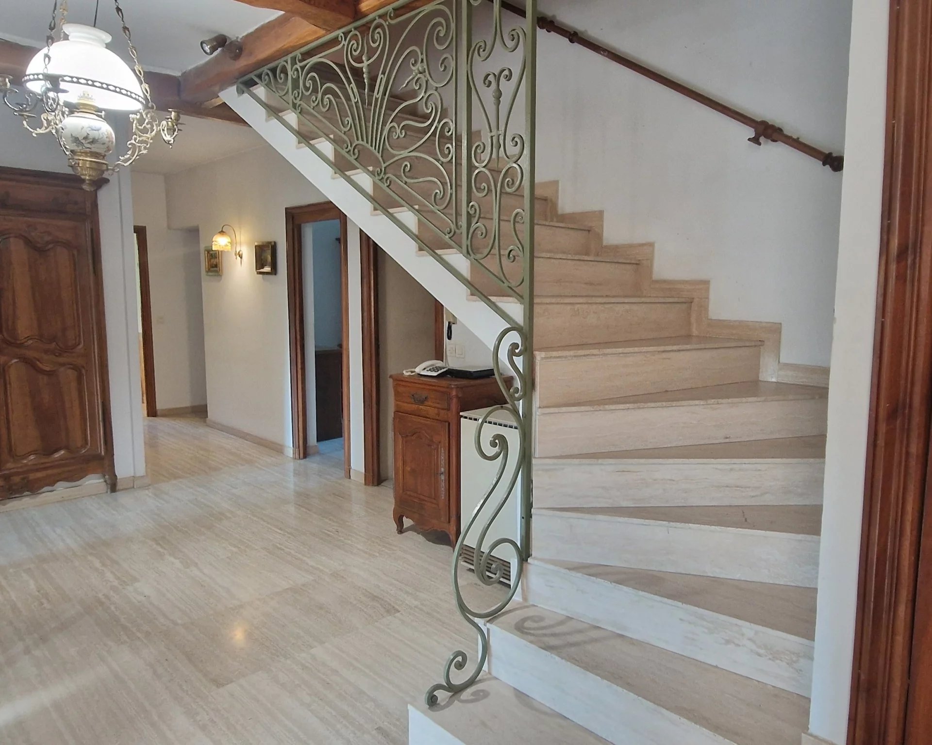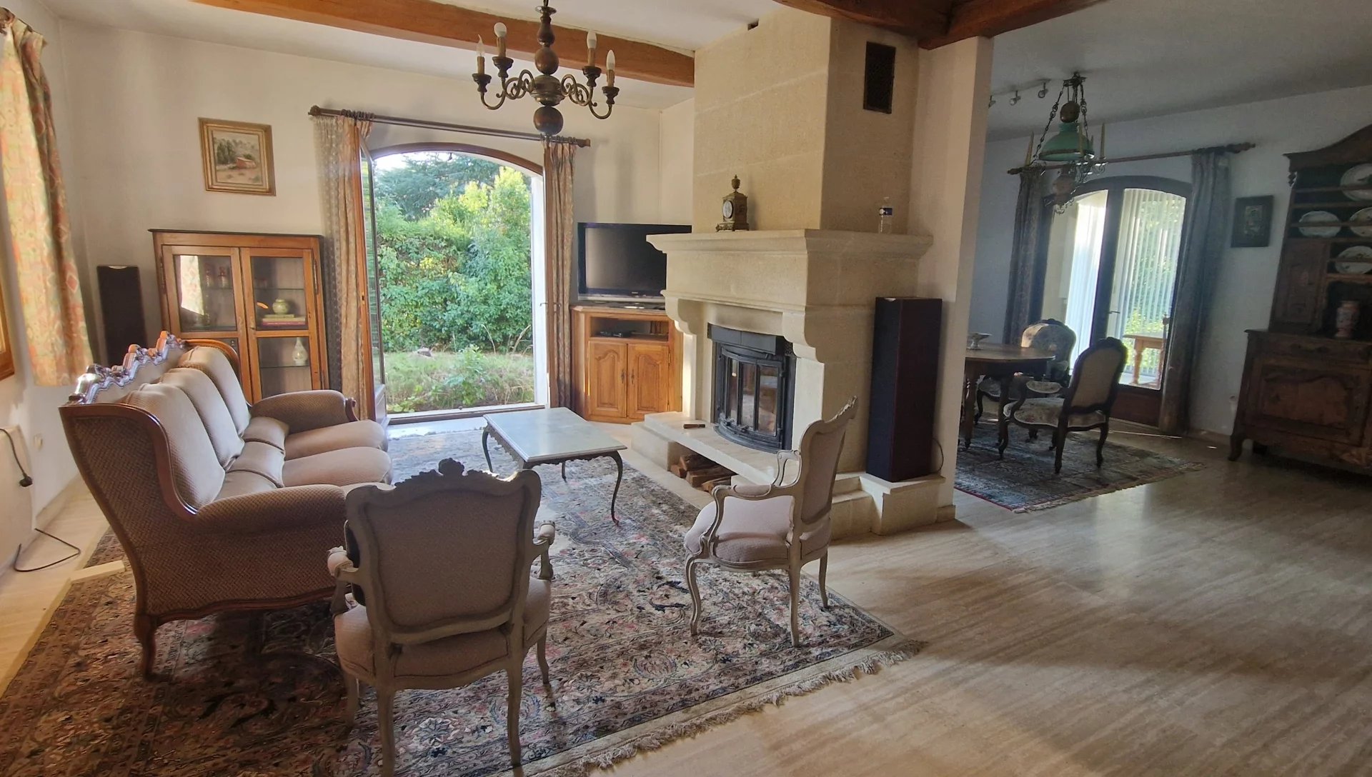 Sur superbe terrain arboré de 3580m2, belle villa aux prestations de qualité et avec de beaux volumes composée d'un grand hall d'entrée, d'un séjour double avec cheminée, grande cuisine, véranda, suite parentale avec salle de bain, 2eme chambre, wc. A l'étage : grande chambre ouvrant sur solarium, salle de bain, wc + accès à un grenier de 32m2. Garage + mezzanine. Elle est reliée au tout à l'égout.