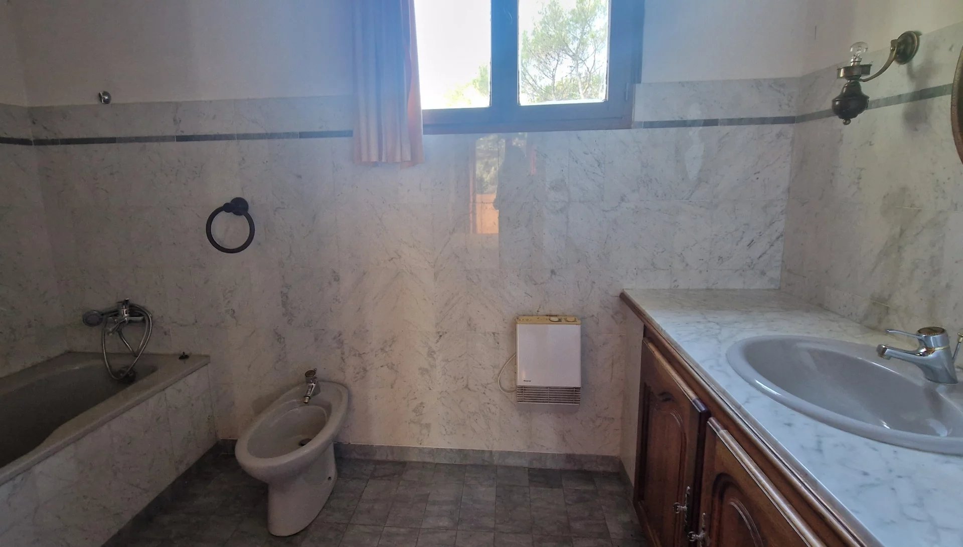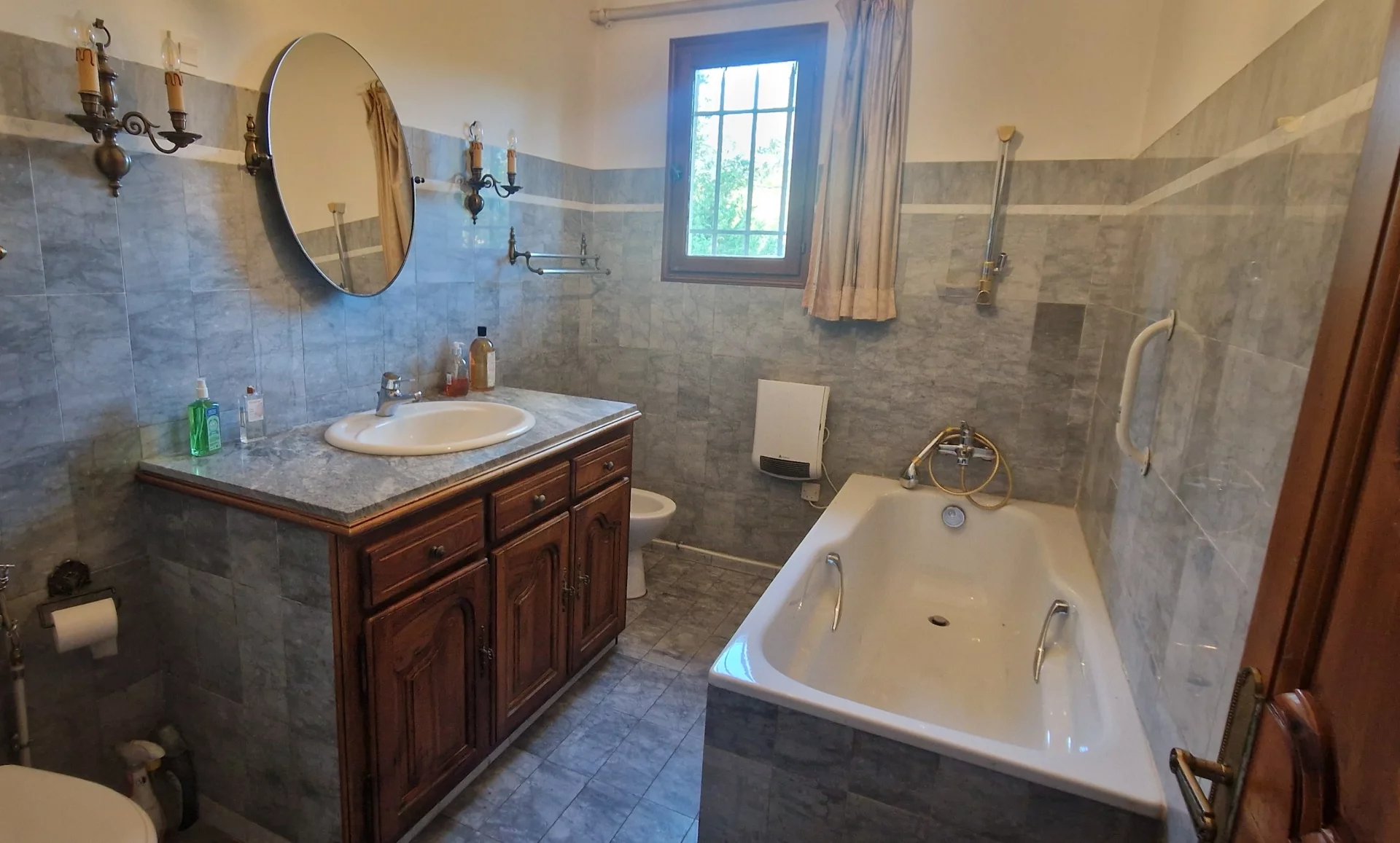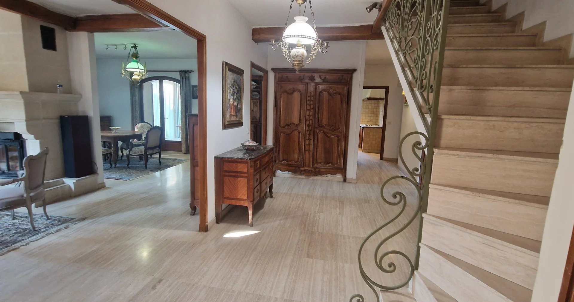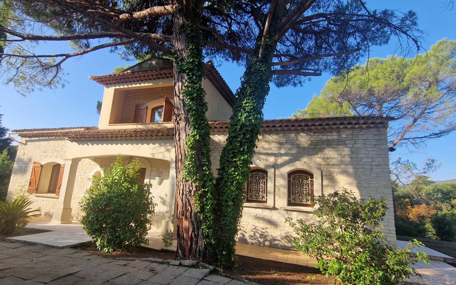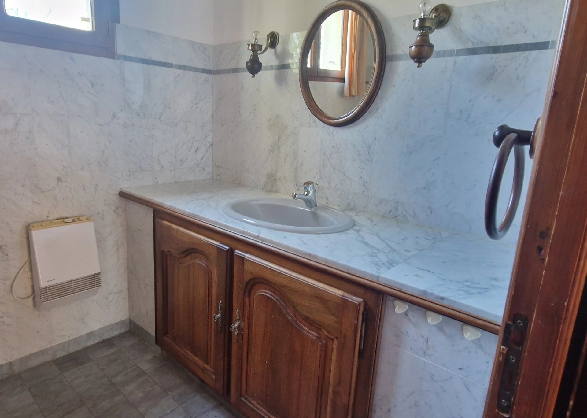 Sur superbe terrain arboré de 3580m2, belle villa aux prestations de qualité et avec de beaux volumes composée d'un grand hall d'entrée, d'un séjour double avec cheminée, grande cuisine, véranda, suite parentale avec salle de bain, 2eme chambre, wc. A l'étage : grande chambre ouvrant sur solarium, salle de bain, wc + accès à un grenier de 32m2. Garage + mezzanine. Elle est reliée au tout à l'égout.