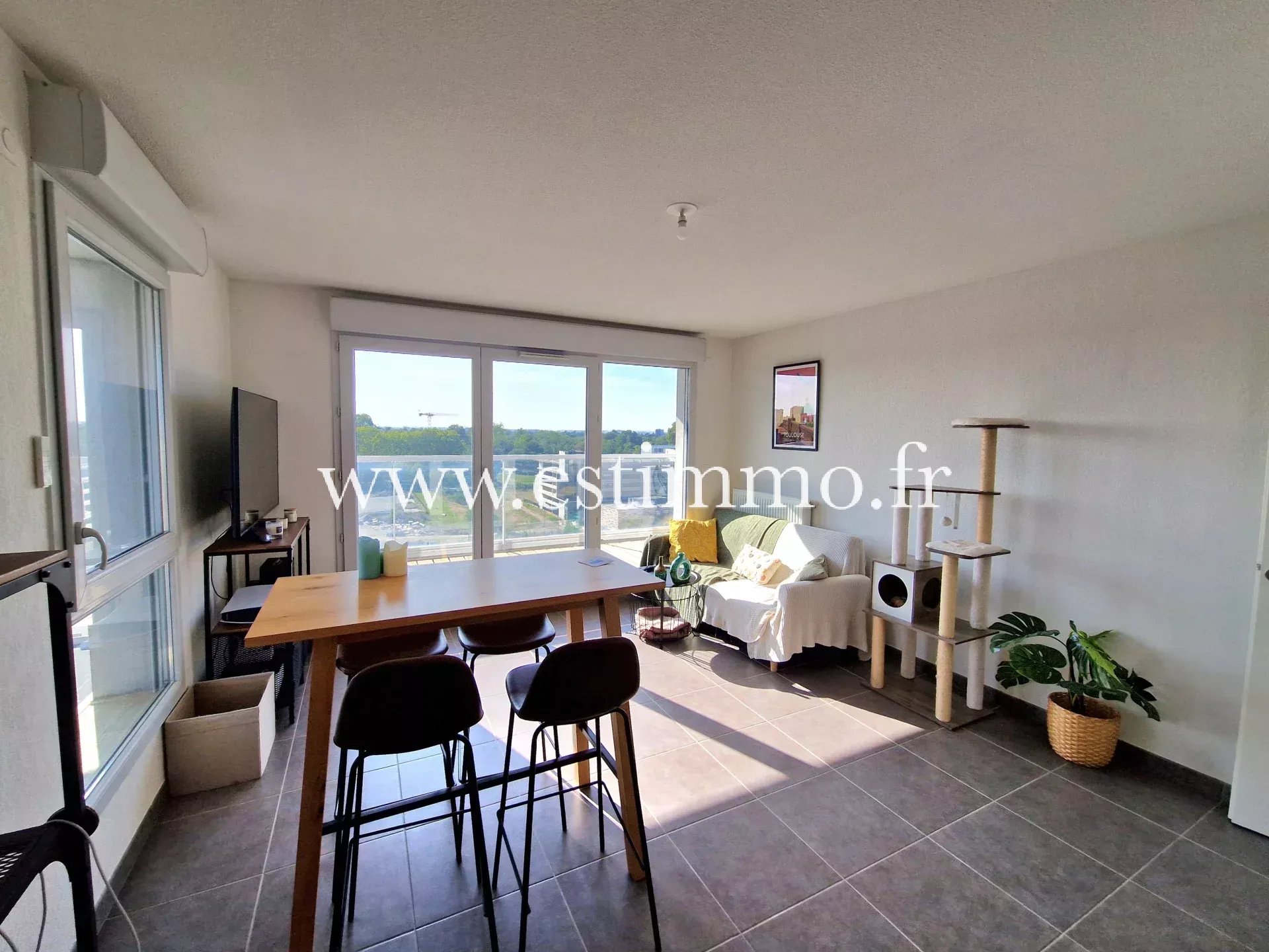Toulouse, Saint Cyprien, au cœur de l'écoquartier de la Cartoucherie et au dernier étage d'une résidence de 2019, confortable T2 avec vue panoramique. Une séjour avec coin cuisine s'ouvre sur une terrasse de 8 m2 environ commune avec la chambre. Cette dernière, confortable, dispose d'un grand placard aménagé. Une salle de bains complète avec fenêtre. Un emplacement pour voiture en sous-sol. Transports et commerces à proximité. Copropriété de 77 appartements, aucune procédure en cours. Le montant des charges annuelles 1 136 euros. ESTIMMO 0561544305. www.estimmo.fr
