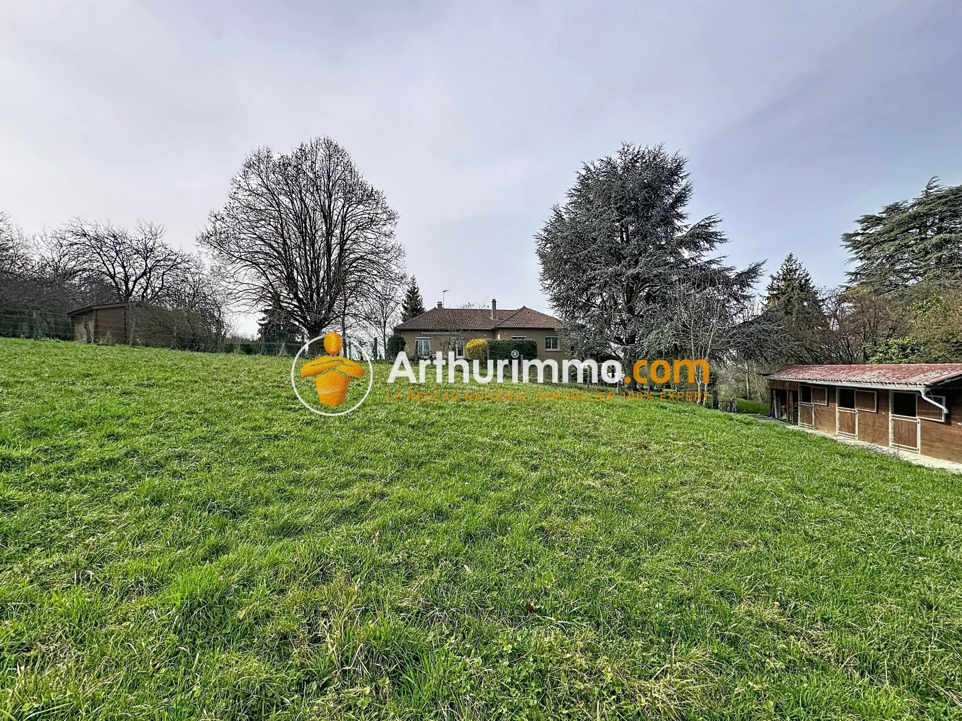 Située à Saint-Didier-de-la-Tour, dans un environnement naturel préservé et à l’abri des regards, cette propriété développe environ 108 m² habitables et bénéficie d’un cadre de vie privilégié au cœur d’un parc d’environ 4,8 hectares. La maison s’organise autour d’une pièce de vie traversante d’environ 35 m², lumineuse grâce à son orientation Est/Ouest et équipée d’une cheminée à foyer fermé. De larges baies vitrées permettent un accès direct aux extérieurs. La cuisine indépendante, moderne et équipée, ouvre également sur la terrasse et le jardin. L’espace nuit comprend trois chambres avec rangements, une salle de bains avec double vasque ainsi que des toilettes séparées avec lave-mains (possibilité de créer une salle d’eau supplémentaire). Un demi sous-sol d’environ 56 m² complète l’ensemble et comprend notamment un garage double avec porte motorisée, un atelier et une buanderie. Un appentis permet également le stationnement de plusieurs véhicules. À l’extérieur, la propriété bénéficie d’un parc arboré d’environ 4,8 hectares, offrant un environnement calme et dégagé sur la campagne environnante. Deux terrasses en bois exposées Est et Ouest permettent de profiter des extérieurs à différents moments de la journée. Au cœur du terrain, un chalet indépendant d’environ 19 m² actuellement aménagé en espace détente/lecture peut également convenir pour un bureau, un espace de télétravail ou une petite dépendance selon les projets. La propriété dispose également d’installations équestres, comprenant une écurie extérieure avec 3 boxes (3 x 3,5 m) et espaces de stockage, ouvrant directement sur les prés. L’ensemble est particulièrement adapté pour l’accueil de chevaux ou autres animaux, dans un environnement naturel privilégié. Un bois d’environ 1 hectare complète la propriété. Le bien reste facilement accessible, situé à proximité de La Tour-du-Pin, à quelques minutes de l’autoroute A43, des gares de La Tour-du-Pin et Saint-André-le-Gaz, ainsi que d’un arrêt de bus à proximité. Un bien rare, idéal pour celles et ceux qui recherchent tranquillité, espace et un cadre adapté à la vie avec des animaux. Certaines photographies présentées dans cette annonce peuvent avoir fait l’objet d’une retouche ou d’une mise en situation réalisée à l’aide d’outils d’intelligence artificielle, à titre d’illustration. Informations complémentaires et organisation de visite sur demande.