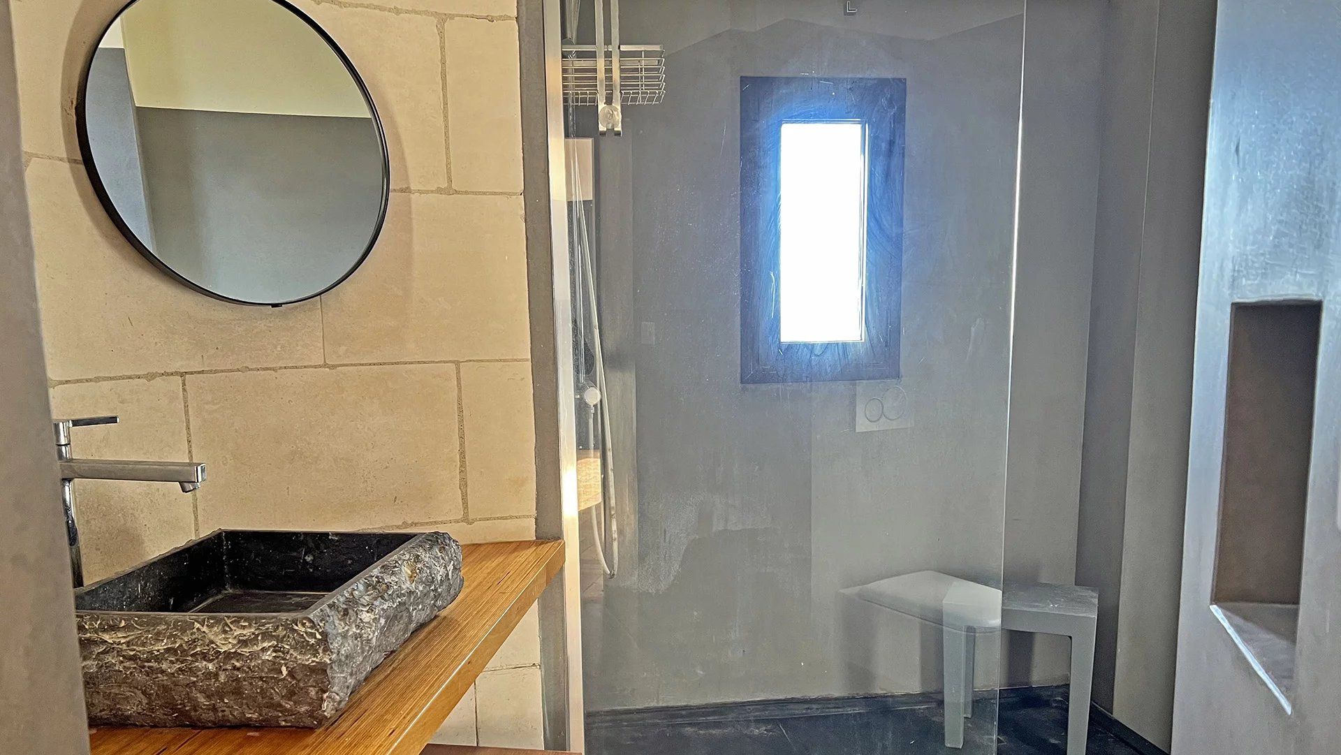 Baigné de lumière, il s’organise autour d’un séjour ouvert sur l’horizon, complété par trois chambres, une salle de bains avec WC également tournée vers la mer, et une cuisine indépendante fonctionnelle.