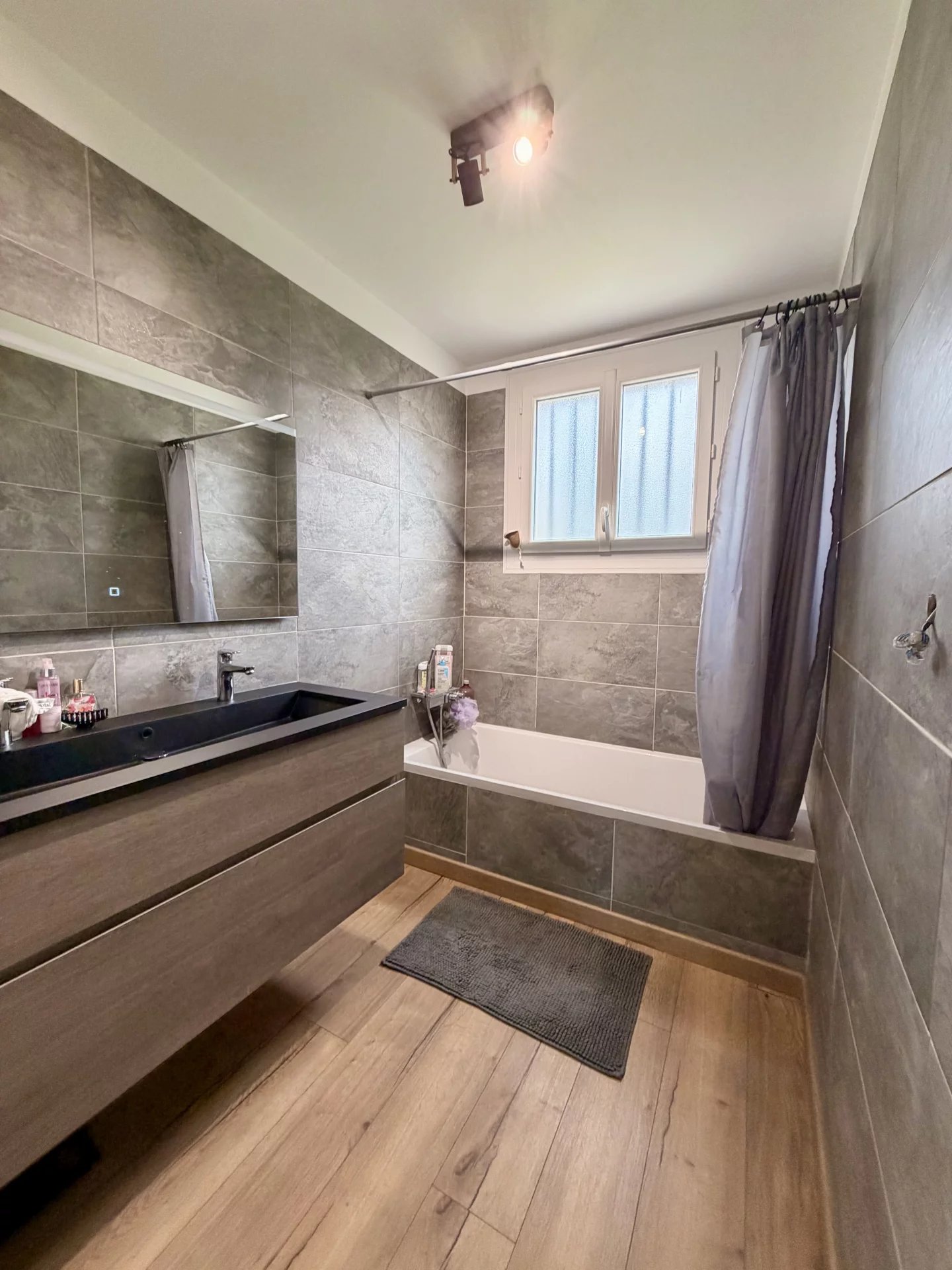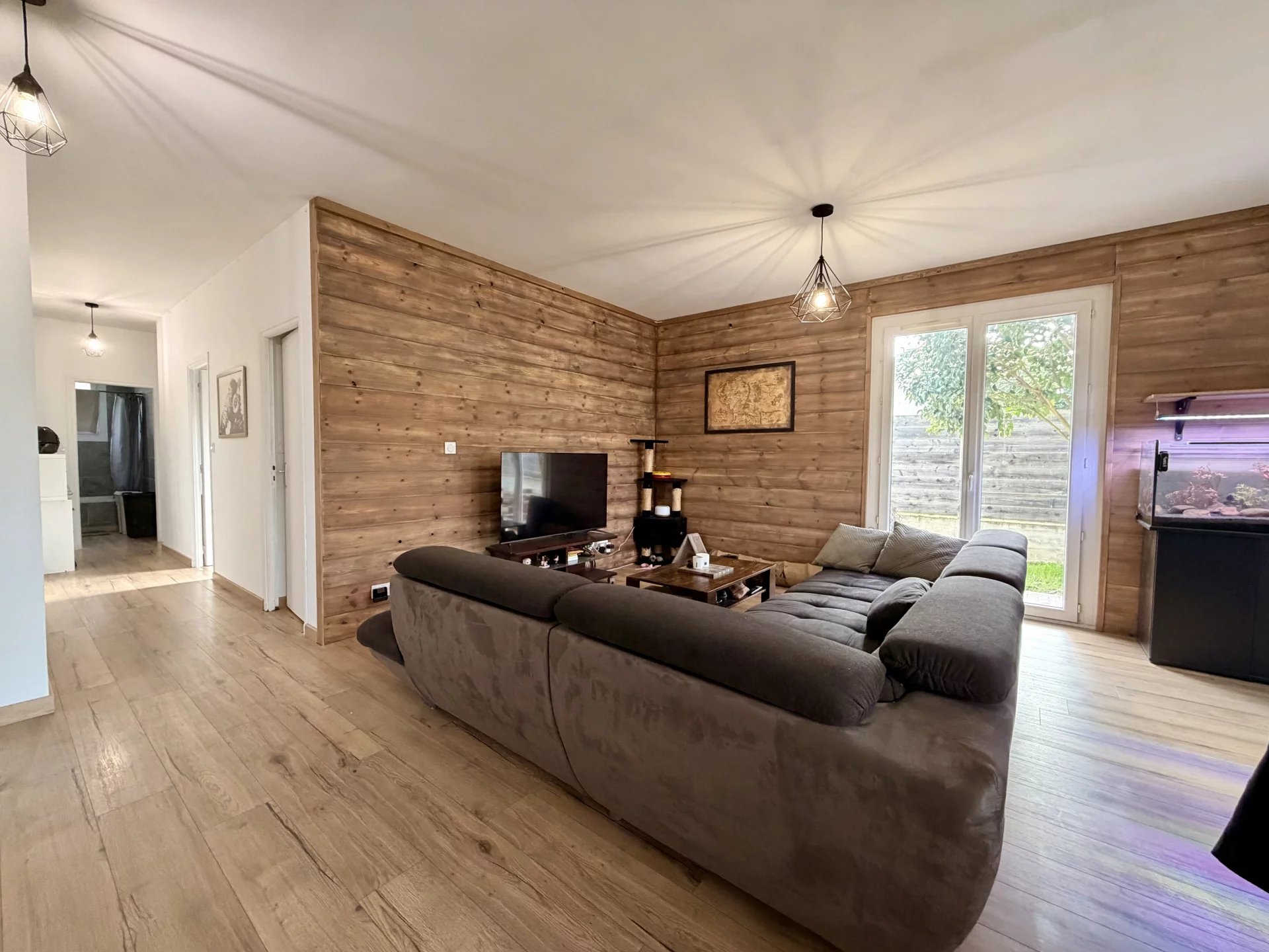 Située dans un environnement calme, à proximité du centre, belle villa de plain-pied rénovée intérieurement, construite en 1974, développant 94,56 m2 habitables.