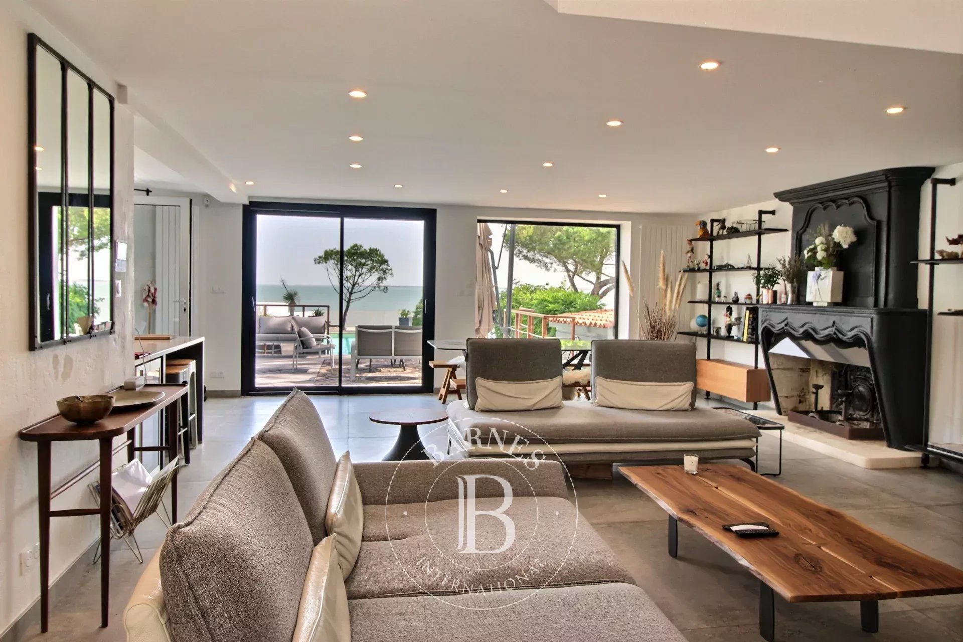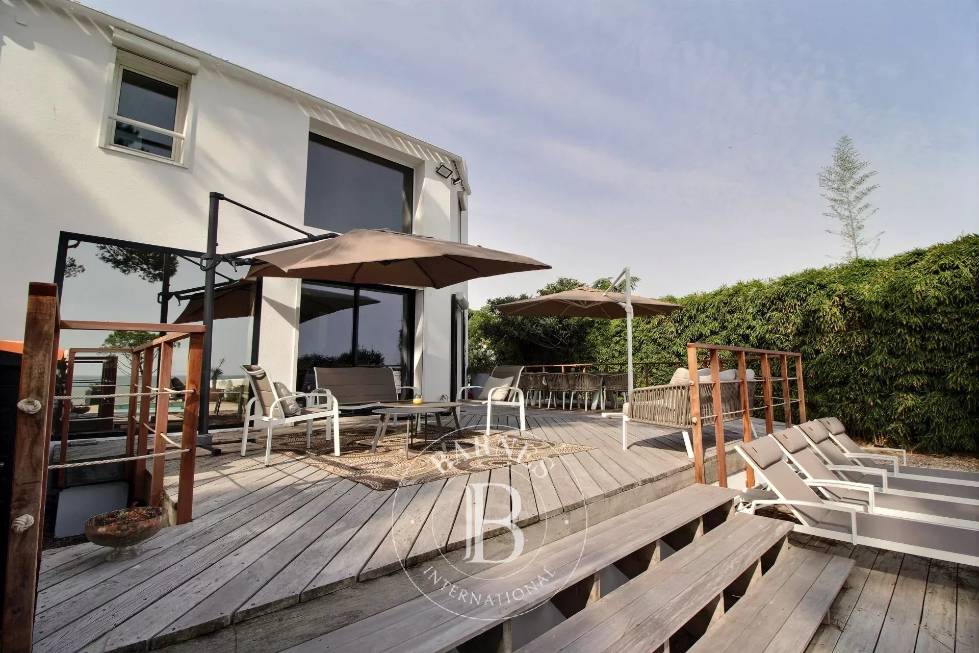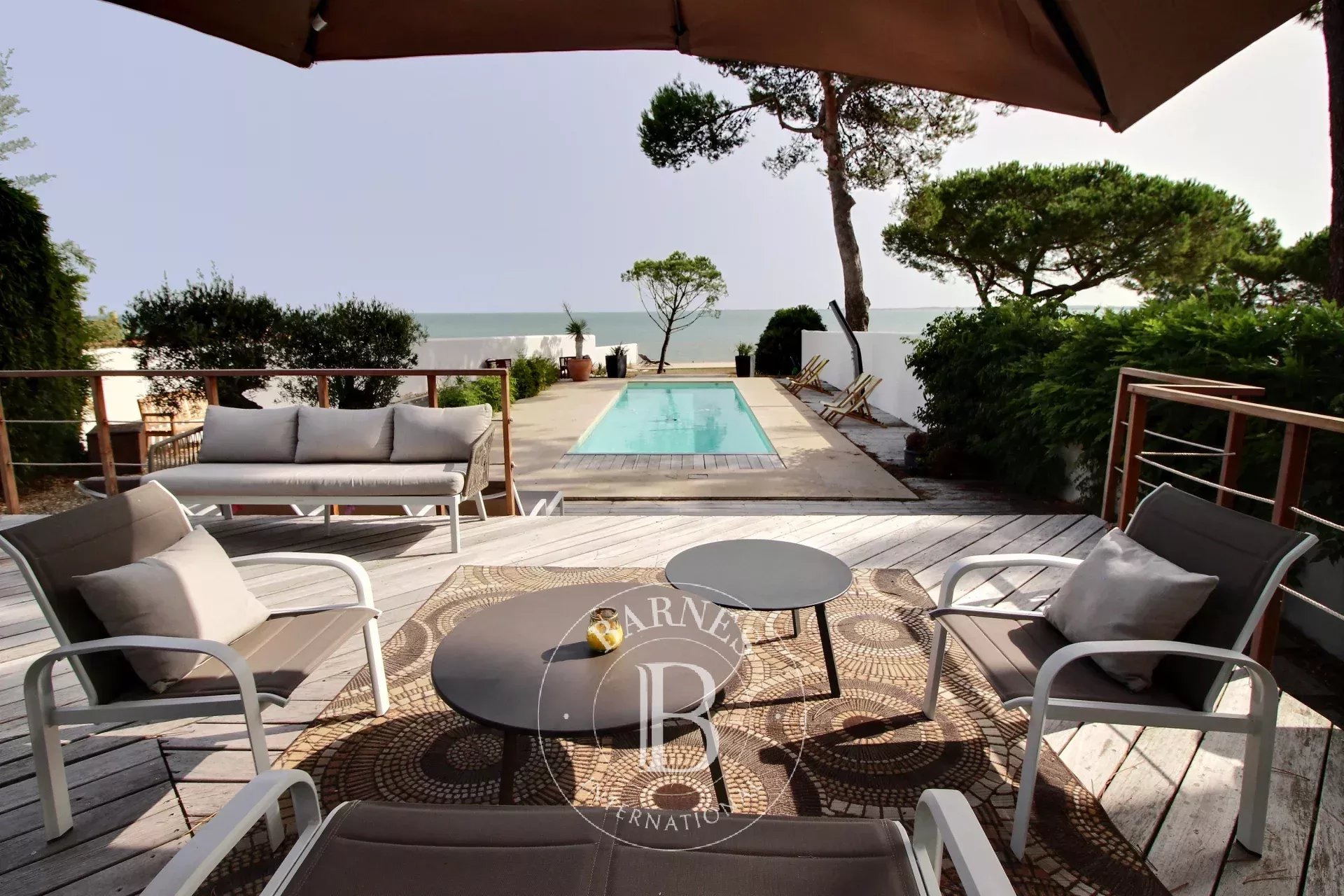 Ile de Ré, maison à vendre, face à la mer, sur plus de 1200 m2 de parcelle, cette maison se compose d'une grande pièce de vie avec cheminée et vue sur l'océan, cuisine ouverte aménagée et équipée, 3 chambres en rez-de-chaussée avec 2 salles d'eau, une seconde pièce de vie avec une cave. À l'étage, une suite parentale avec salle de bains et dressing avec une pleine vue mer. Jardin avec piscine et terrasse. 2 garages et stationnements.