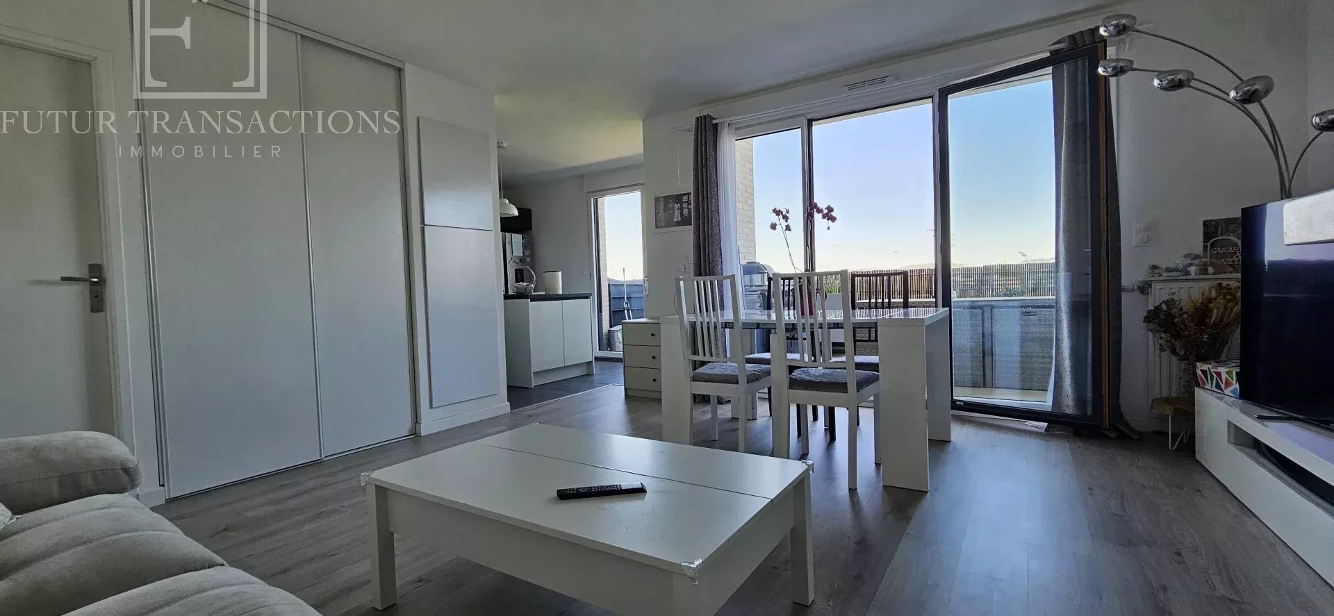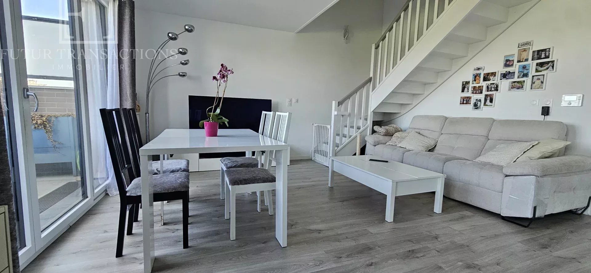 Situé au sein d’une résidence récente de 2020, ce duplex de 74 m² avec terrasse offre un cadre de vie moderne et fonctionnel. A seulement 900 mètres de la gare du centre, situé au 5ᵉ et 6ᵉ étages, il bénéficie d’une belle luminosité et d’un agencement bien pensé. Le séjour, confortable et lumineux, se prolonge par une terrasse de 14,34 m² offrant une vue dégagée. La cuisine ouverte, entièrement équipée et dotée d’un îlot central, s’intègre parfaitement à l’espace de vie et permet un accès direct à l’extérieur. A l’étage, l’espace nuit comprend deux chambres et une salle de bains avec WC, tandis qu’une salle d’eau avec WC est disponible au niveau principal, apportant un vrai confort d’usage au quotidien. Situé dans la résidence Affinity, ce bien aux prestations actuelles dispose d’une place de parking intérieur. Conformément à l’article L.561-5 du Code monétaire et financier, une pièce d’identité sera demandée avant toute visite.