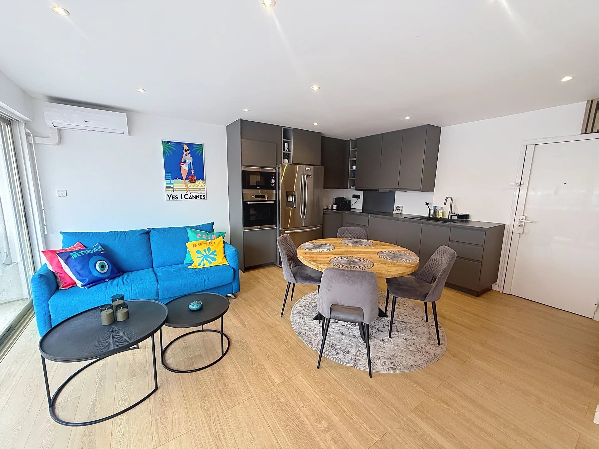 Dans le secteur très recherché de Palm Beach, à deux pas des plages et à 15 minutes du Palais des Festival, Magnifique 2 pièces de 46 m2 avec terrasse Sud/Sud-Ouest entièrement rénové, équipé et meublé avec goût, clés en main pour une habitation principale ou en location saisonnière. Composé d’un grand séjour donnant sur terrasse avec cuisine ouverte équipée d'un réfrigérateur américain, un couloir avec rangements, une chambre avec placards donnant sur terrasse, une salle d'eau, toilettes séparées avec lave main. Les informations sur les risques géologiques auxquels la commune est exposée sont disponibles sur le site Géorisques: georisques.gouv.fr ville de Cannes Résidence sécurisée avec gardien, rue calme en sens unique. Parking privatif au 1er sous-sol
