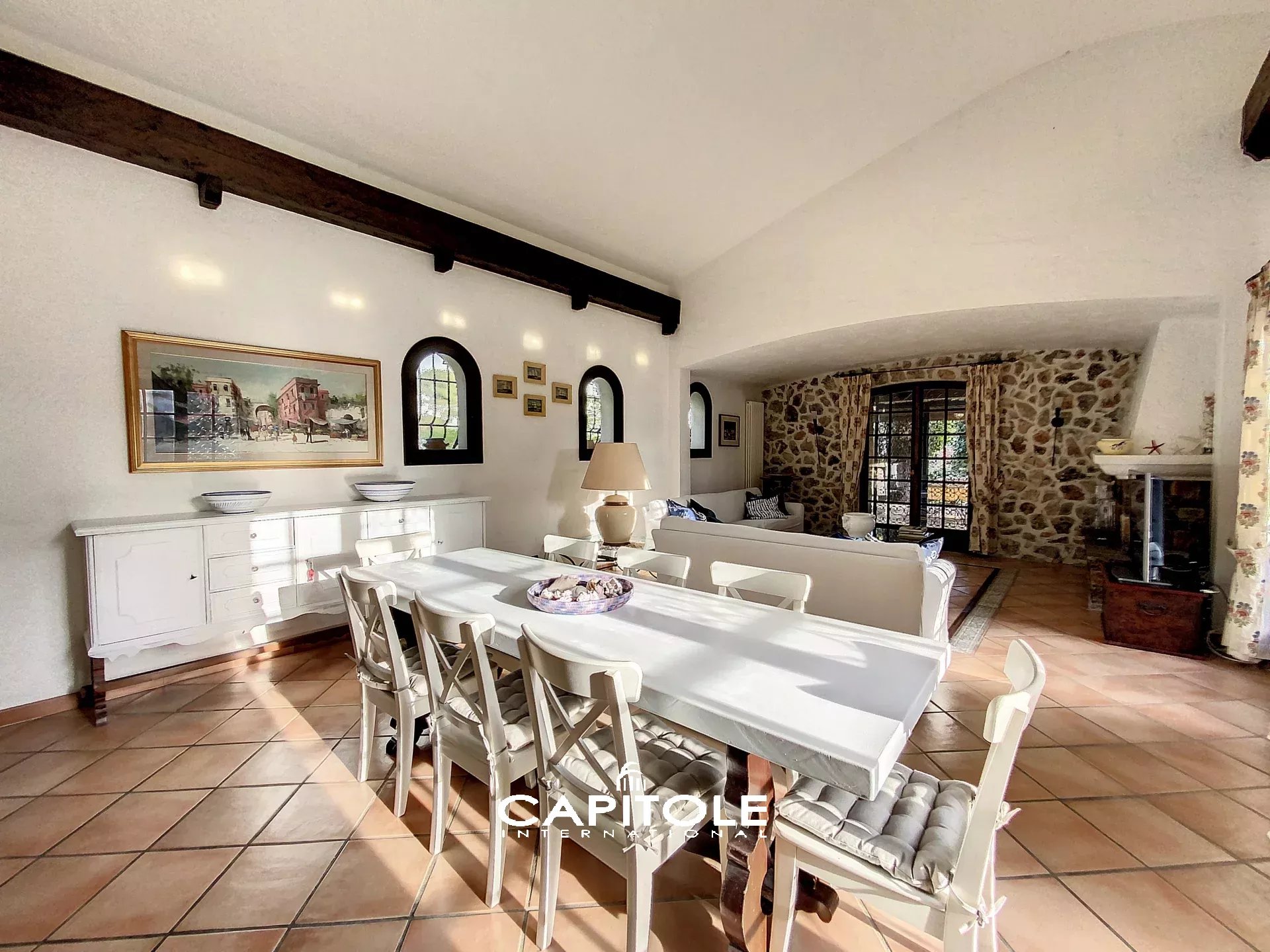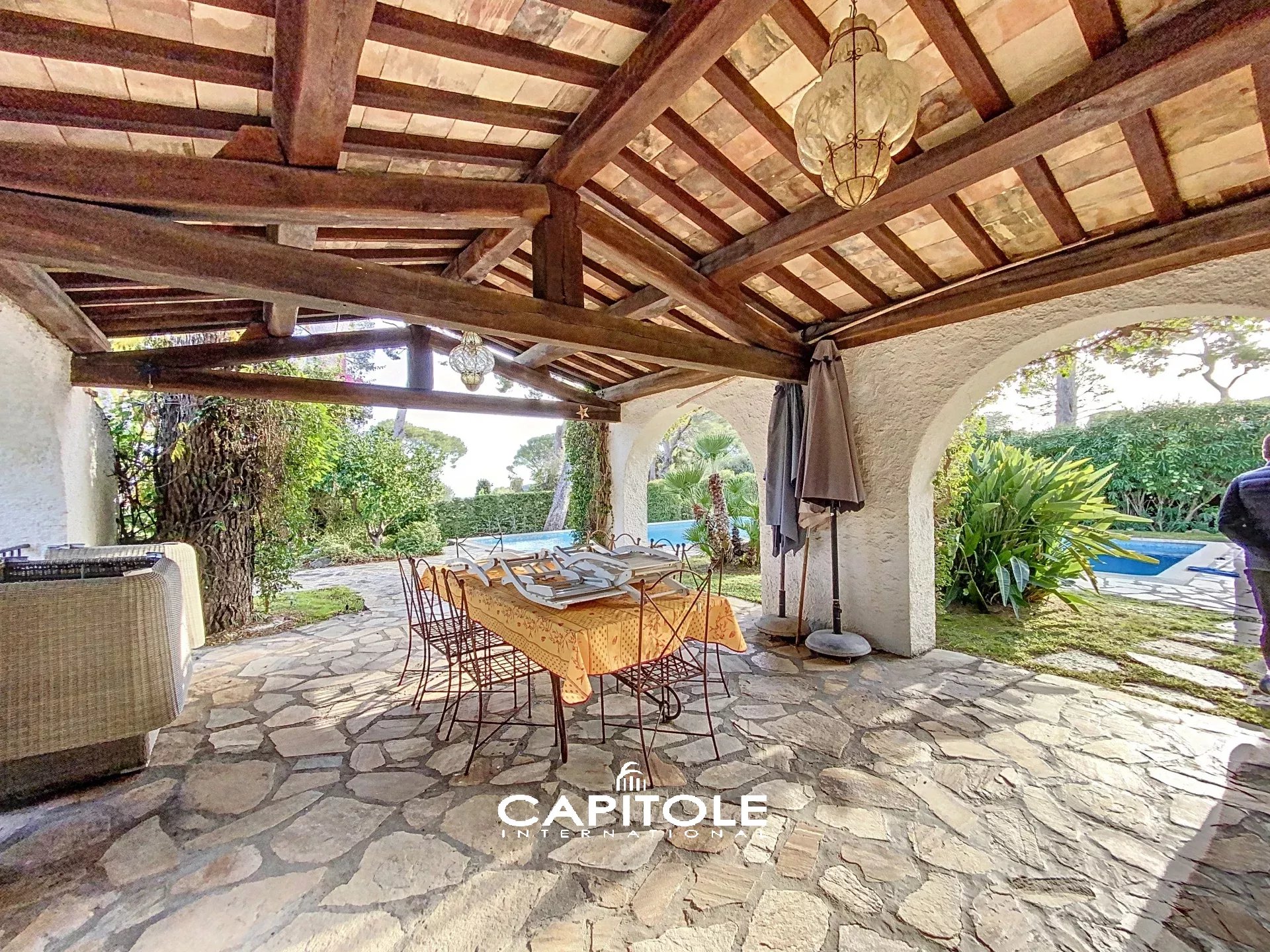 Magnifique bastide en pierre de 248 m², située à proximité des commerces et des plages de la Garoupe, sur un terrain plat de 1580 m² avec piscine. Le jardin est aménagé avec des arbres fruitiers. La villa se compose: Au rez-de-chaussée, d'un grand hall d'entrée, un spacieux séjour/salle à manger, une cuisine équipée, des toilettes invités, 2 chambres en suite, dont la chambre de maître. Le premier étage comprend 2 autres chambres avec salle de bain en suite. Chaque chambre ouvre sur un balcon bénéficiant d'une très belle vue mer. En entresol, un salon tv, 2 chambres, une salle de bain/toilettes, une buanderie et le local technique. La villa offre un magnifique espace extérieur comprenant une terrasse couverte, un espace barbecue et de spacieuses terrasses. Grand garage. Réf : MM1655VM