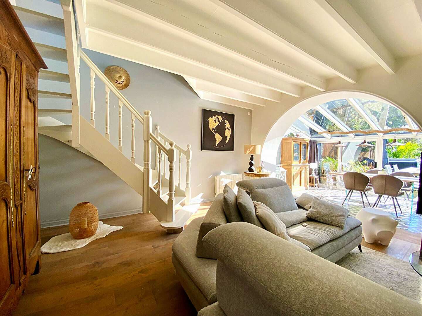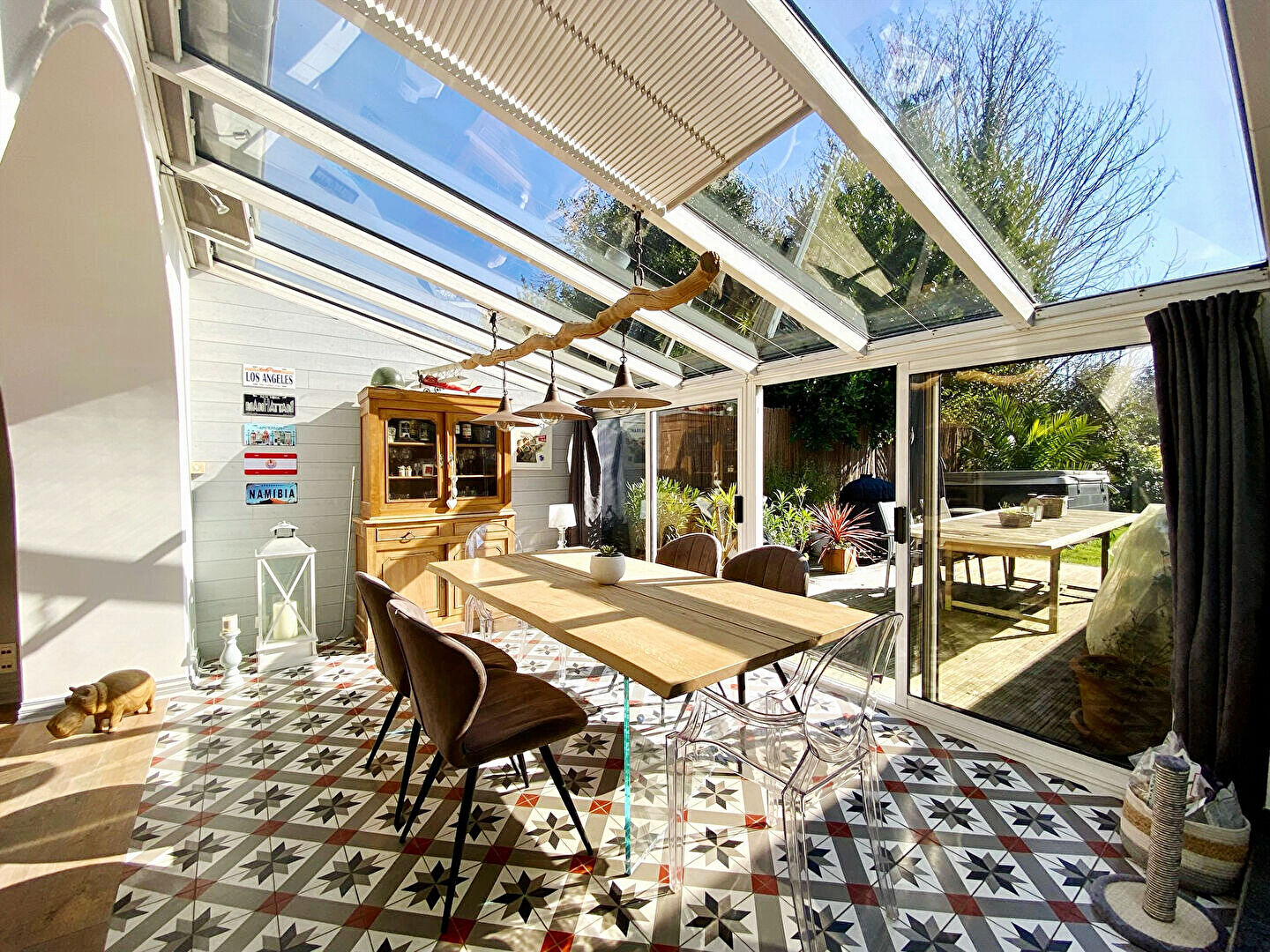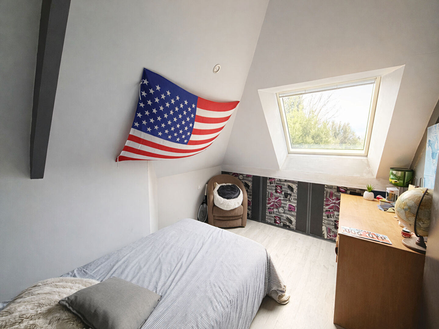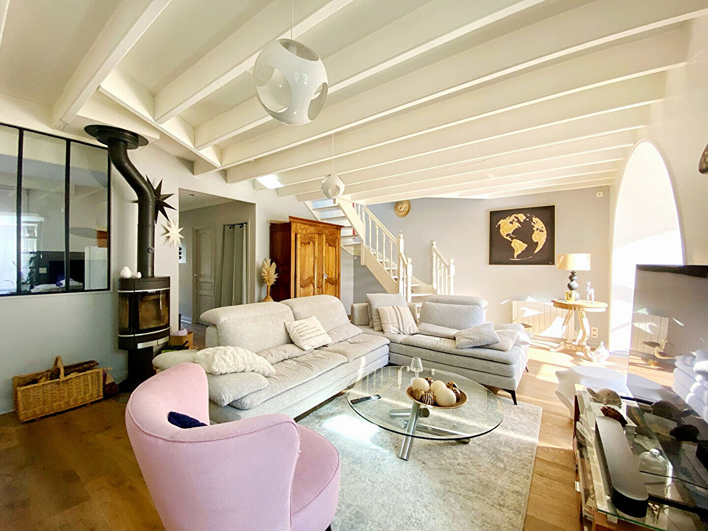 A VENDRE, SAINT-BRIEUC, quartier SAINTE THERESE, maison en pierre de 1927 sur 682m2 de terrain clos avec jacuzzi comprenant en rez de chaussée: entrée, wc lave mains, chambre avec salle d'eau privative, salon/séjour (59m2) avec poêle ouvrant sur terrasse et jardin au S/O, cuisine us équipée, bureau, suite parentale avec salle de bains, wc et placards, buanderie; au 1er : palier avec placard, 1 chambre (possibilité 2), salle de bains avec wc et placard, chauffage électrique par le sol , abri jardin, parking extérieur. TRÉS BON ÉTAT, CALME et ENSOLEILLÉE. (3.88 % honoraires TTC à la charge de l'acquéreur.)