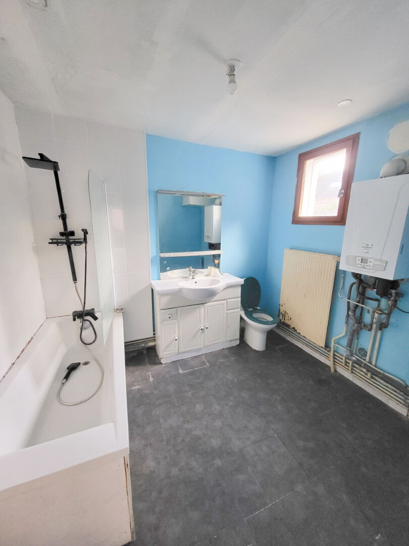 Exclusivité Agence !!! Ent. sur couloir, un salon-sal. à m. (34m²), une cuisine avec meubles, une sdb avec wc. 1er étage : Palier, 3 chs 2ème étage : une chambre. C/C gaz condensation, terrasse, terrain en pelouse. habitable de suite Prix : 69 000 euros charges vendeurs