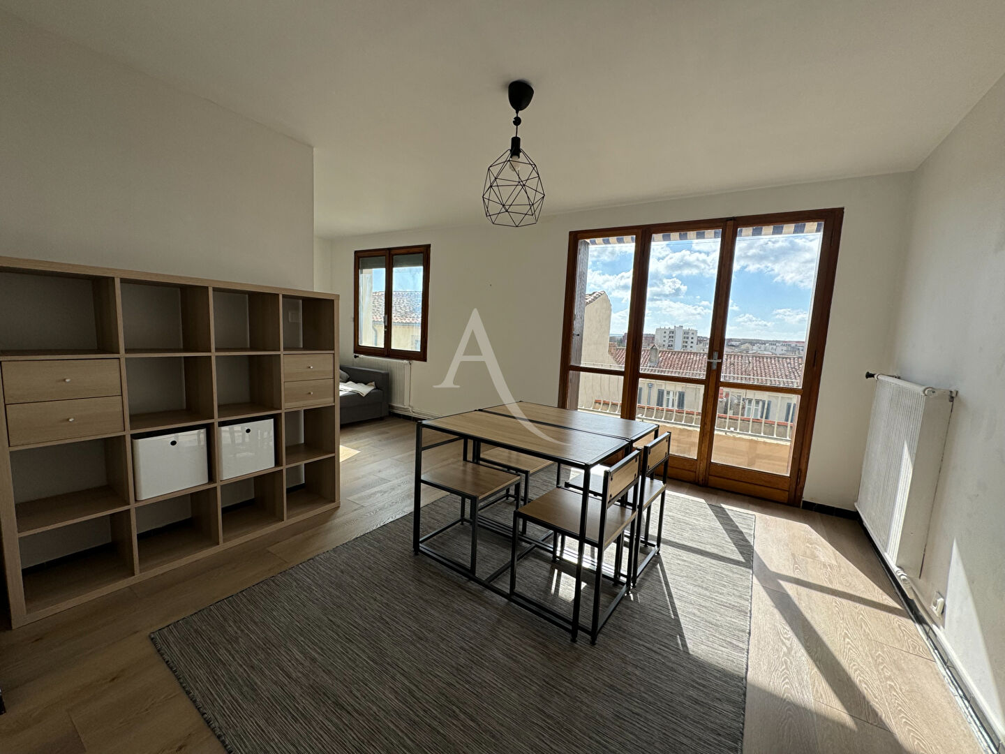 NIMES - CENTRE VILLE - QUARTIER ESPLANADE / CARNOT - Au 4ème et dernier étage avec ascenseur, appartement de type P3 aménagé en spacieux P2, d'une surface habitable de 52m², composé d'une entrée/dégagement, cuisine indépendante équipée, salle de bains, wc séparé, chambre, séjour et salon (2ème chambre possible), balcon, cellier et parking privatif couvert - Exposition Sud - Belle vue dégagée - DPE E - Charges annuelles 1424,74 euros - Copropriété de 42 Lots principaux d'habitation - Honoraires inclus charge Acquéreur 6.92 % TTC