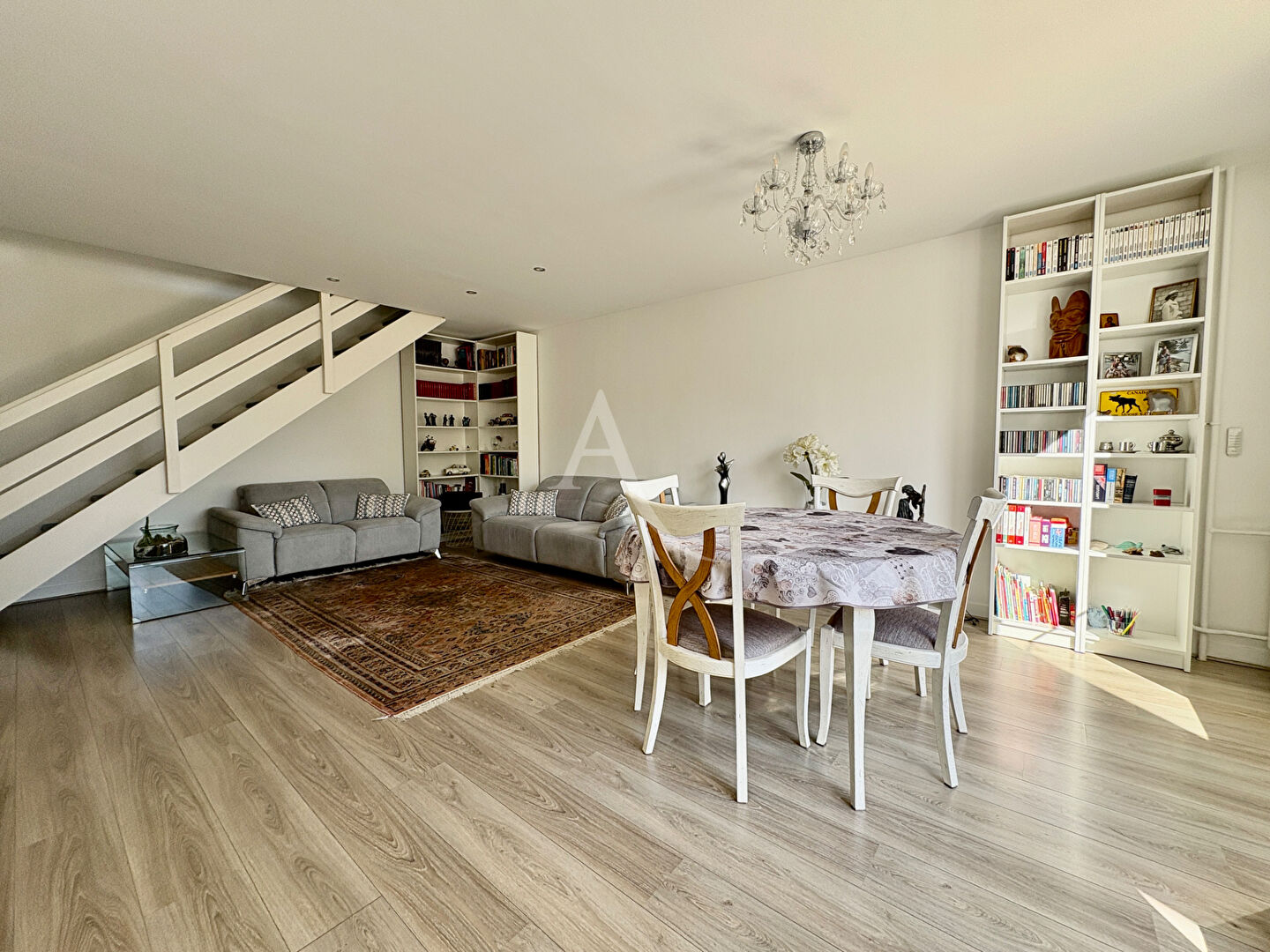 L'ADRESSE FONTENAY - vous propose ce MAGNIFIQUE DUPLEX 4 pièces niché dans un écrin de verdure au sein d'une belle copropriété bien entretenu avec gardien qui se situe dans le secteur du TERROIR à 5 minutes à pieds du RER A/E "VAL-DE-FONTENAY", du futur métro L15 ainsi que des commerces et des écoles. L'appartement se compose de la manière suivante : - au rez-de-chaussée : entrée avec espace de rangements, séjour de 30m2 exposé plein SUD donnant sur une grande terrasse sans vis à vis afin de profiter des beaux jours ensoleillés, une cuisine entièrement aménagée et équipée qui donne également sur la terrasse, un WC. - au second niveau : deux grandes chambres (poss 3), une salle de bains avec baignoire et douche, un grand dressing, un placard de rangements, un WC. Le tout en EXCELLENT état, l'appartement a été refait il y a 4 ans. L'appartement comprend également une place de PARKING en sous sol. A VISITER SANS TARDER ! (4.10 % honoraires TTC à la charge de l'acquéreur.) Copropriété de 112 lots - dont 56 lots habitation. Charges annuelles : 3600 euros.